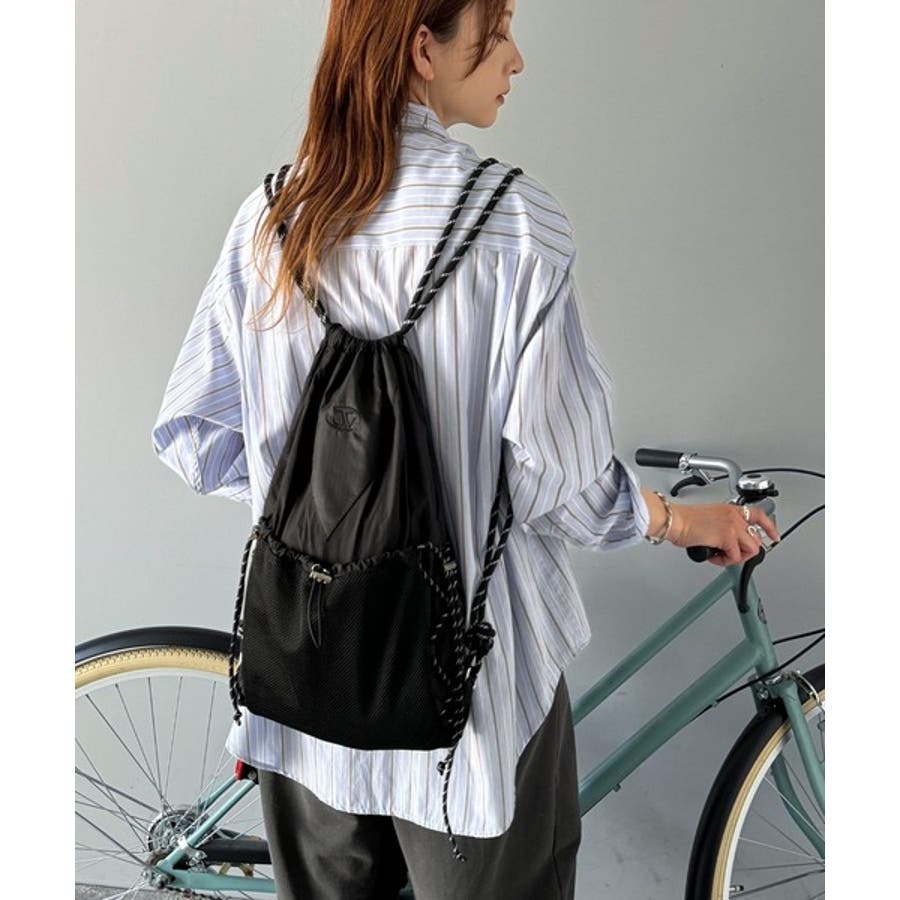 オリジナル刺繍とスポーティーなサイドコードが印象的なナップザック。