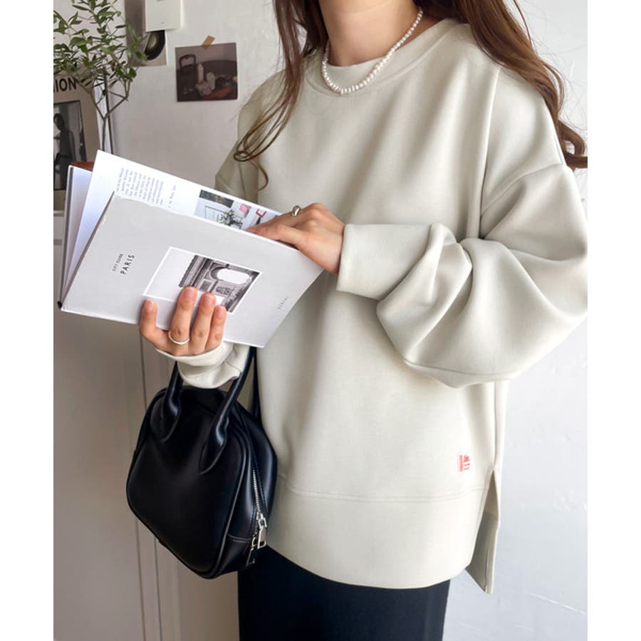 滑らかで弾力のある肌触りが特徴のダンボールニット素材のプルオーバー。