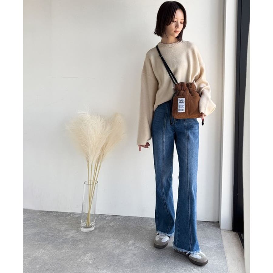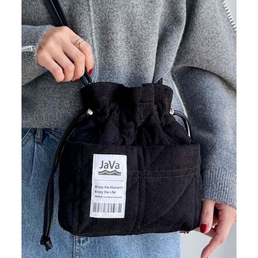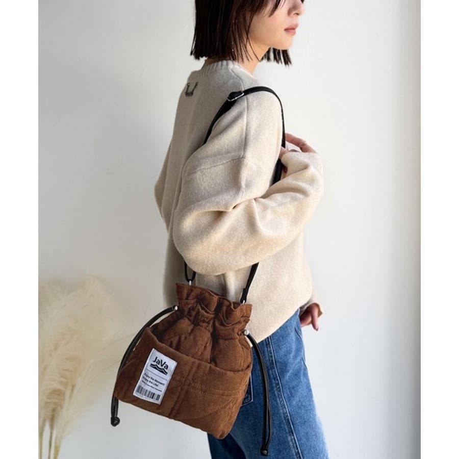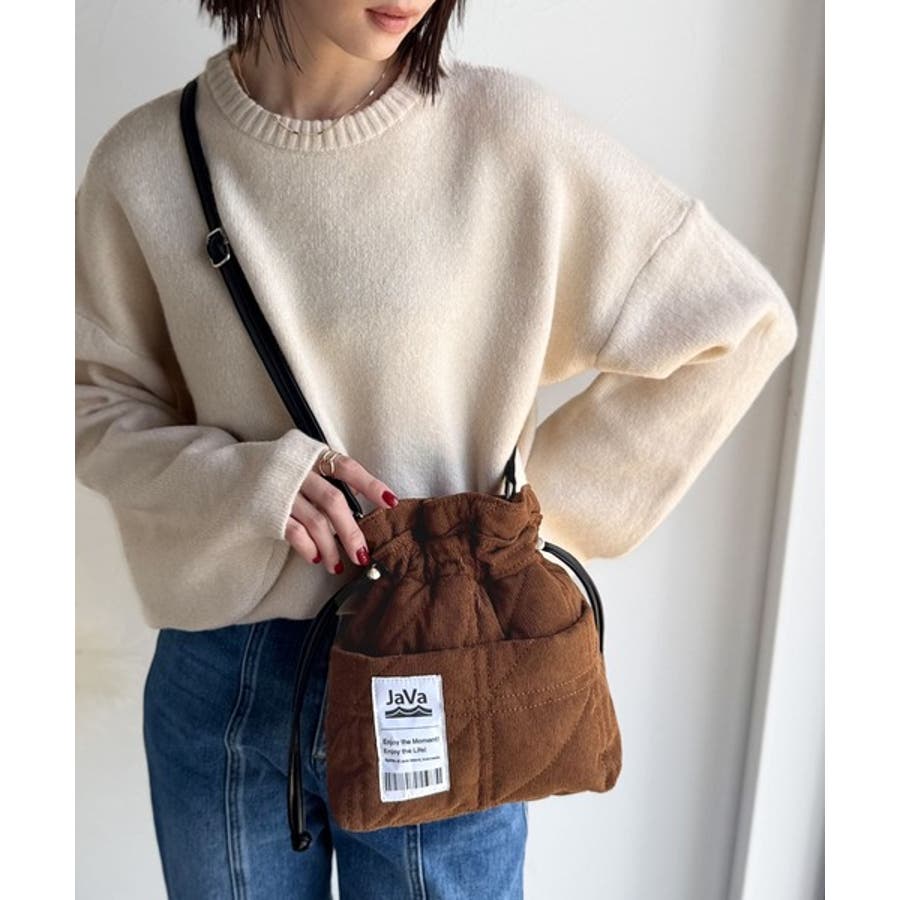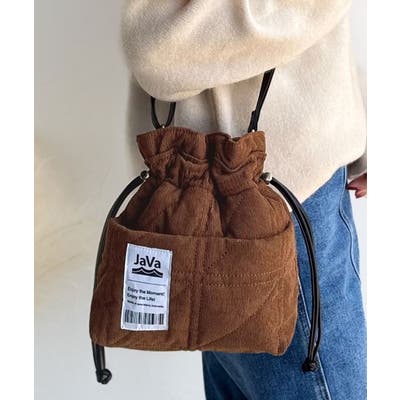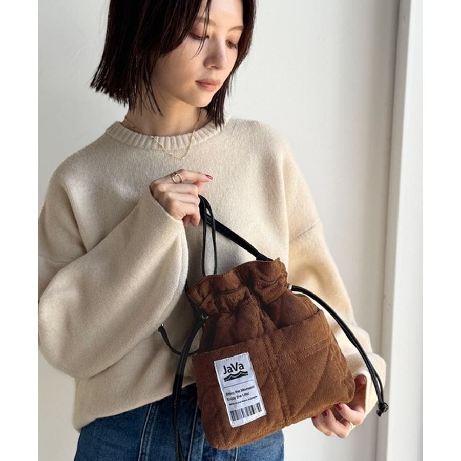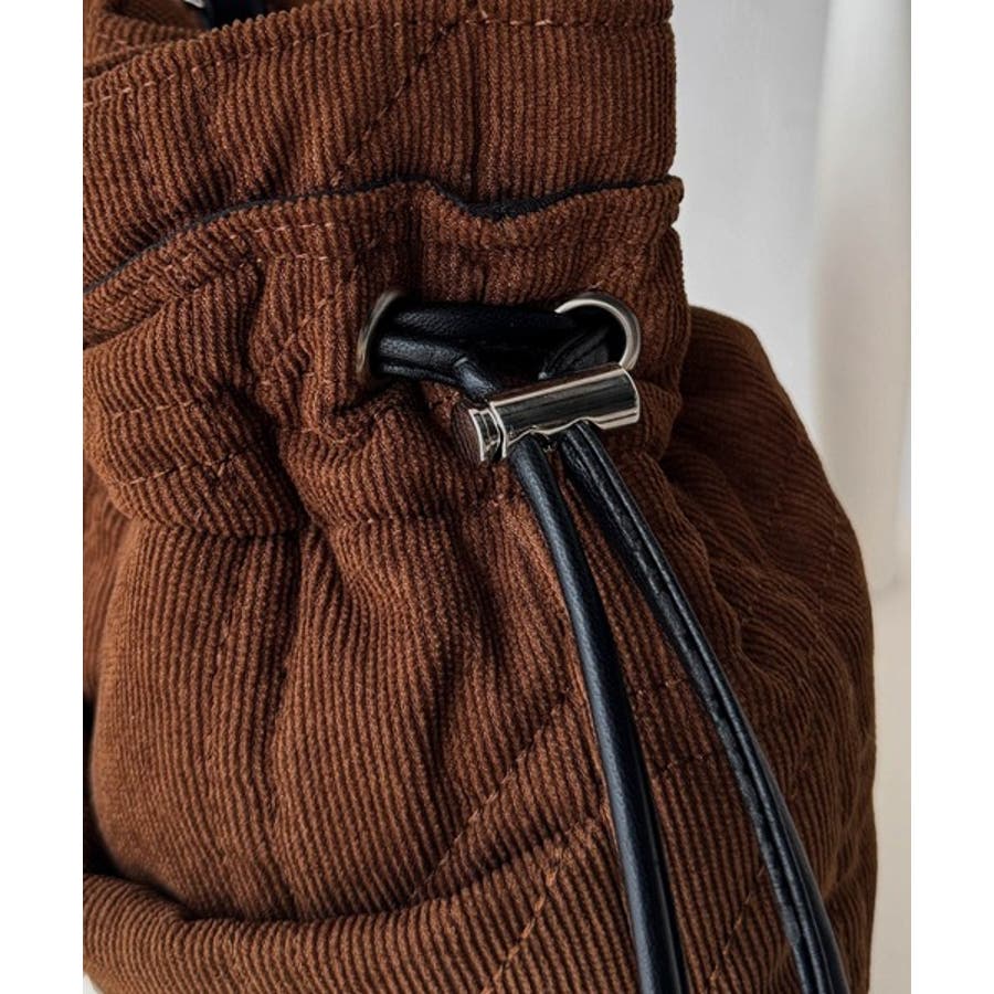 秋冬シーズンのスタイリングにピッタリなコーデュロイ巾着バッグ。