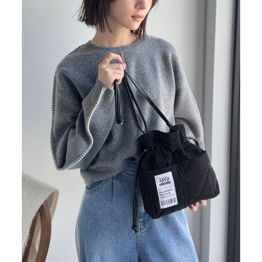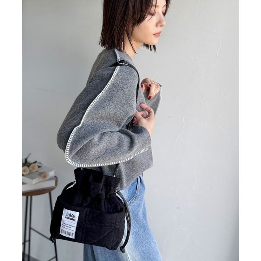 素材感を活かした可愛らしい巾着バッグは、
