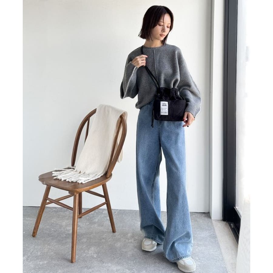 コーディネートに巾着バッグを取り入れてスタイリングのアクセントに☆