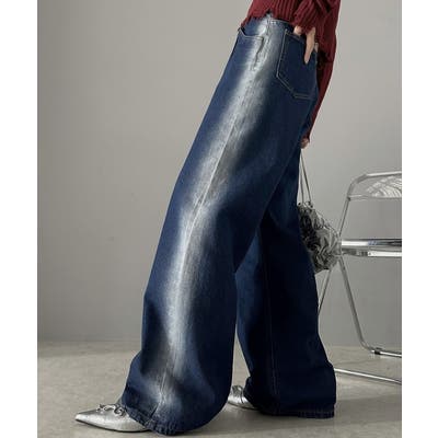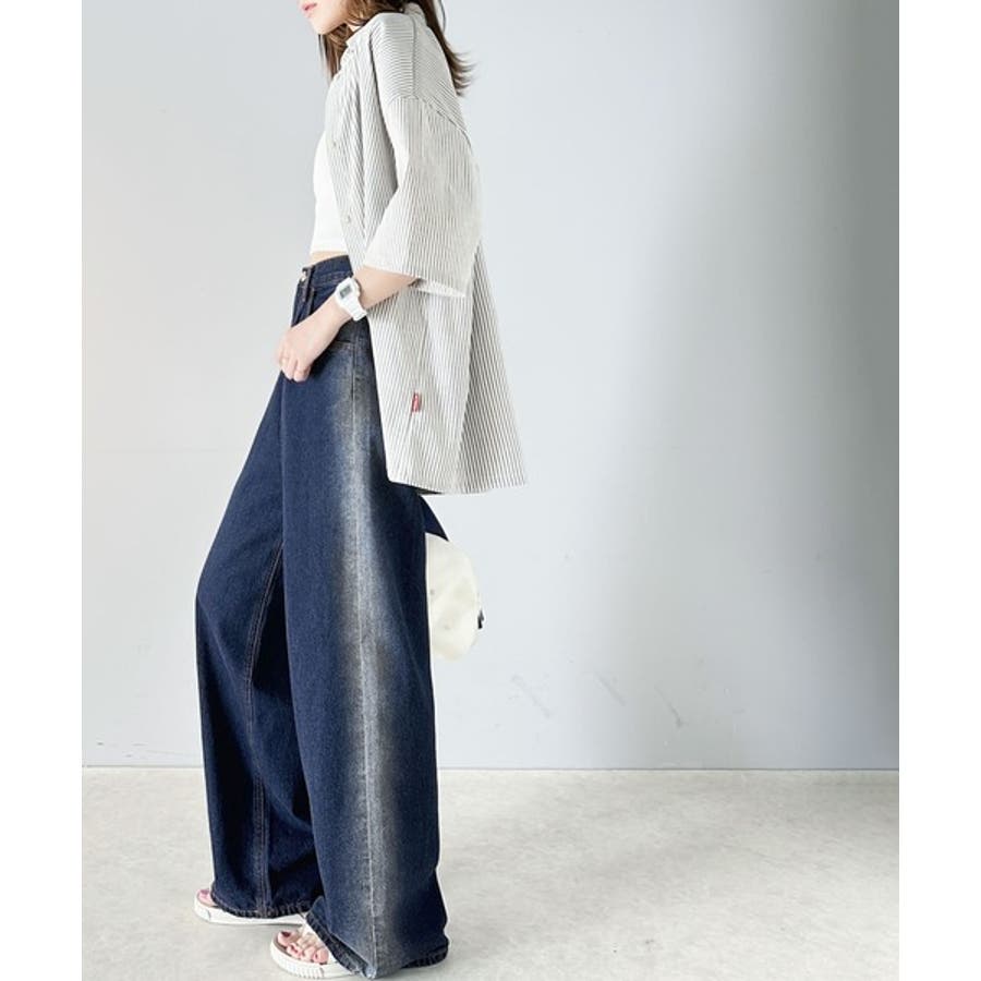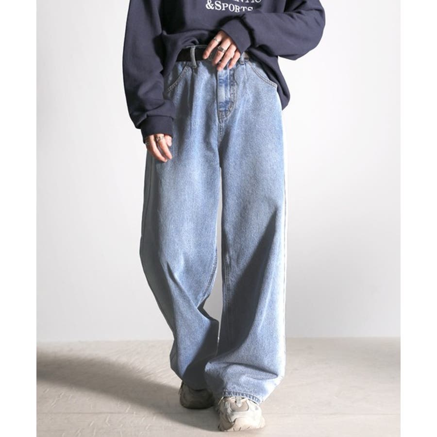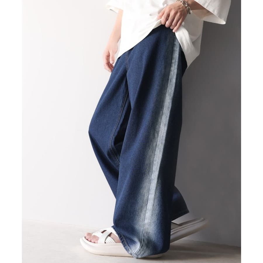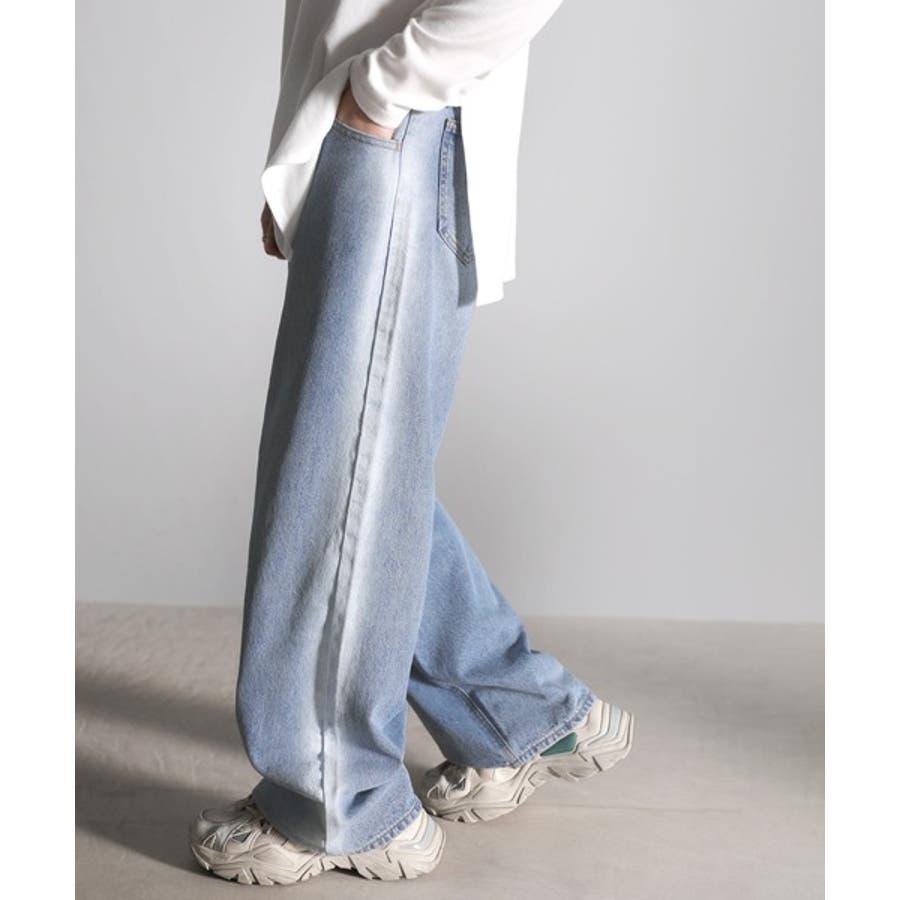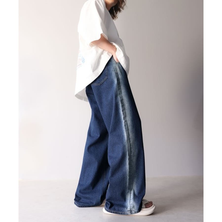 サイドのブリーチ加工されたラインが抜け感漂う、ルーズシルエットが魅力のブリーチデニム。