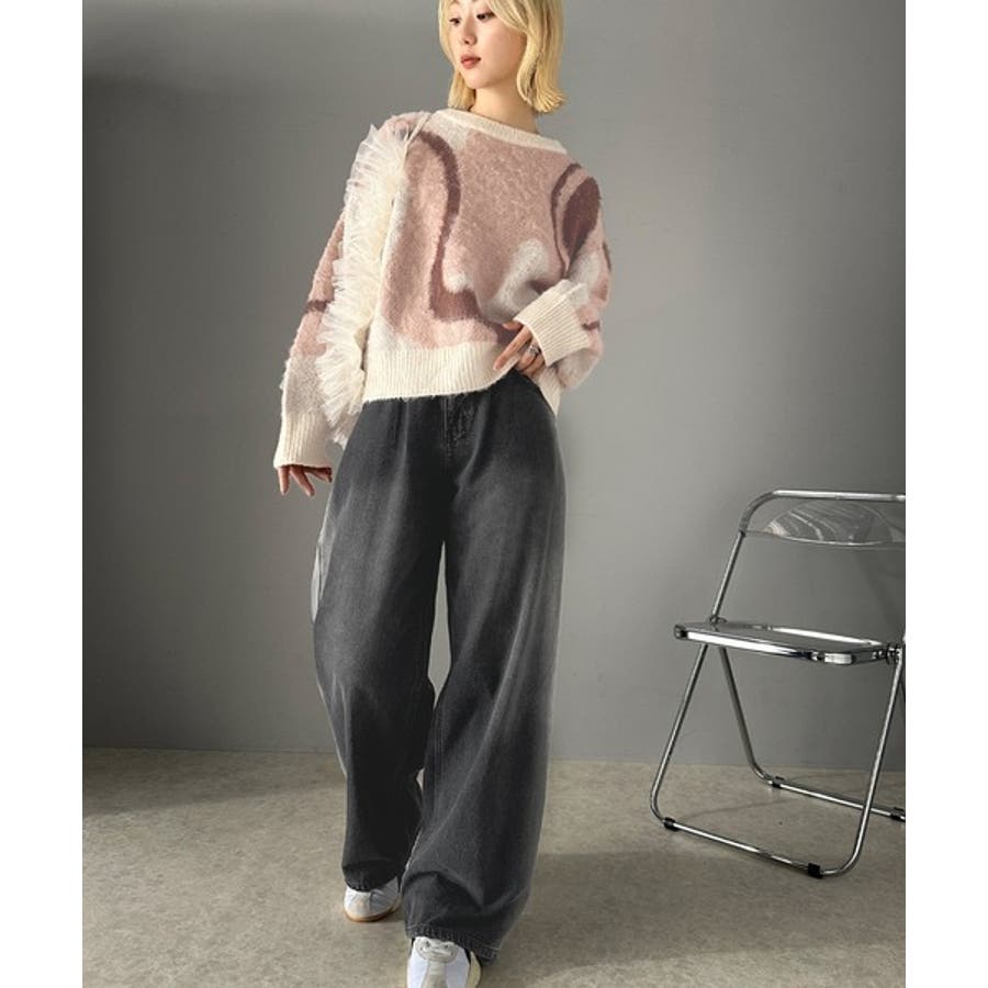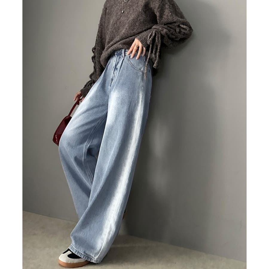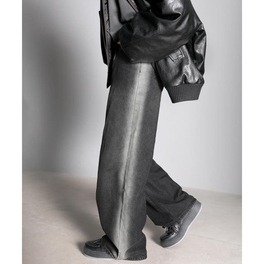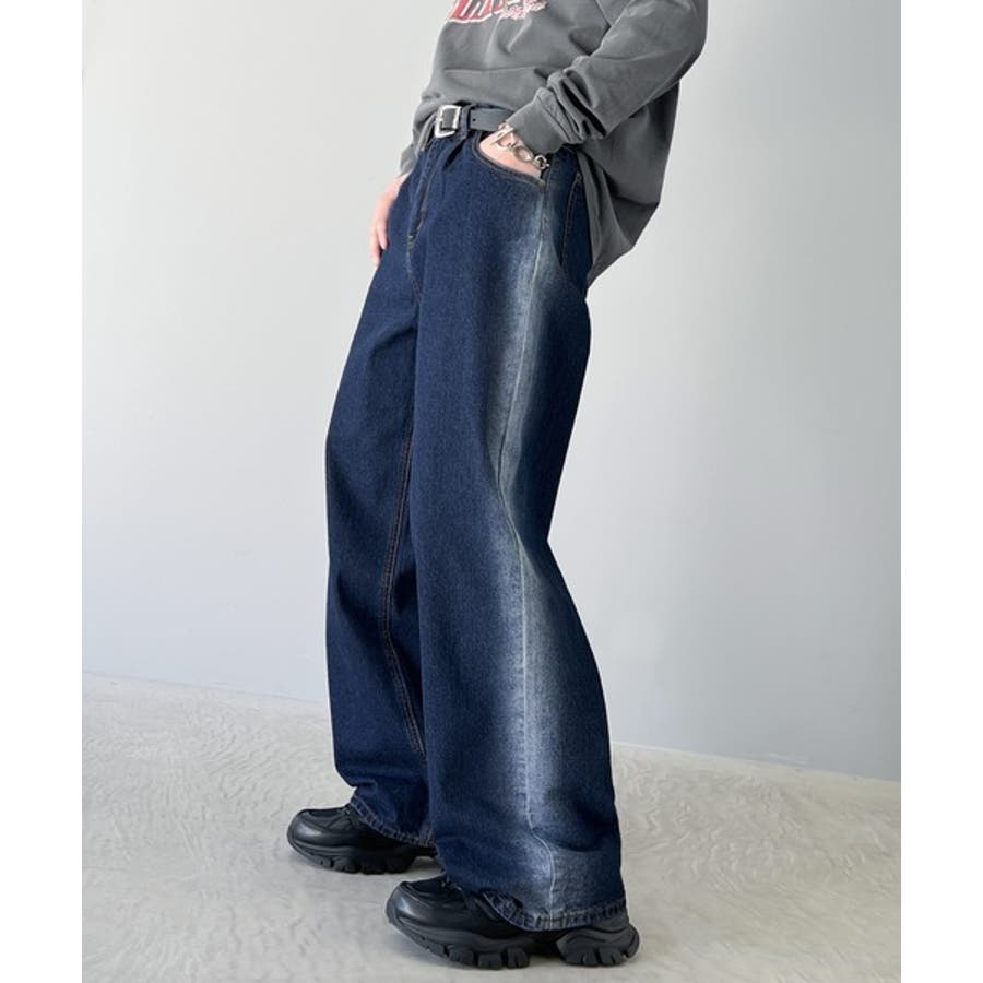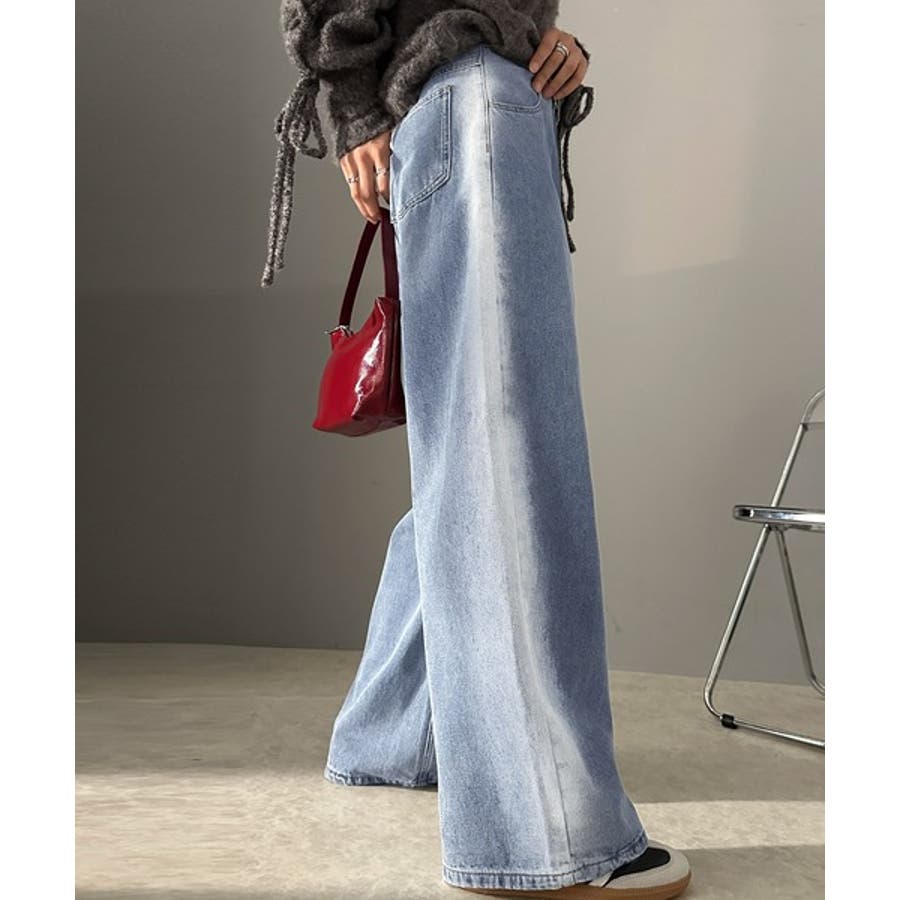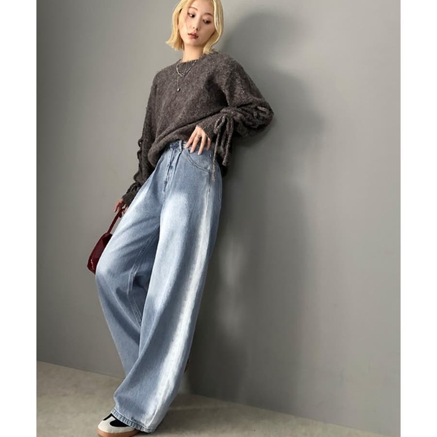 サイドのブリーチ加工されたラインが抜け感漂う、ルーズシルエットが魅力のブリーチデニム。
