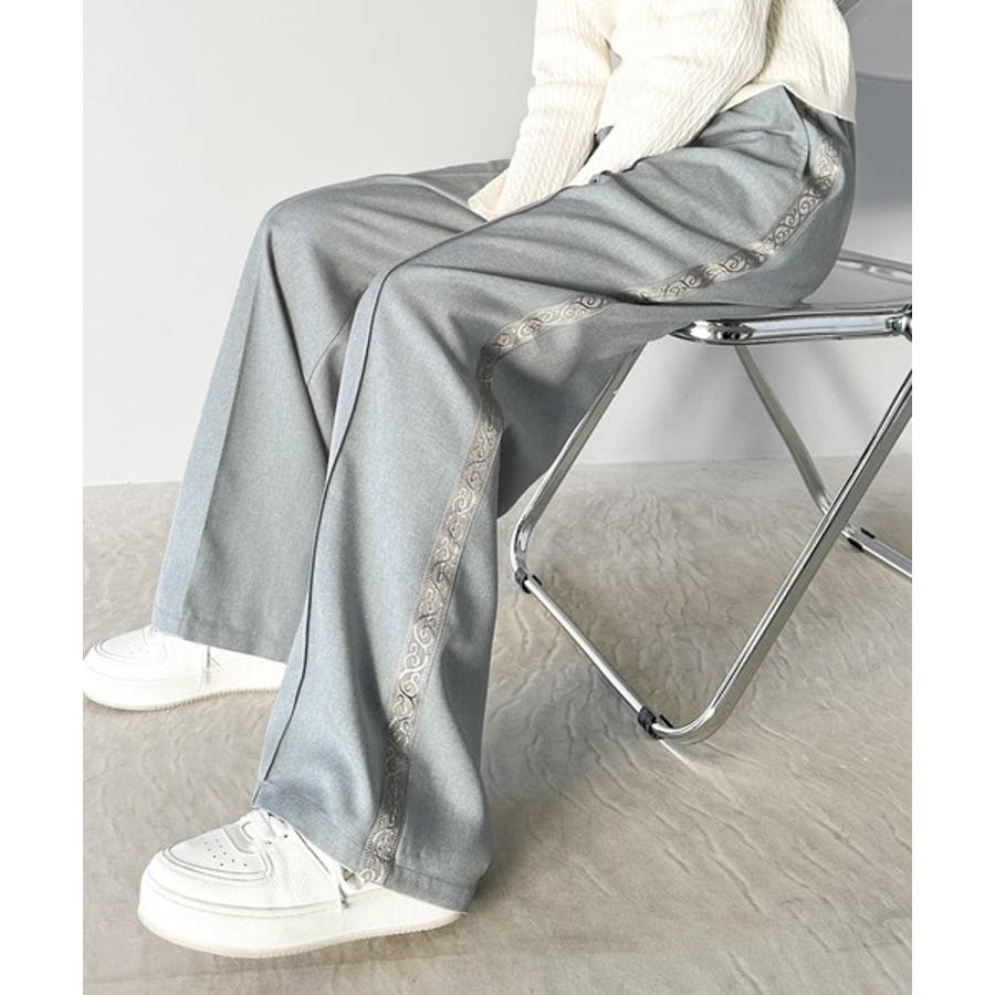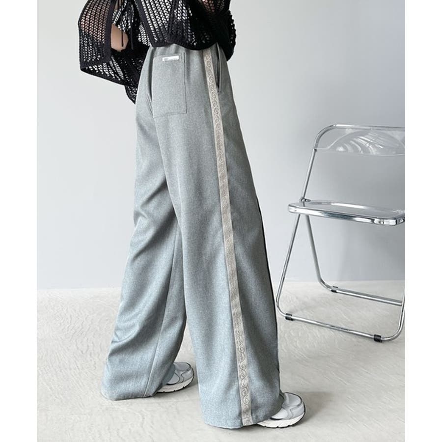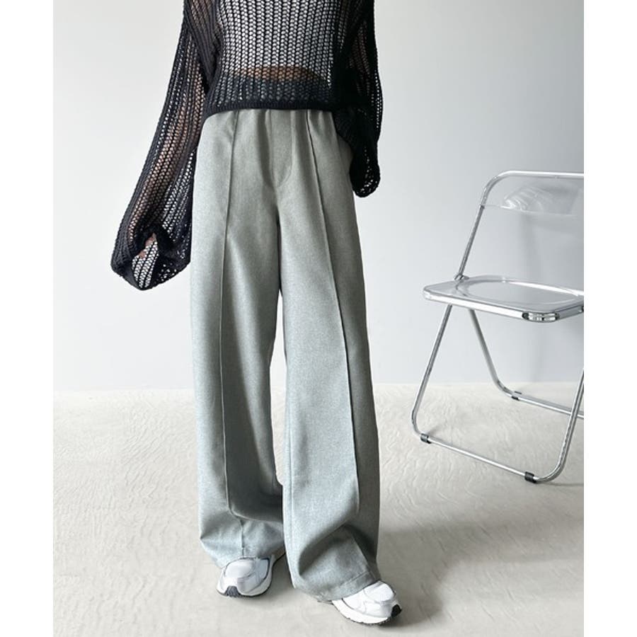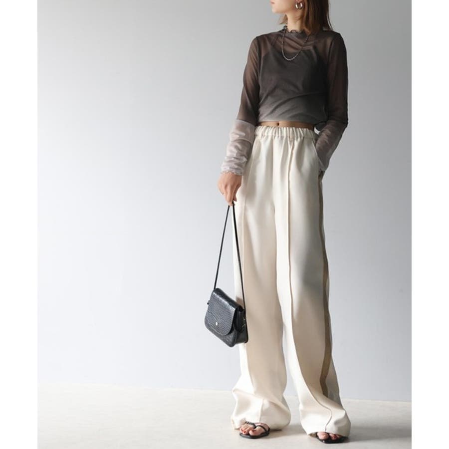 クラシカルな雰囲気も醸し出してくれる、モード感漂うワイドトラックスラックス。