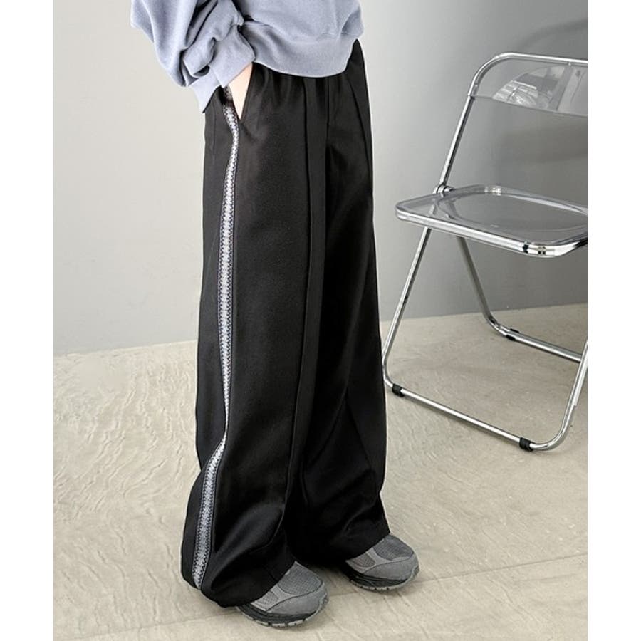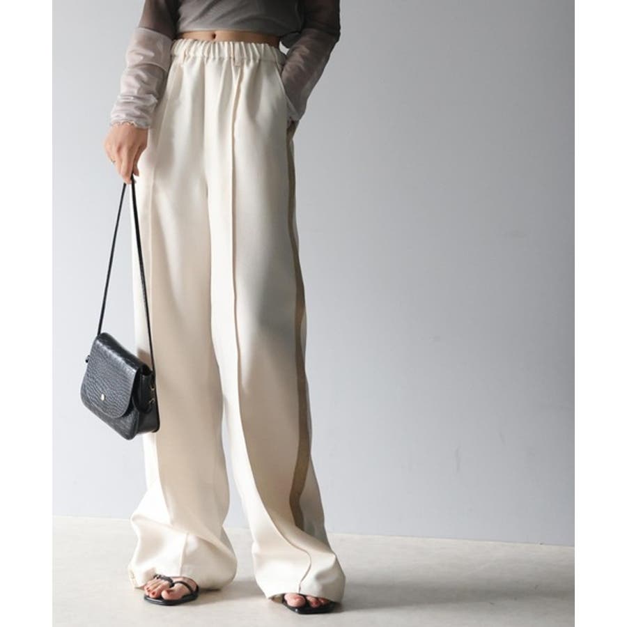 トレンドのトラックパンツを側章デザインと素材感でキレイ目にも穿ける商品にアップデート。