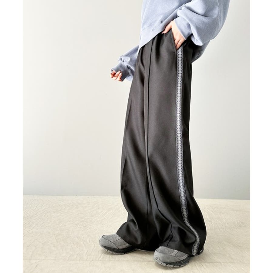 《Javaジャバコラボ》サイドラインでキレイ魅せ。ジャガードブレードワイドトラッ…