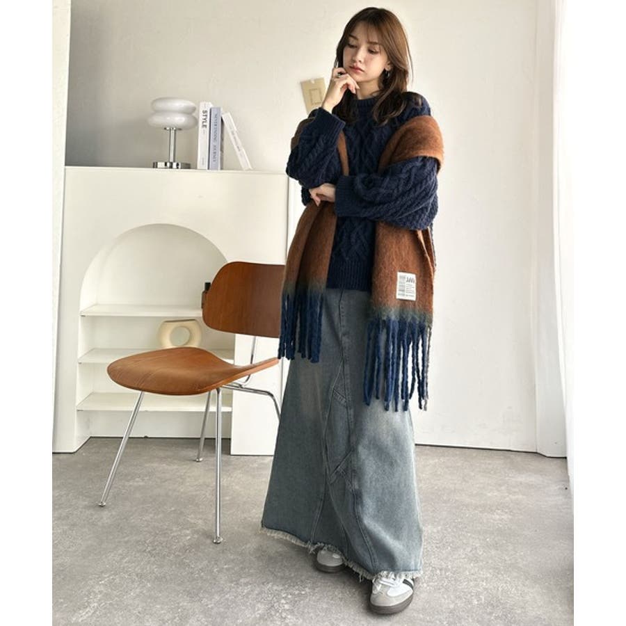 ボリューム感のある大判ストールで、シンプルなコーデに華やかさを加えます。