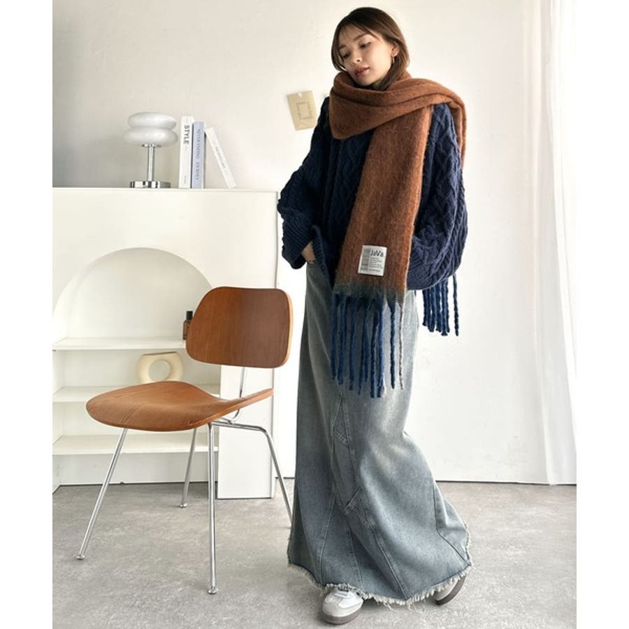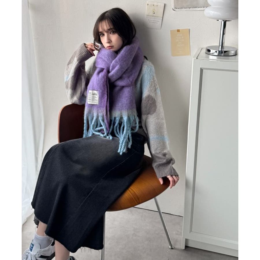 《JaVaジャバコラボ》ふんわりあったか。配色ボリュームマフラー