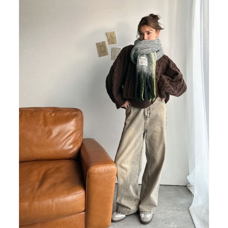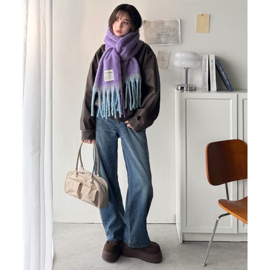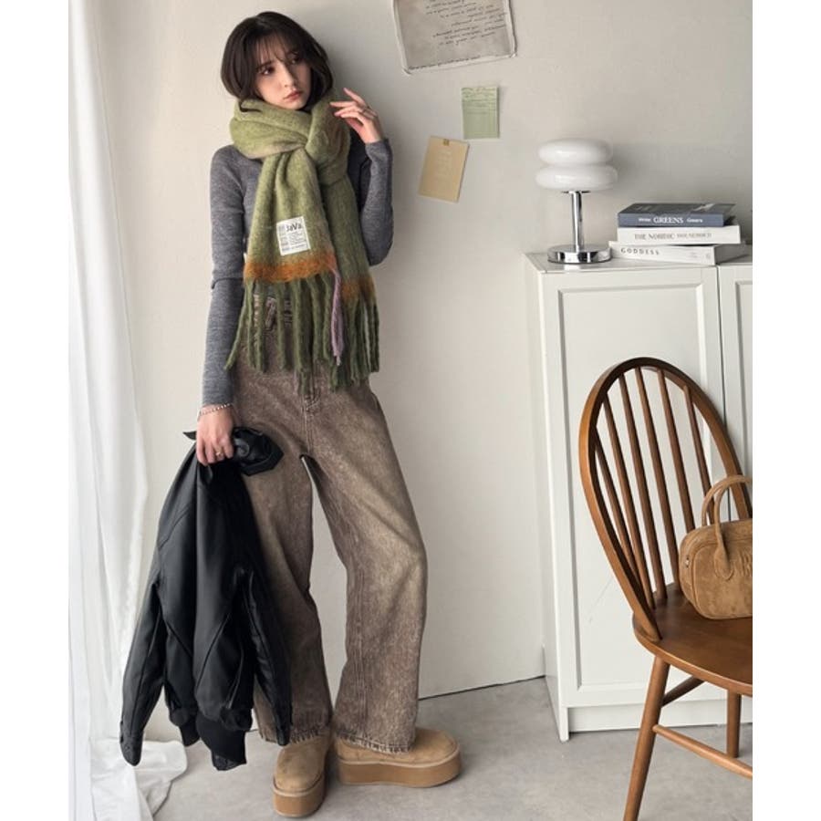 マフラーの巻き方次第で配色が映えるのも可愛いポイント。