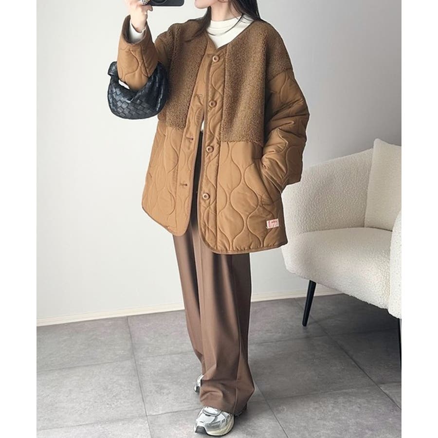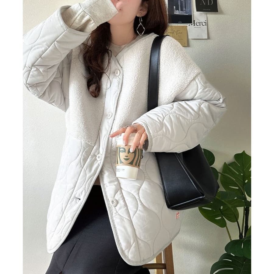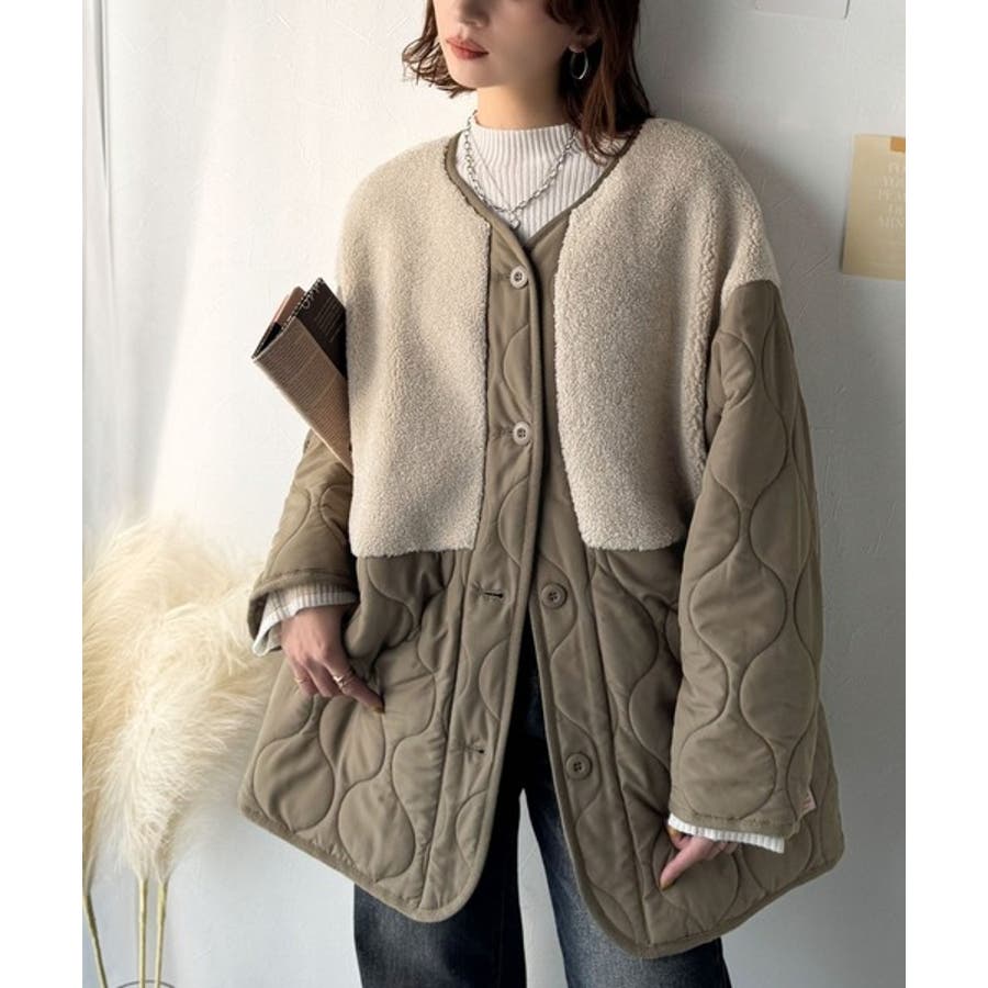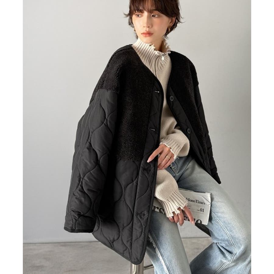トレンド感たっぷりのボア切替ひょうたんキルティングコート♪