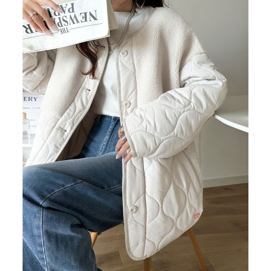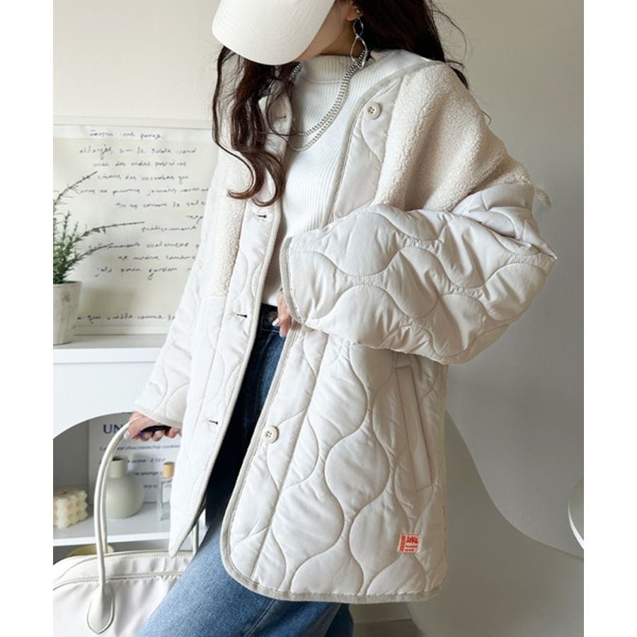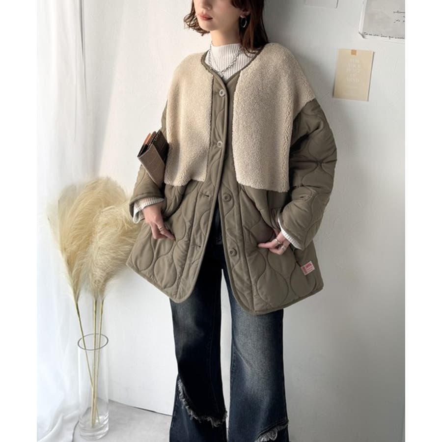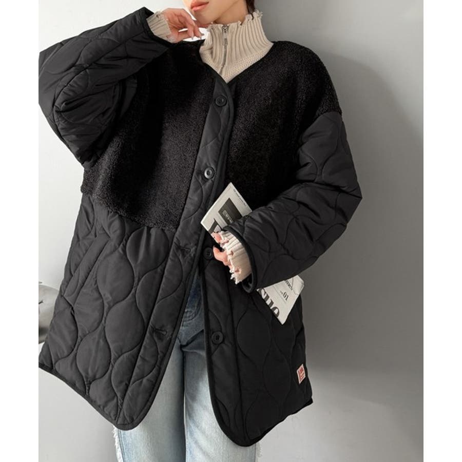 トレンド感たっぷりのボア切替ひょうたんキルティングコート♪