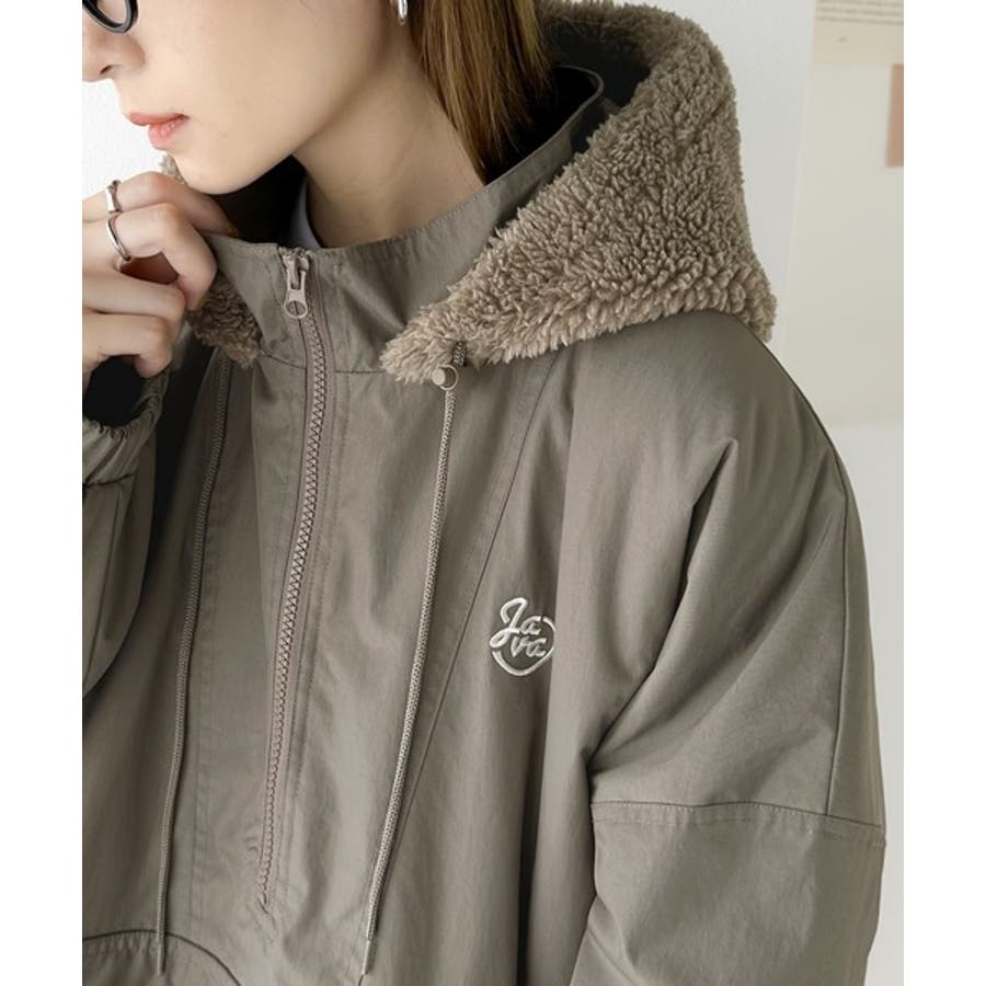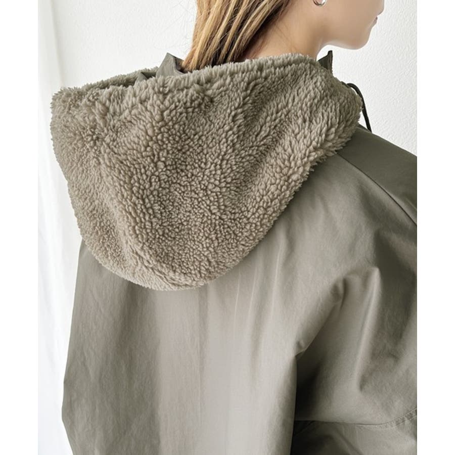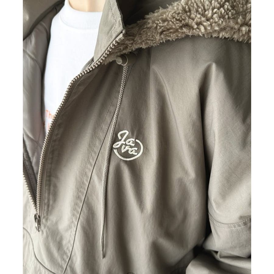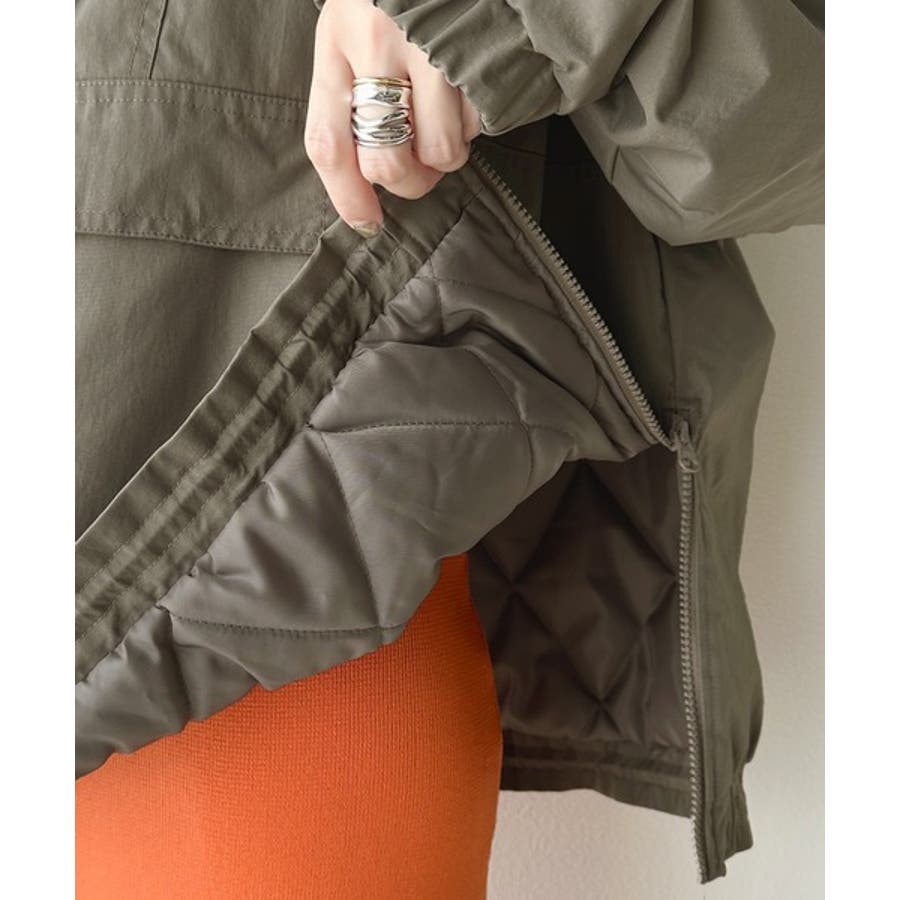 《Javaジャバコラボ》フード付 ボア切替え中綿裏キルティングサイドスリット ビ…