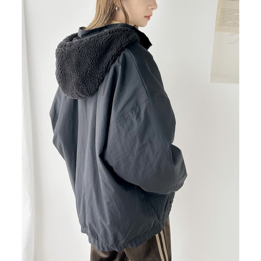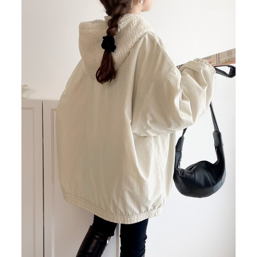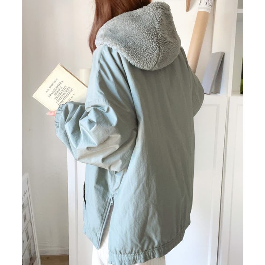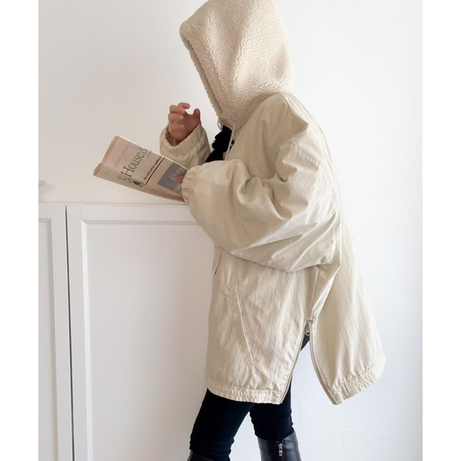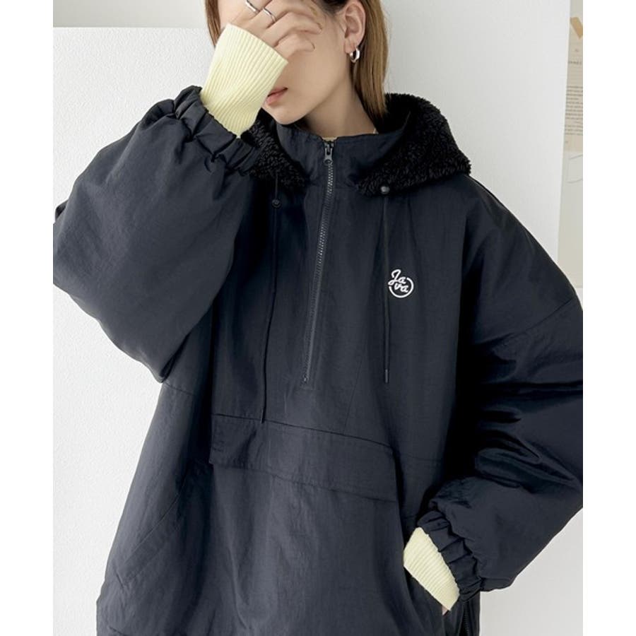 《Javaジャバコラボ》フード付 ボア切替え中綿裏キルティングサイドスリット ビ…