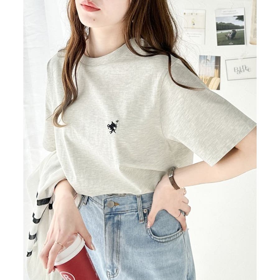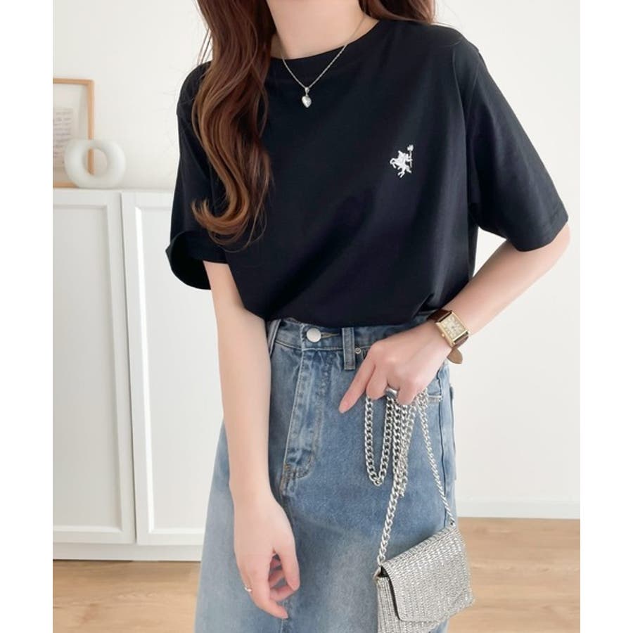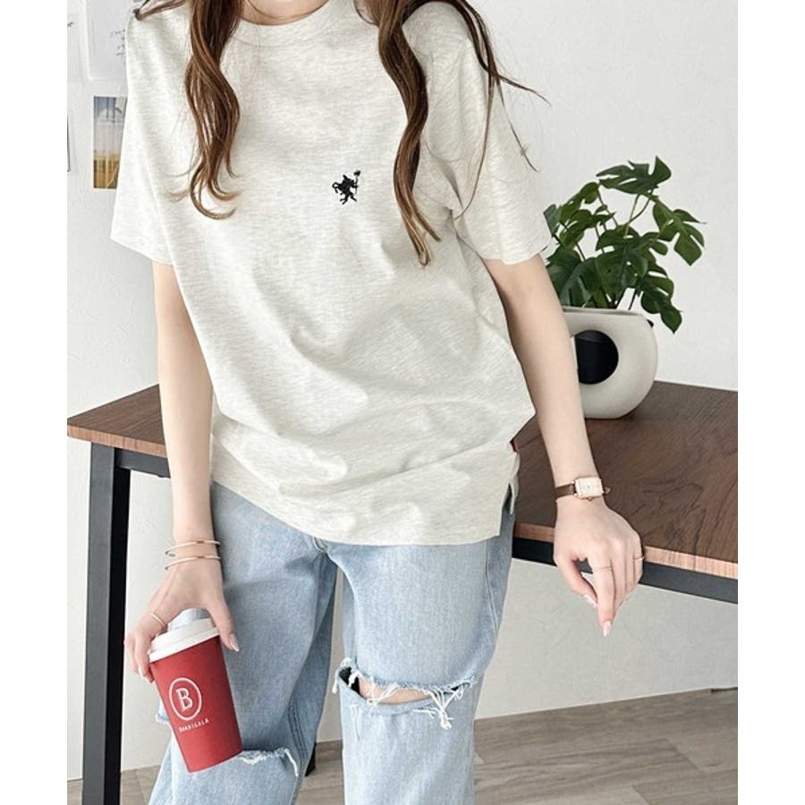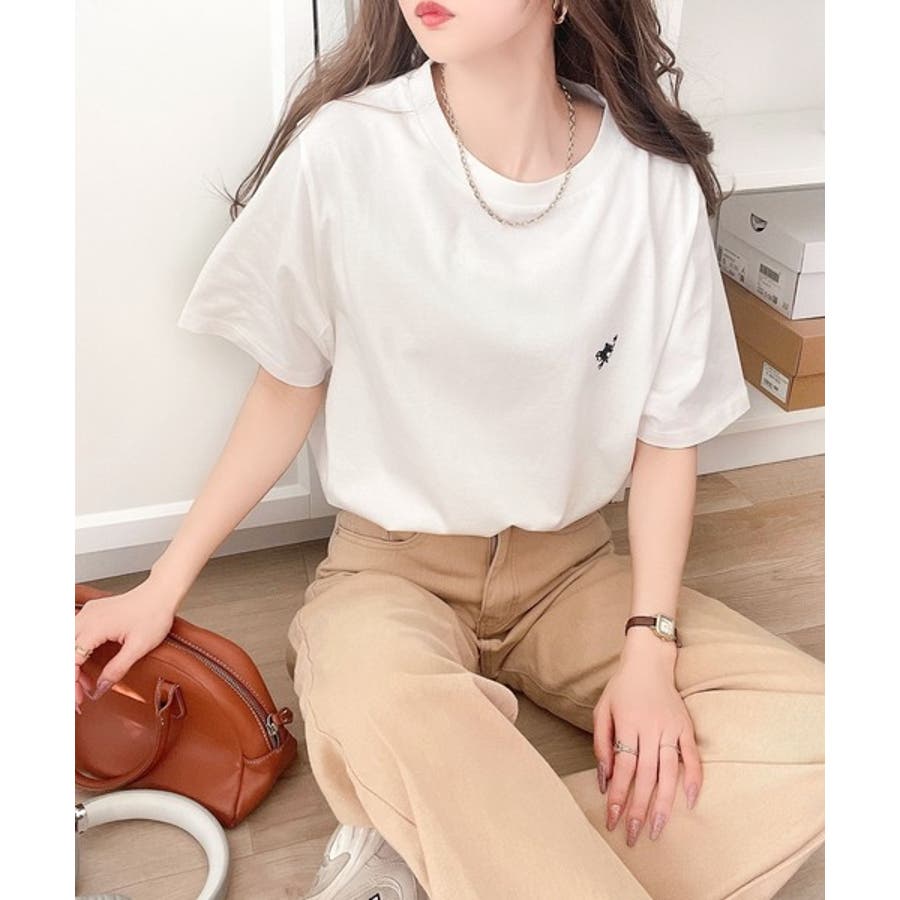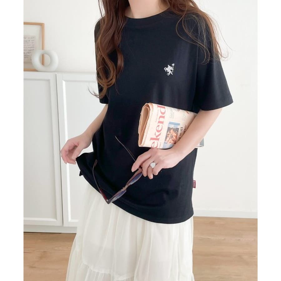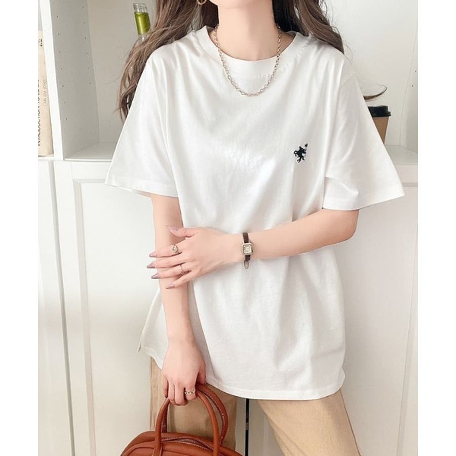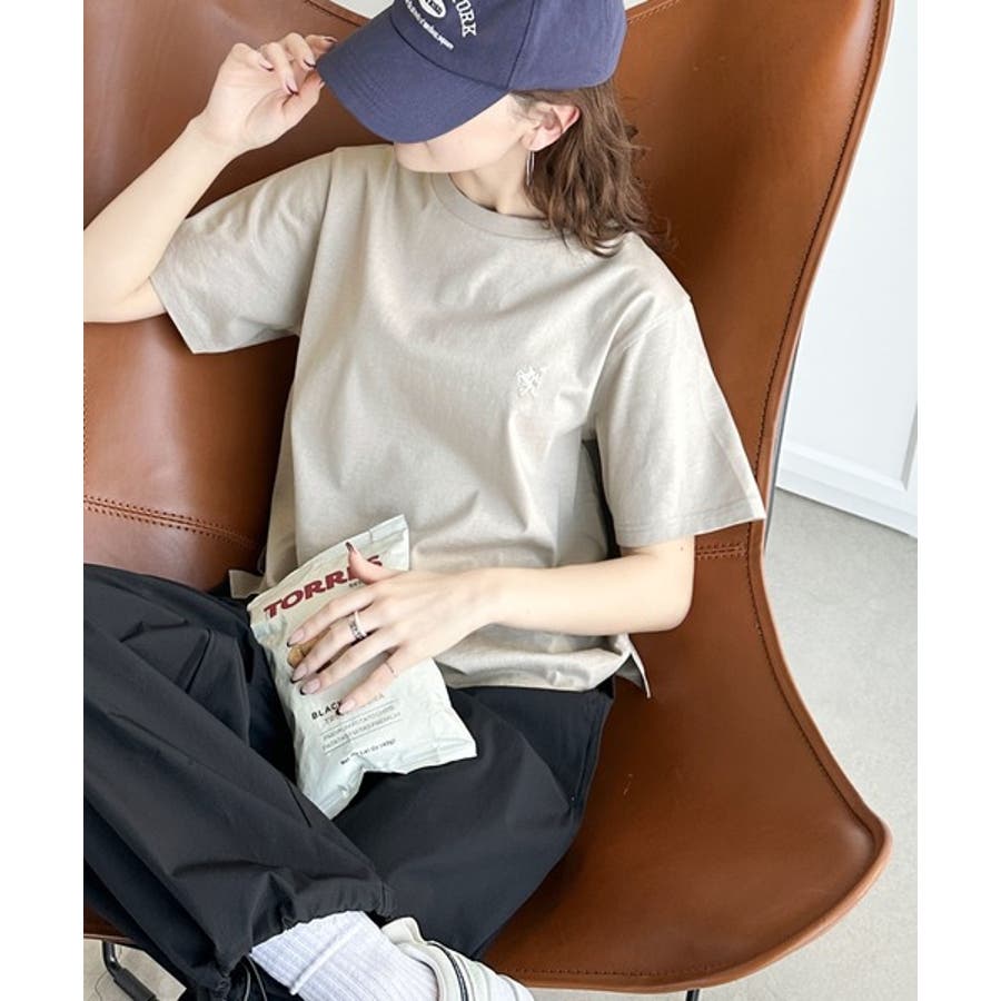 配色刺繍がポイントのBIG半袖Tシャツ。