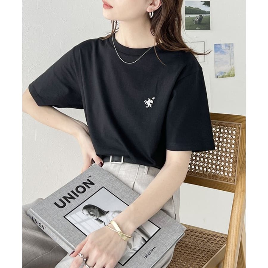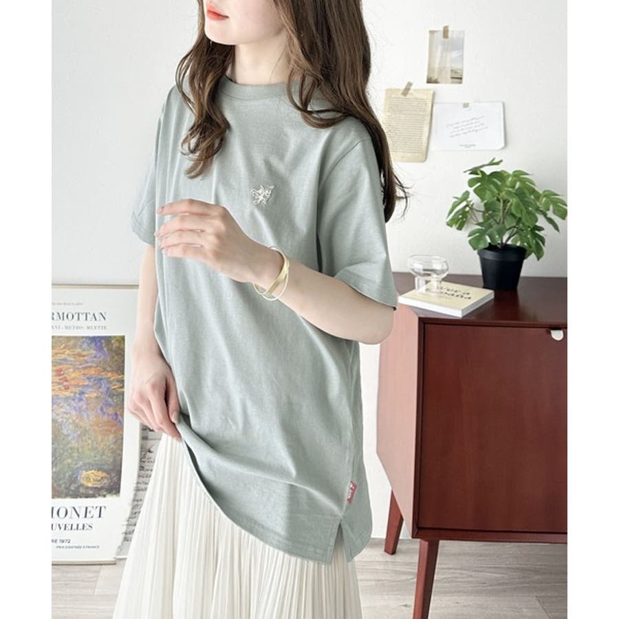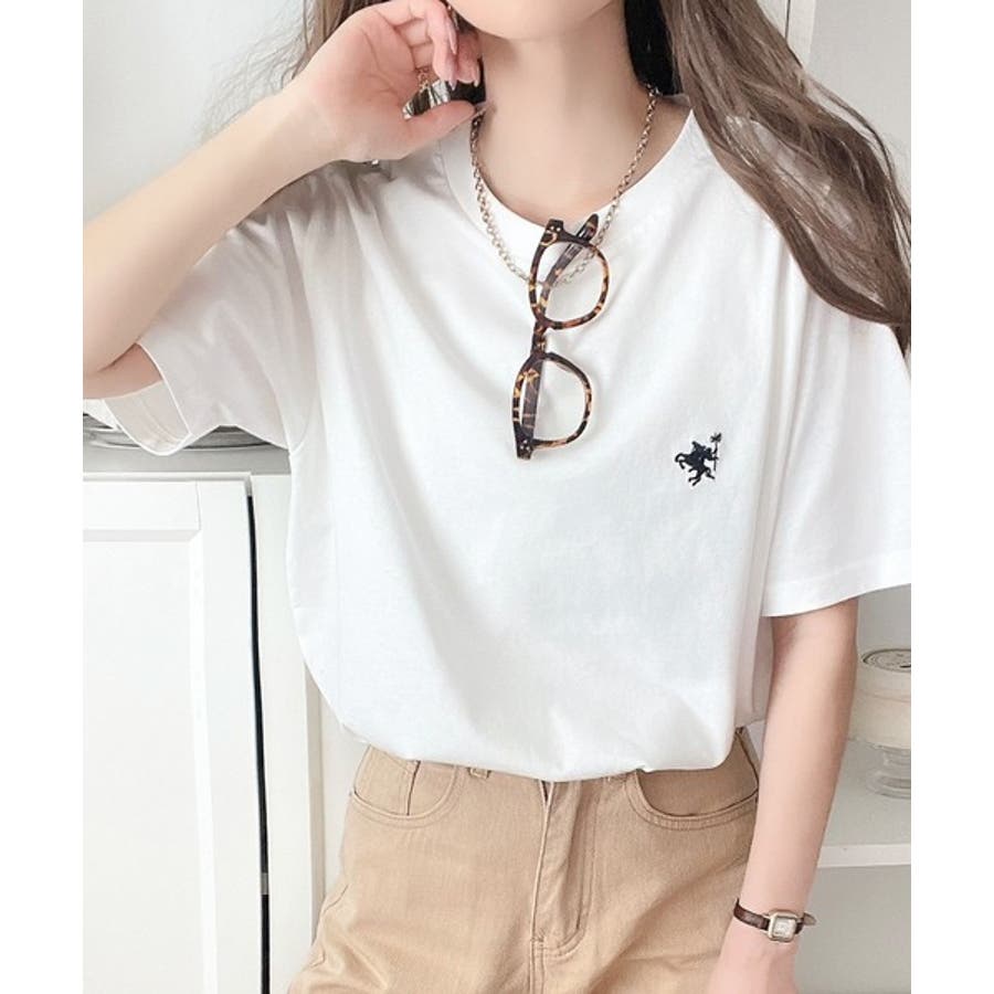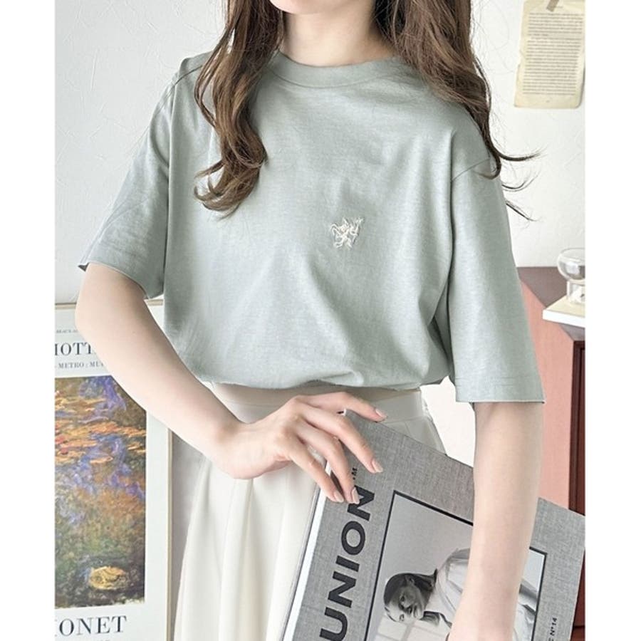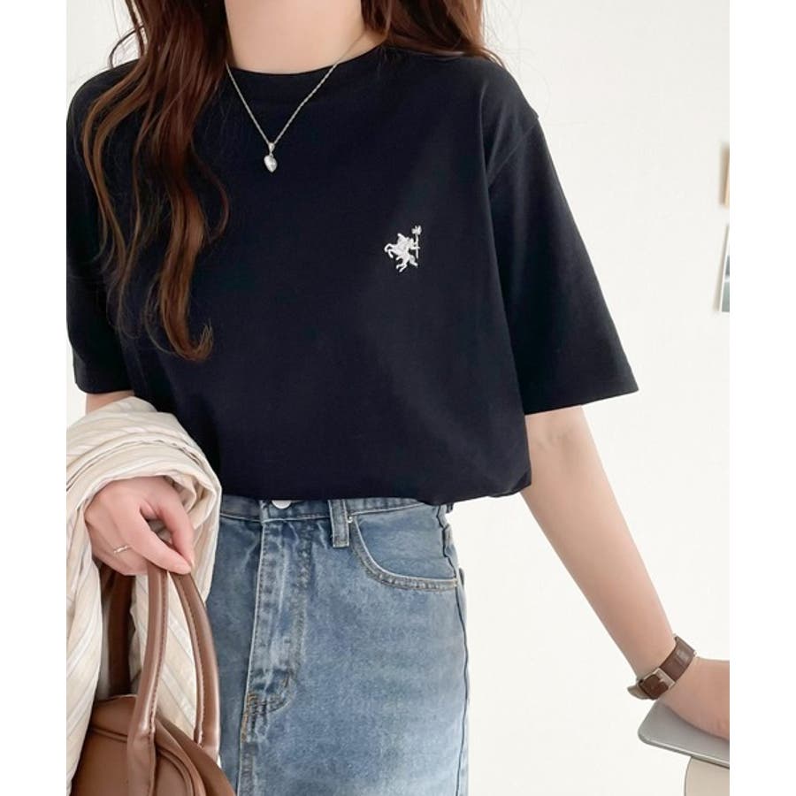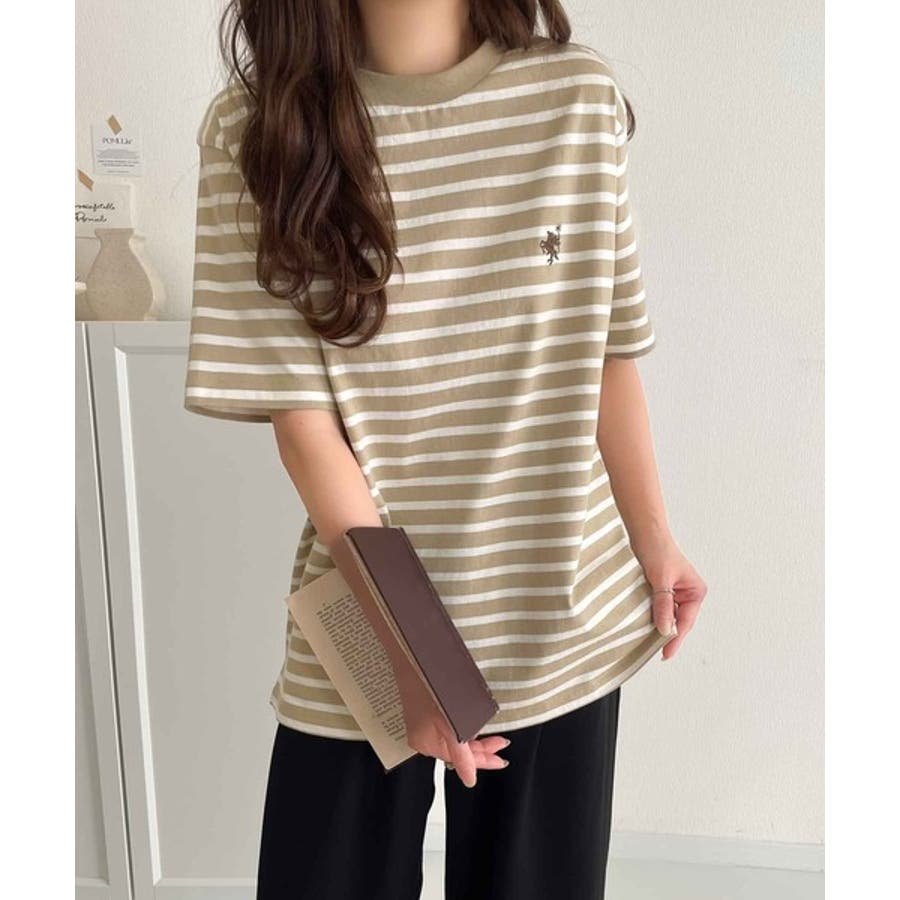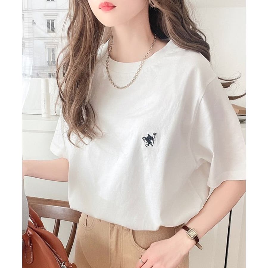 配色刺繍がポイントのBIG半袖Tシャツ。