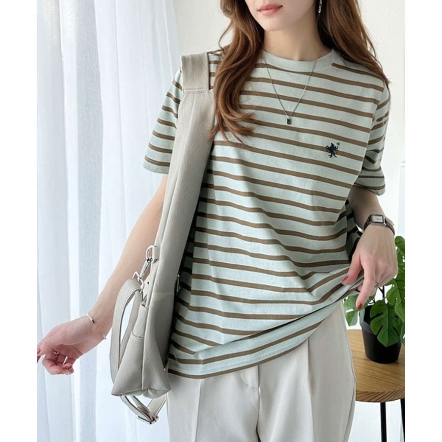 生地:【ホワイトボーダー/モカ/グリーン/ホワイト/ブラック】 本体:綿100% リブ:綿98%、ポリウレタン2% 刺繍糸:ポリエステル100%/【オートミール】本体:綿98%、レーヨン2% リブ:綿96%、ポリウレタン2%、レーヨン2% 刺繍糸:ポリエステル100%