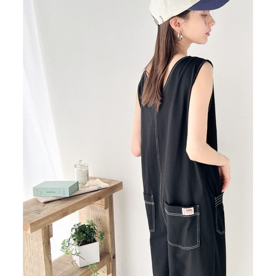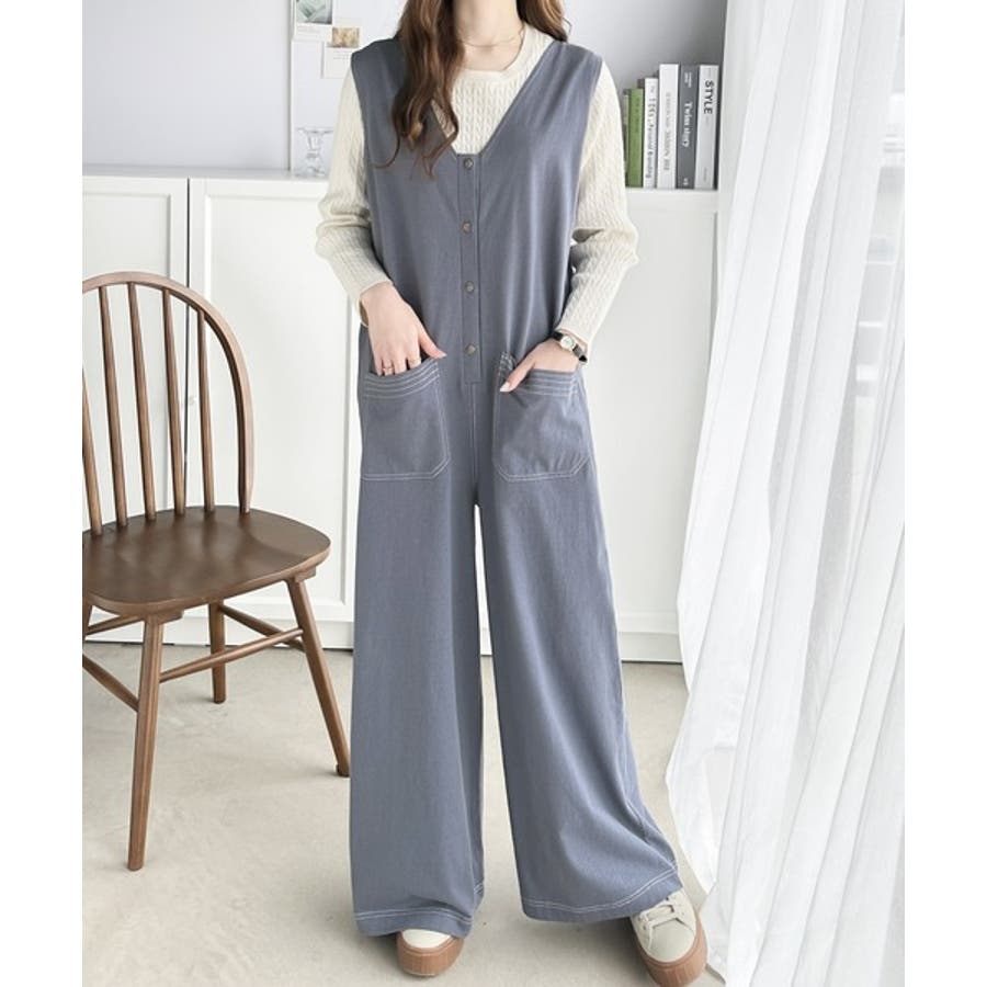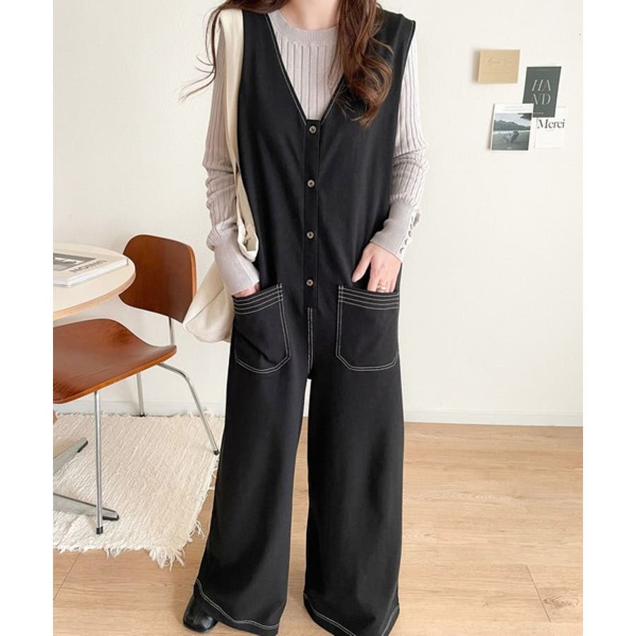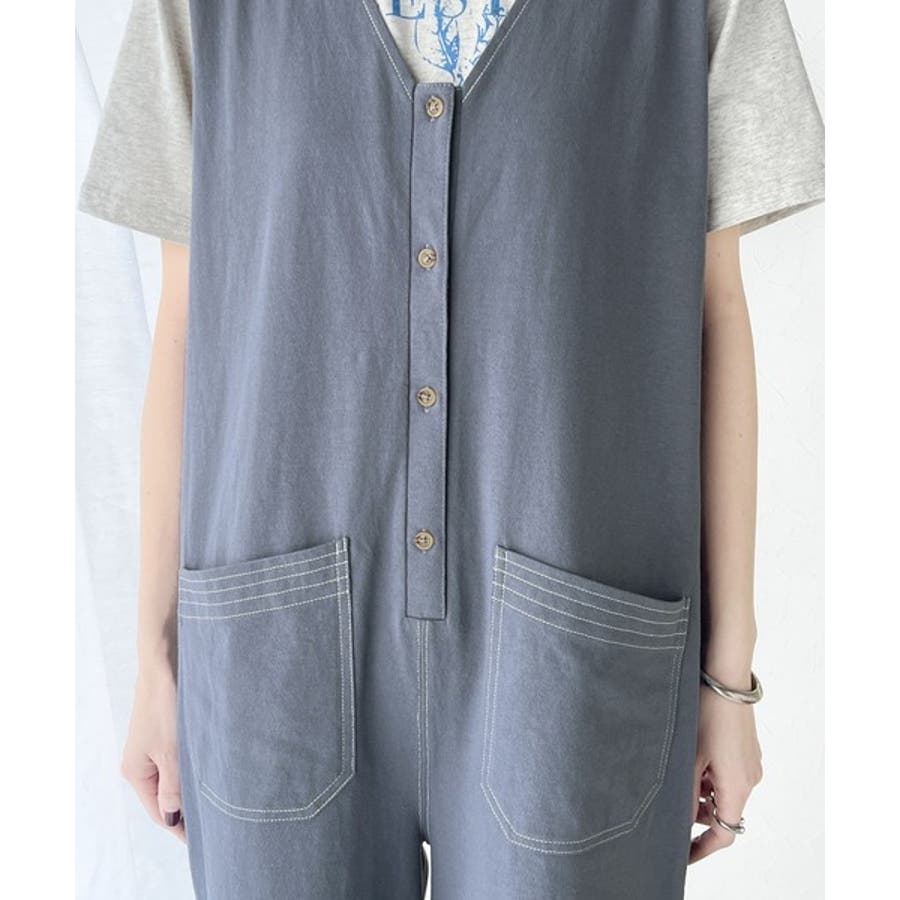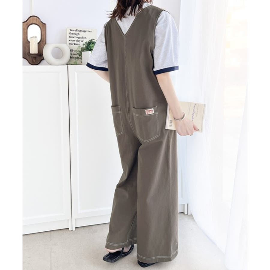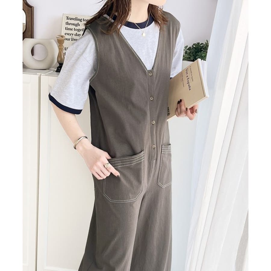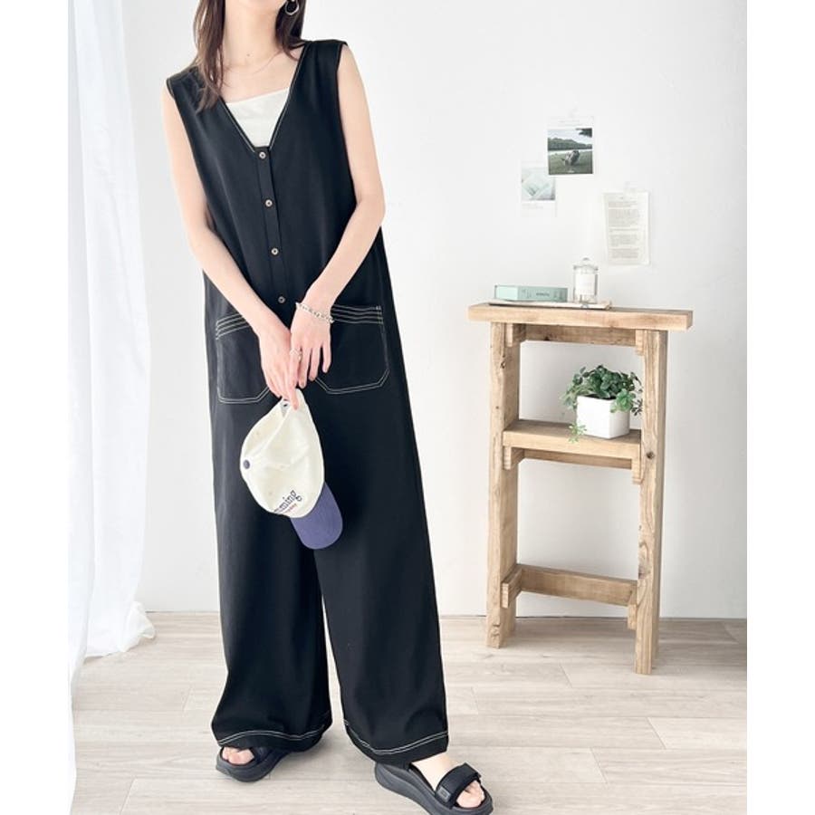 一枚で上級カジュアルstyle。綿100%配色ステッチオールインワン