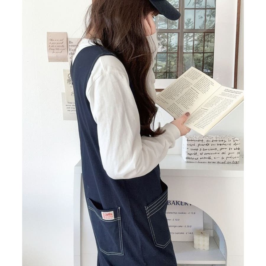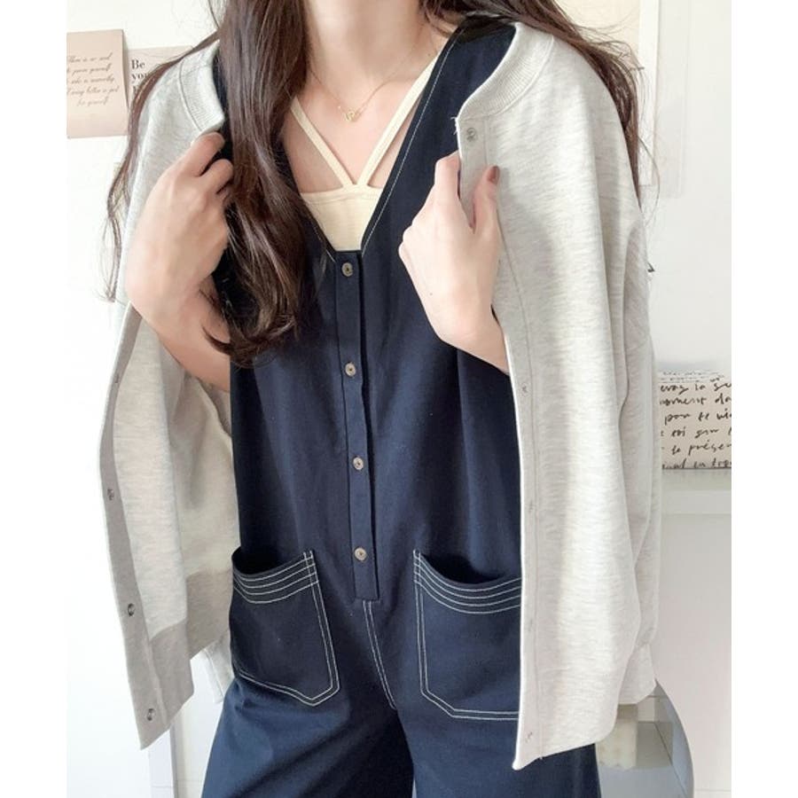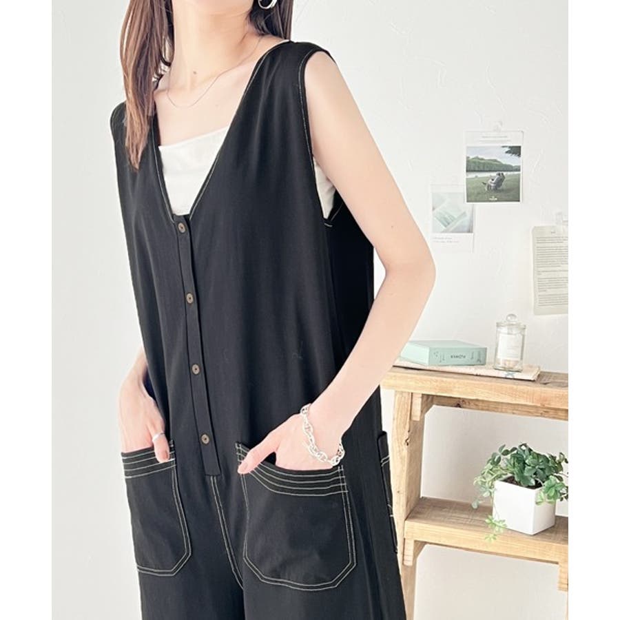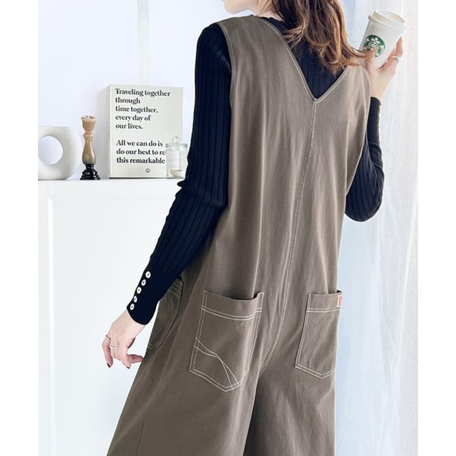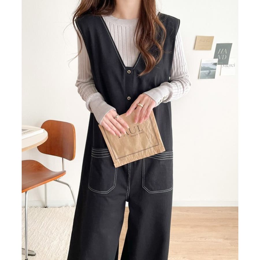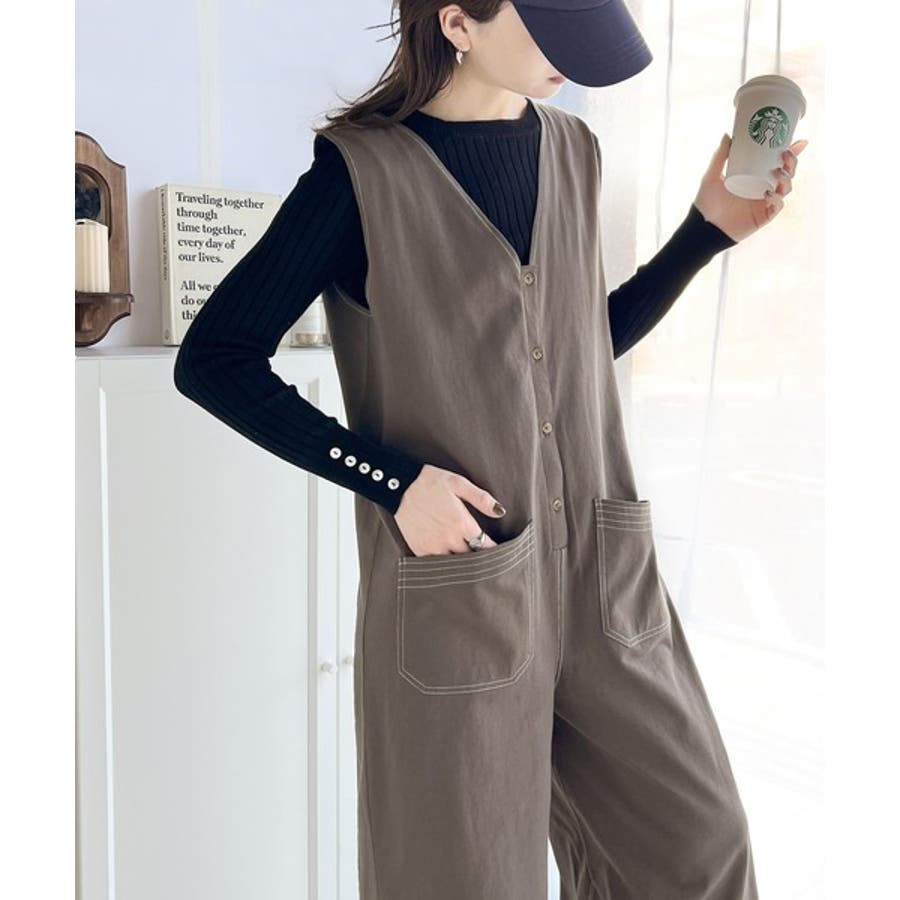 一枚で上級カジュアルstyle。綿100%配色ステッチオールインワン
