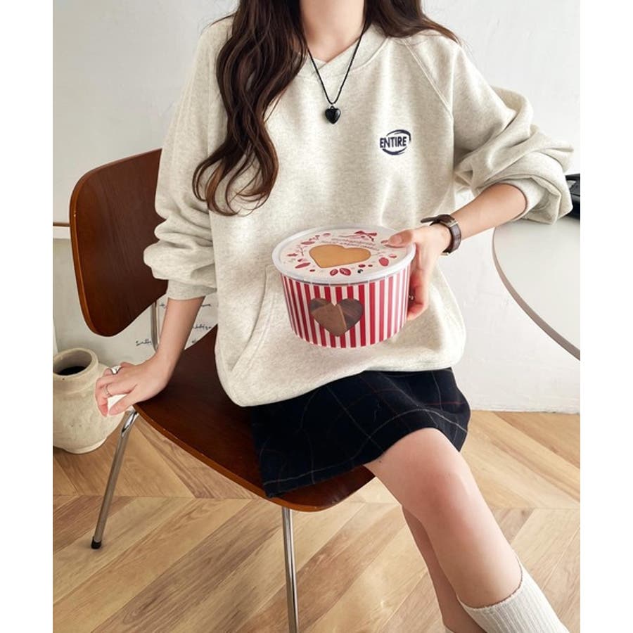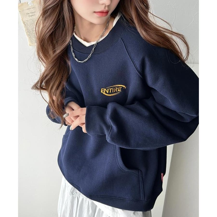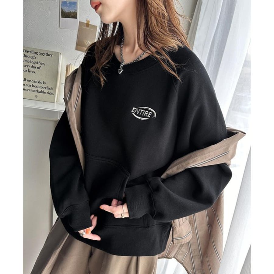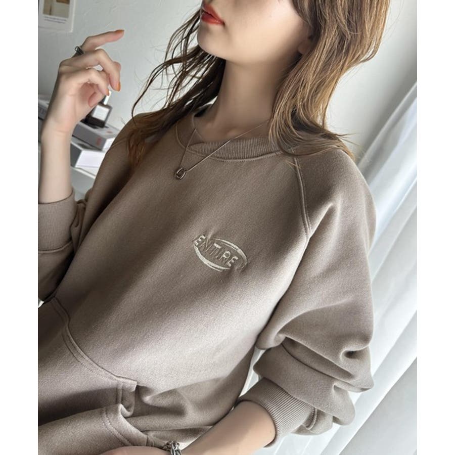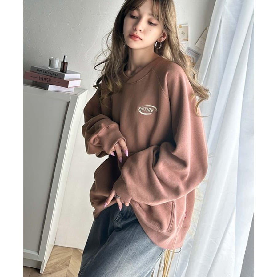 胸元にワンポイントのロゴがデザインされたラグランスウェット。