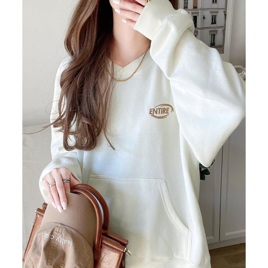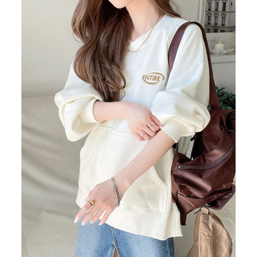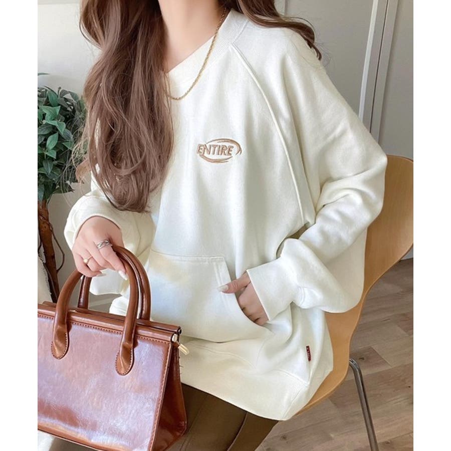【オフホワイト】一枚でサマになる。ワンポイント胸元刺繍裏起毛ラグランスウェット