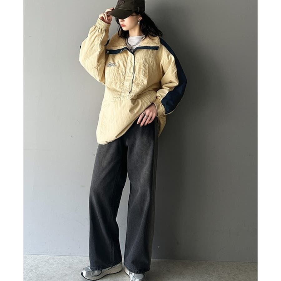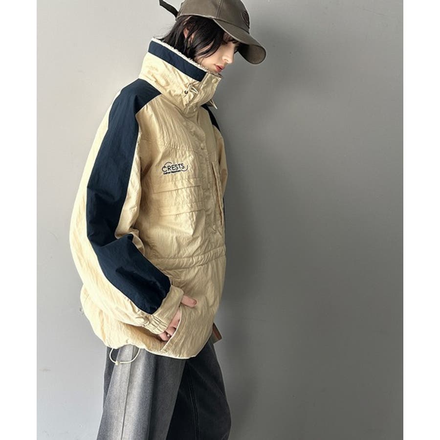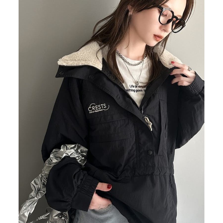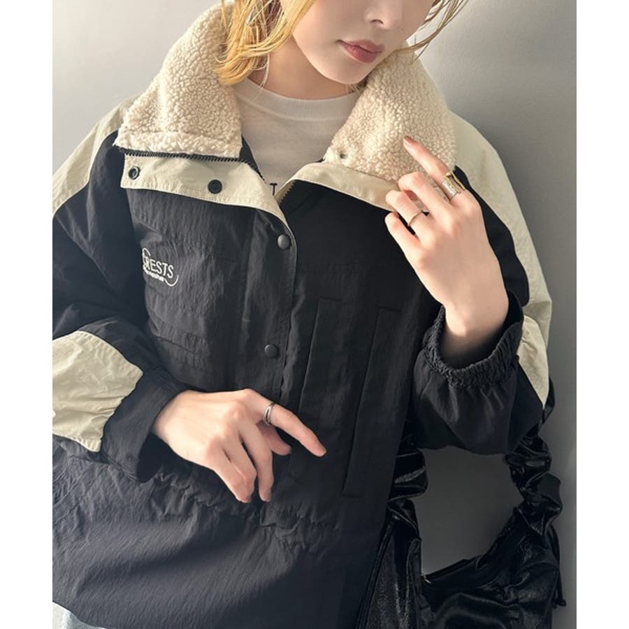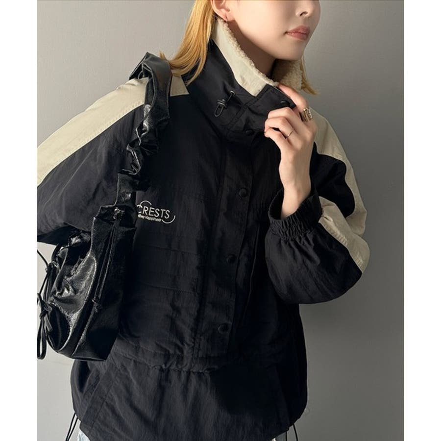 【ブラック】主役を飾る大人レトロ配色。裏キルティング配色レトロハーフジップブルゾン