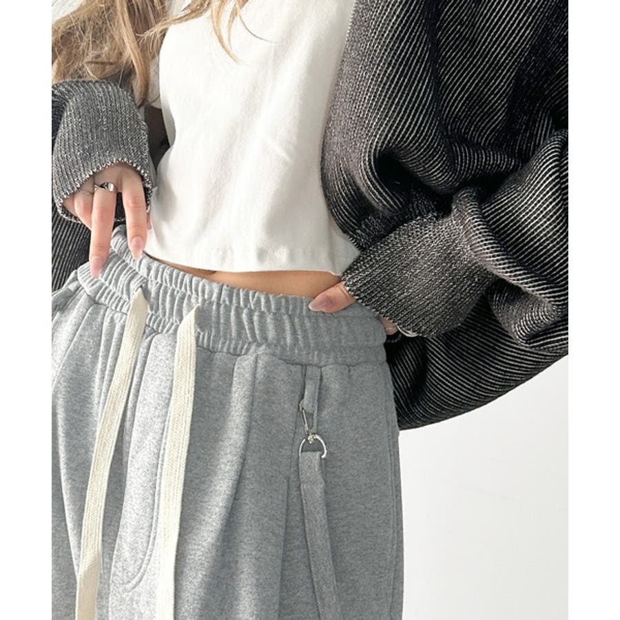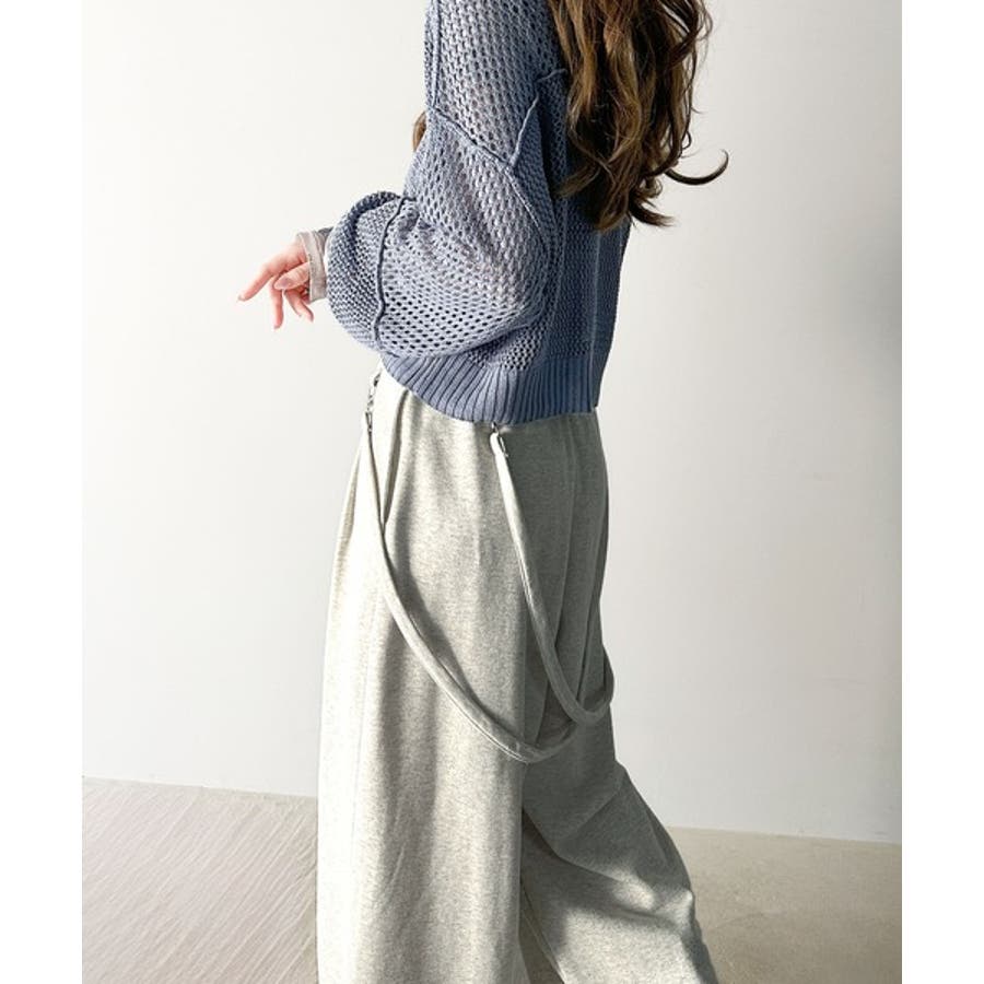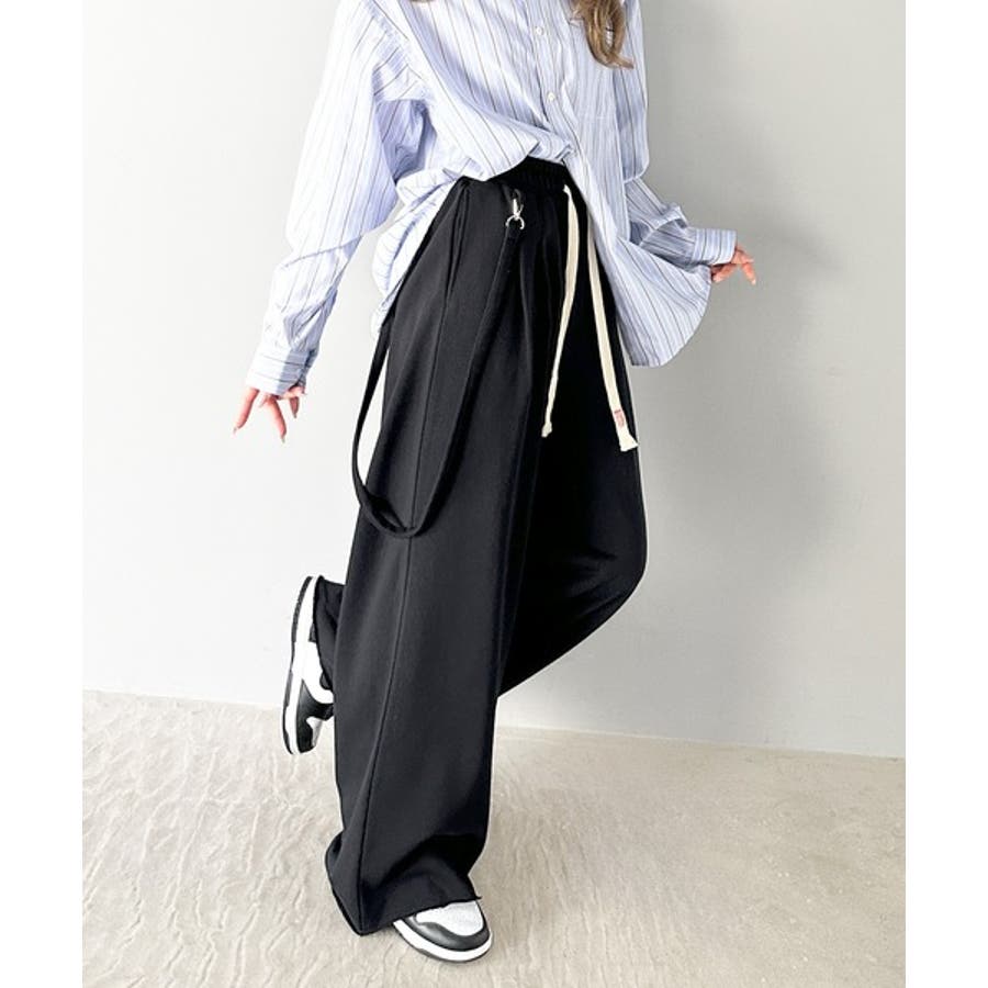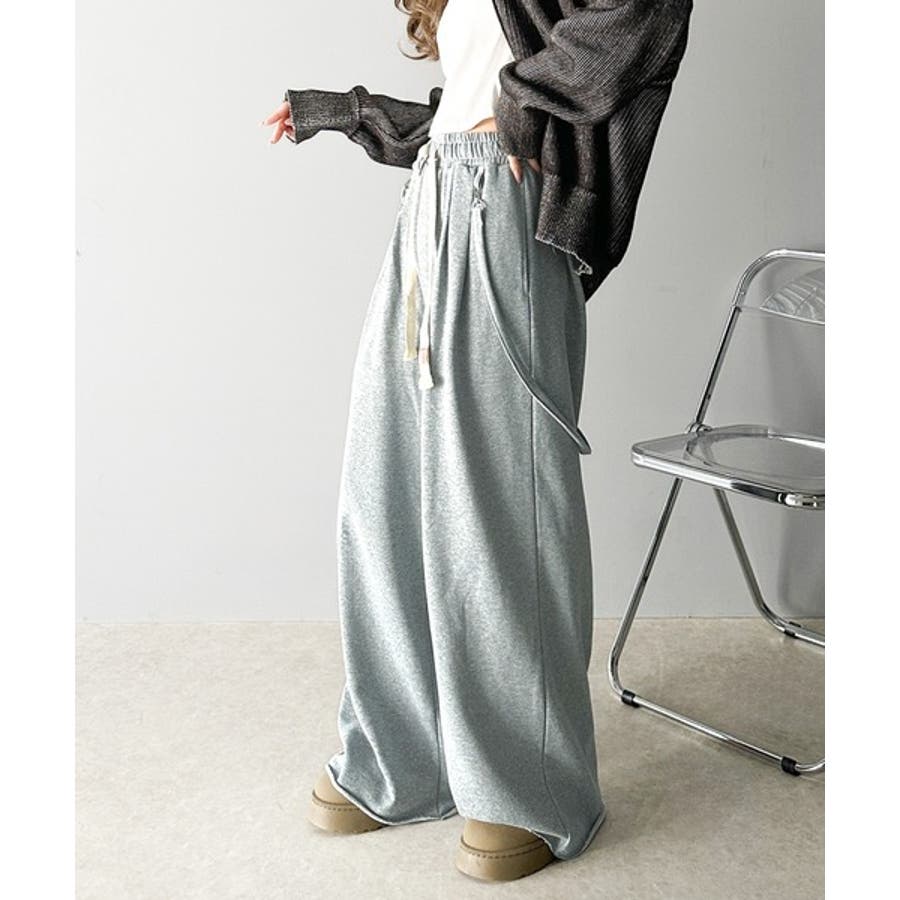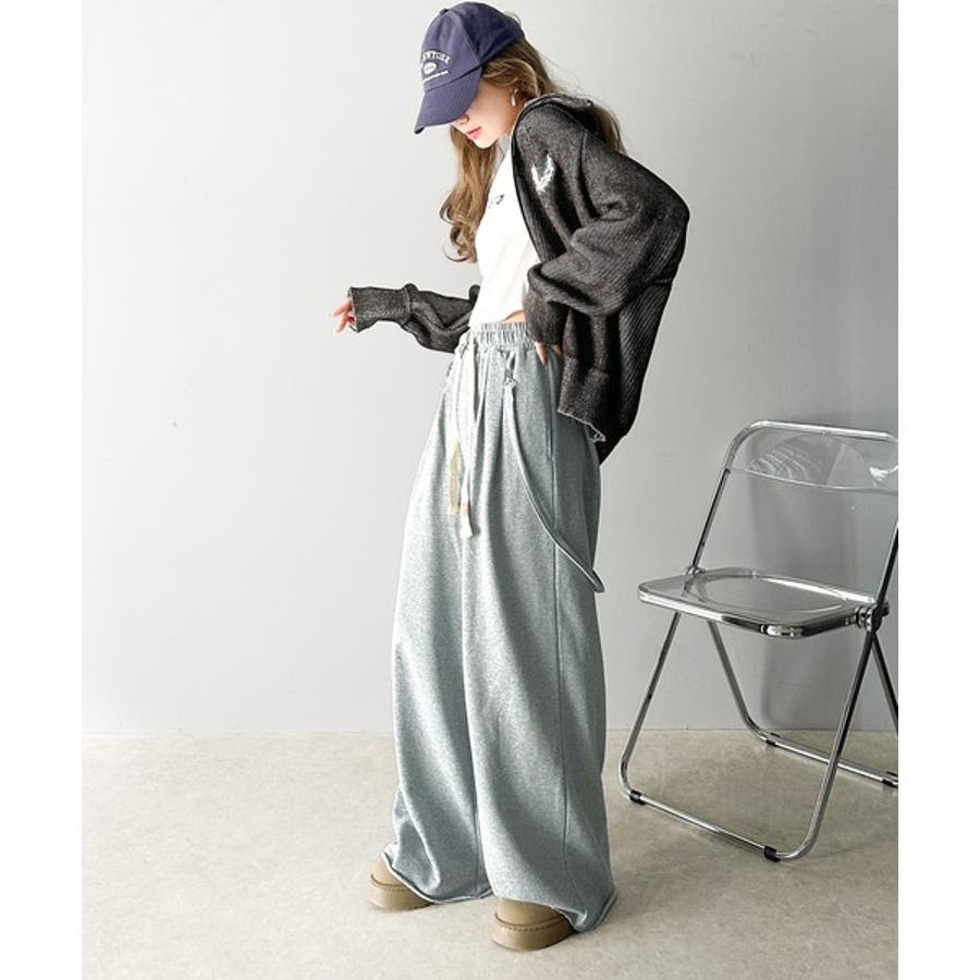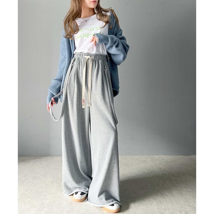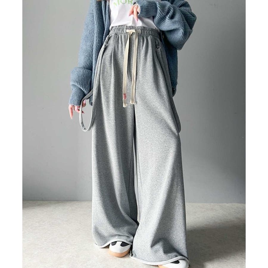 サスペンダー付きデザインのワイドスウェットパンツ。