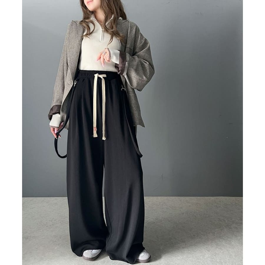 ワンランク上の着こなし叶う。サスペンダー付裏毛2タックワイドパンツ