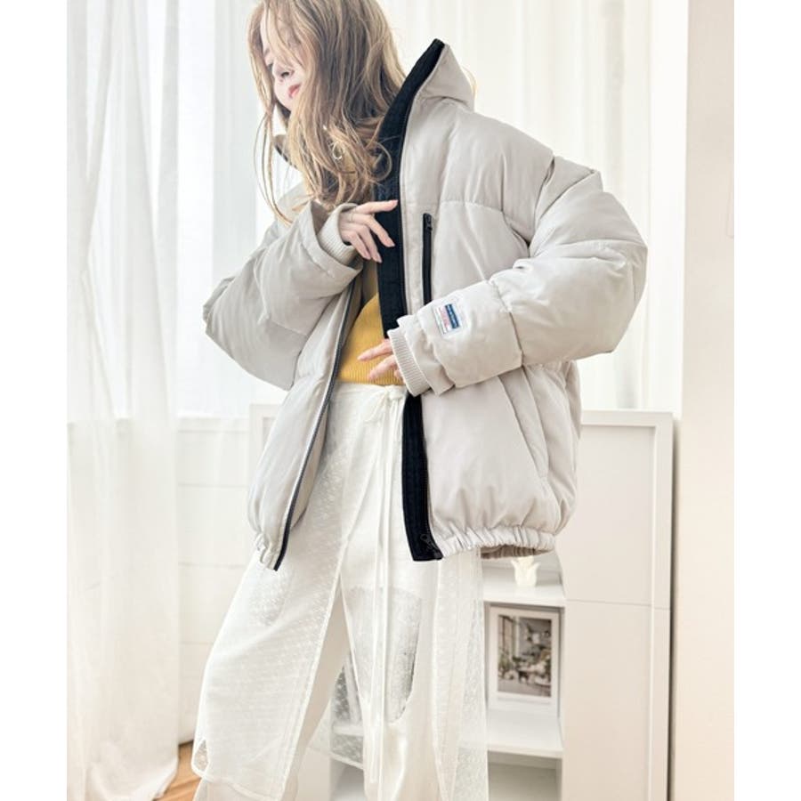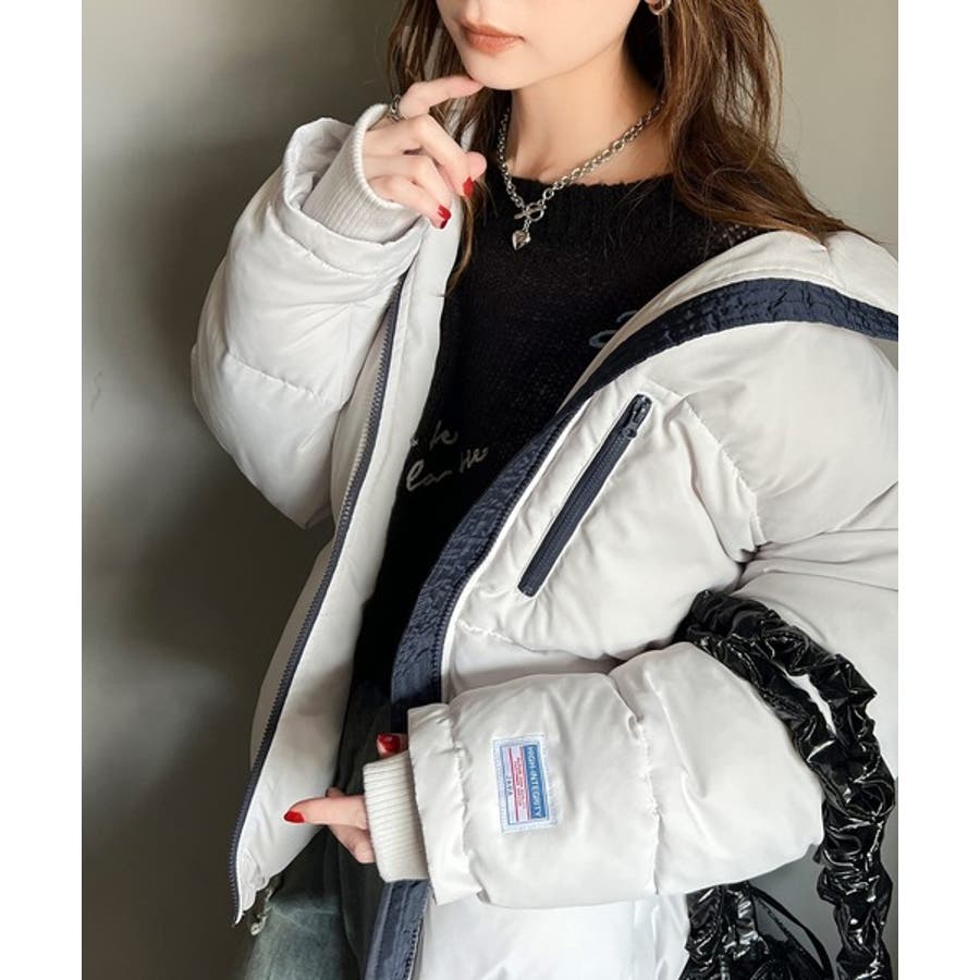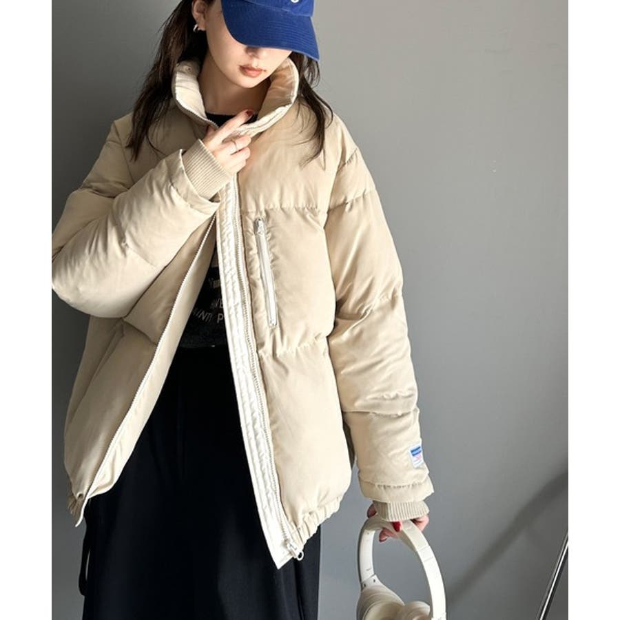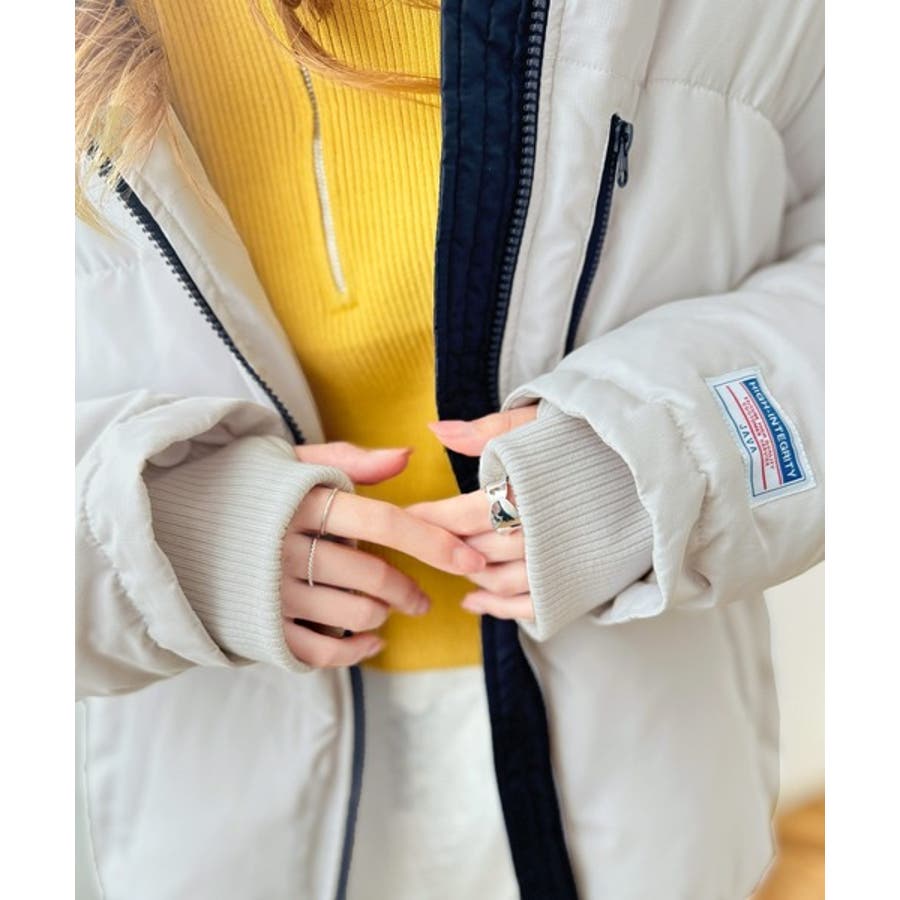 防寒とオシャレを両立。配色ジップ×フィンガーホール中綿ブルゾン