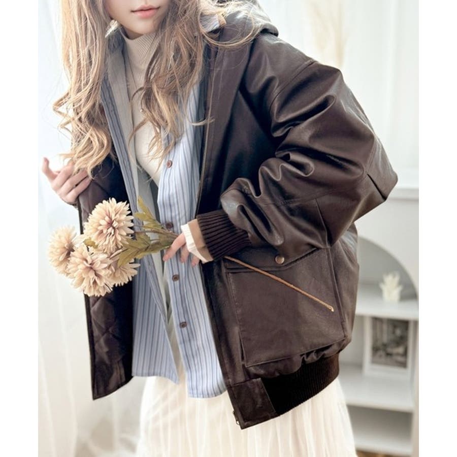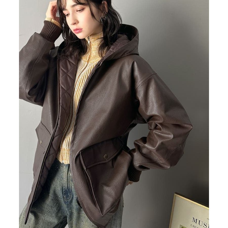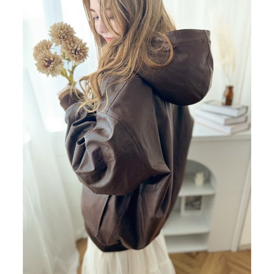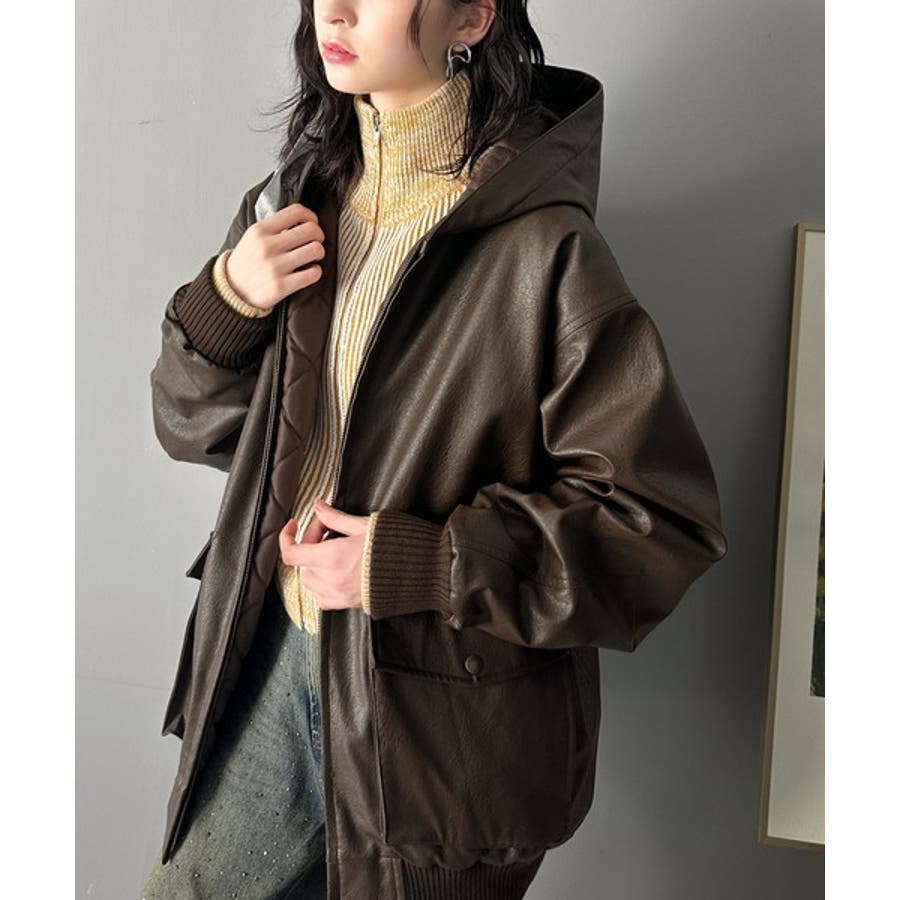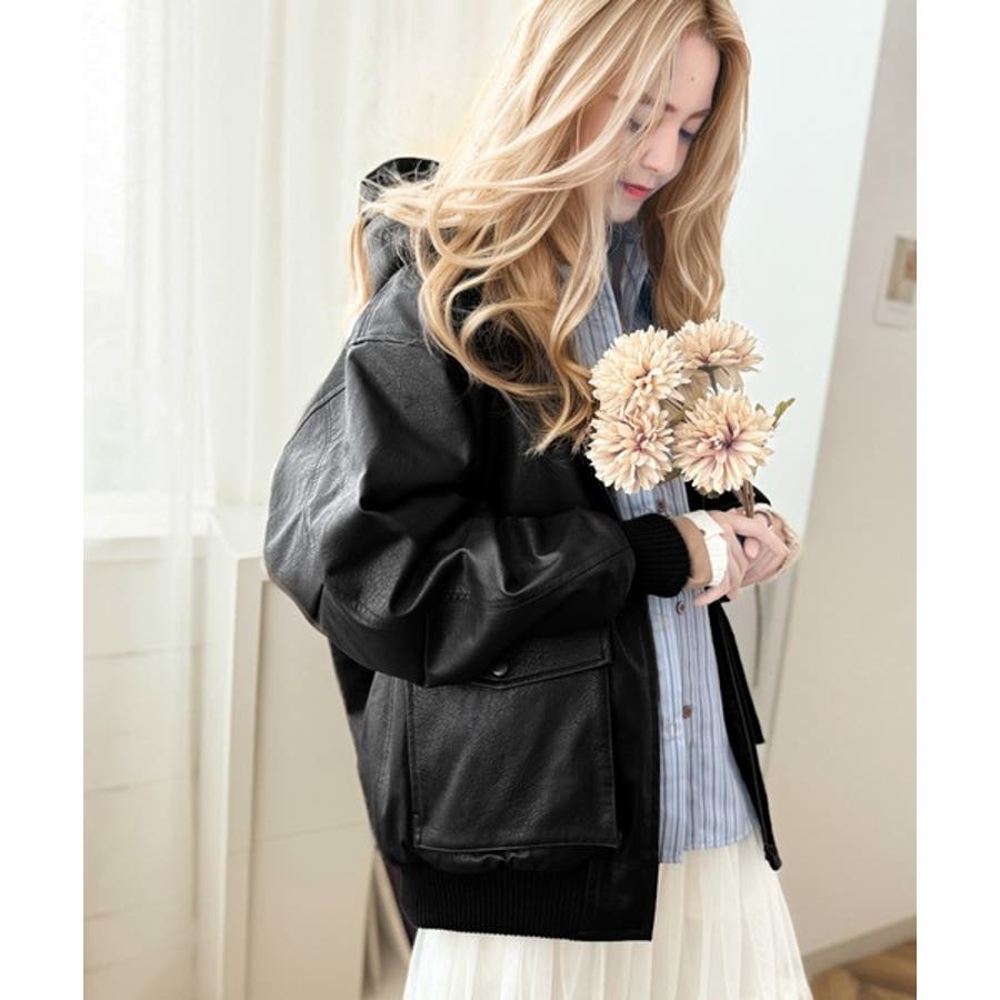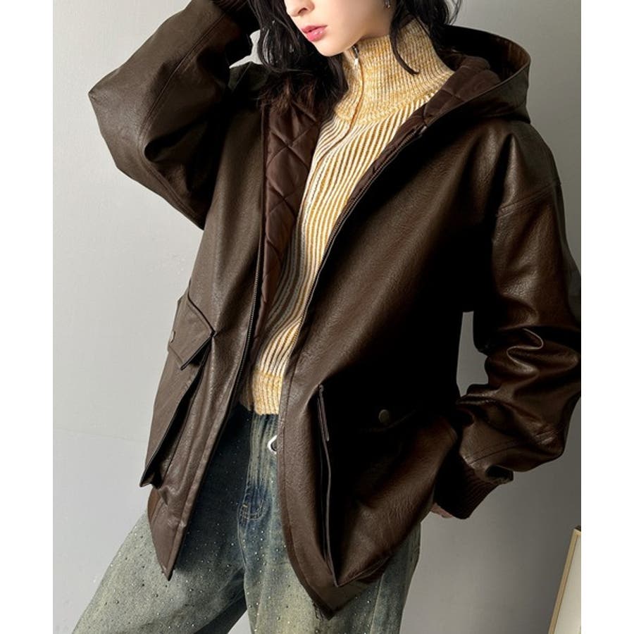 《レディースもメンズも着れちゃう"フェイクレザーフーディ―ブルゾン"。》