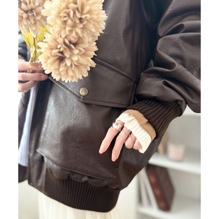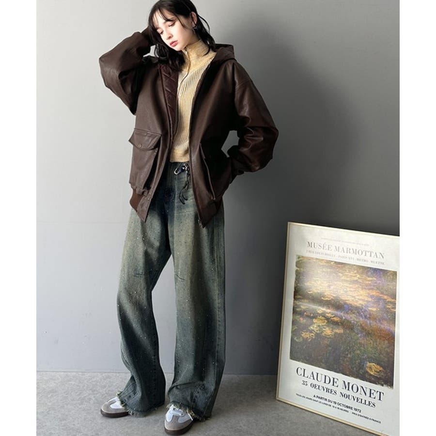 ヴィンテージ感が映える。フェイクレザーフーディ―ブルゾン