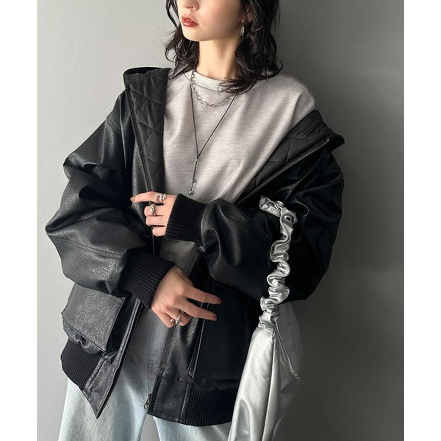 ゆったりしたサイズ感のメンズライクなレザーフーディー。