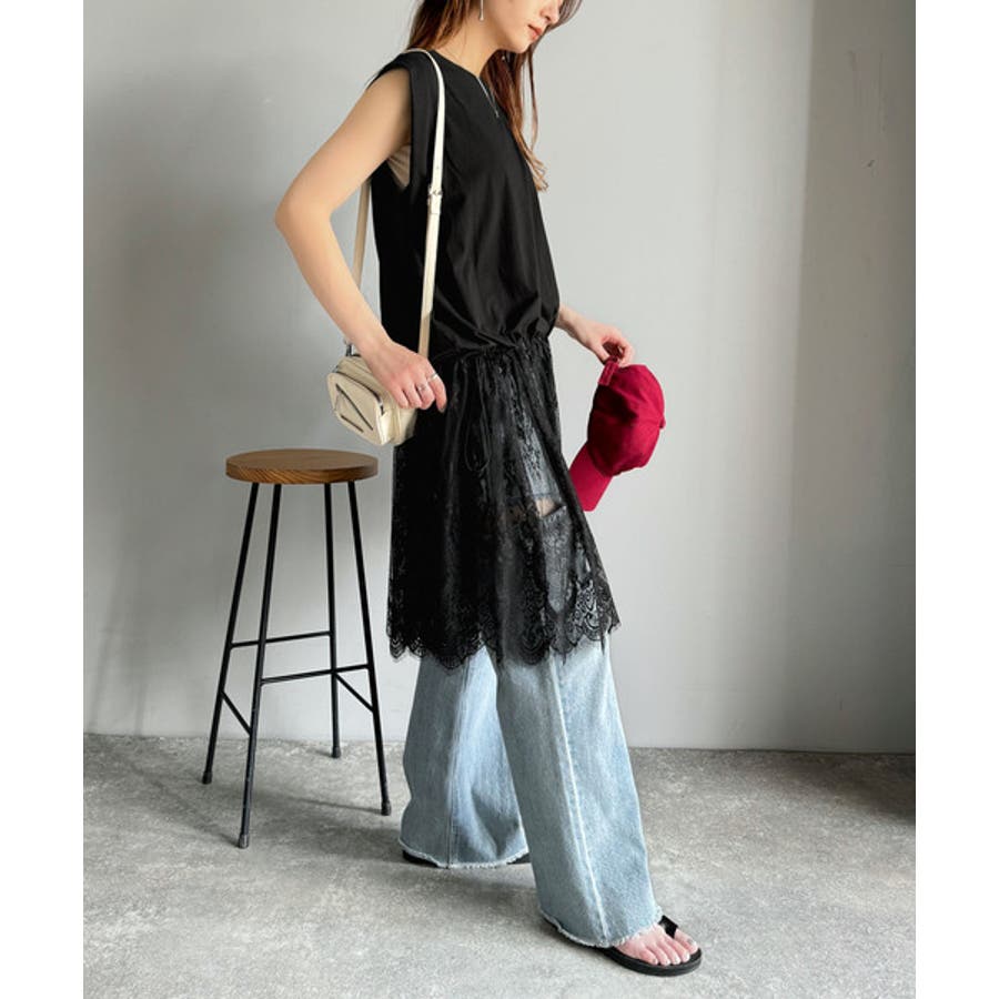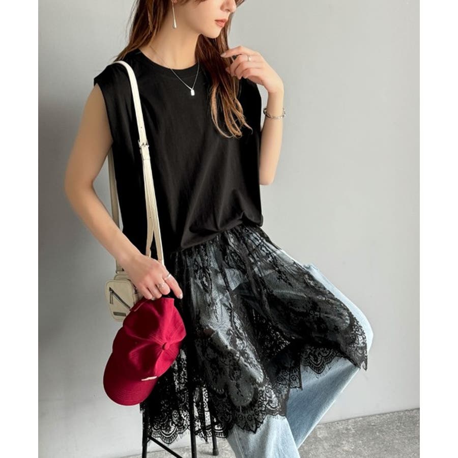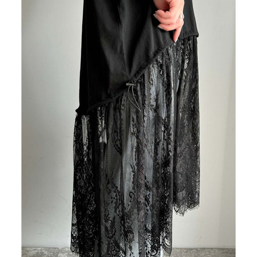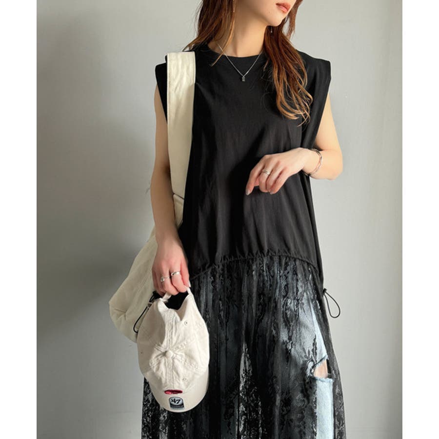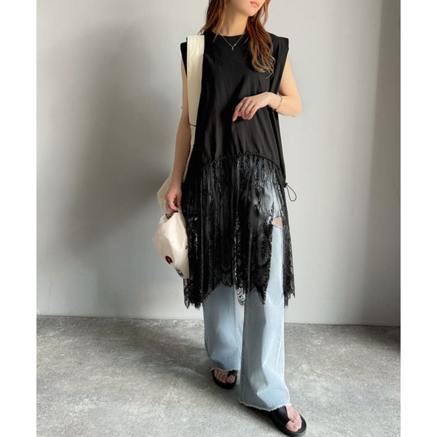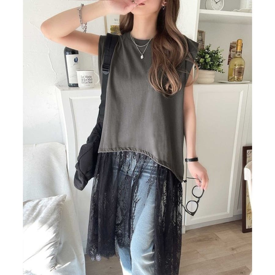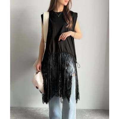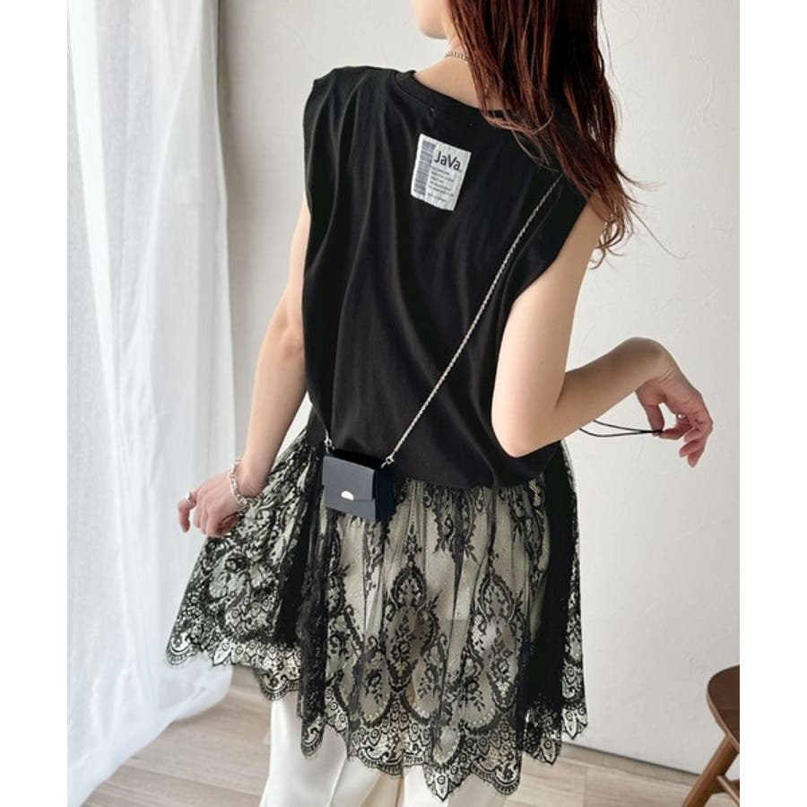 《JaVaジャバコラボ》1枚で旬な着こなし♪レースコンビチュニックTシャツワンピ…