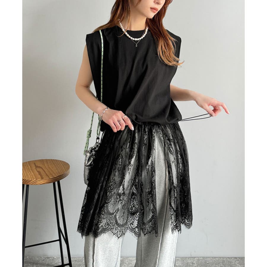 カジュアル感のある綿素材と柔らかなチュール