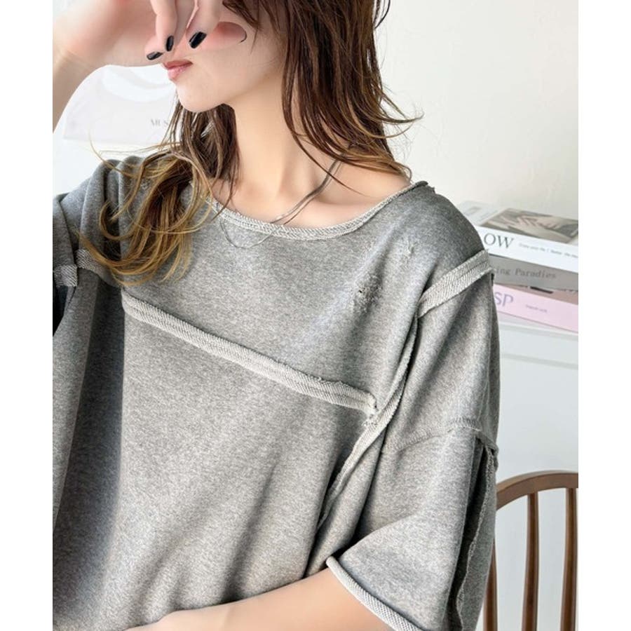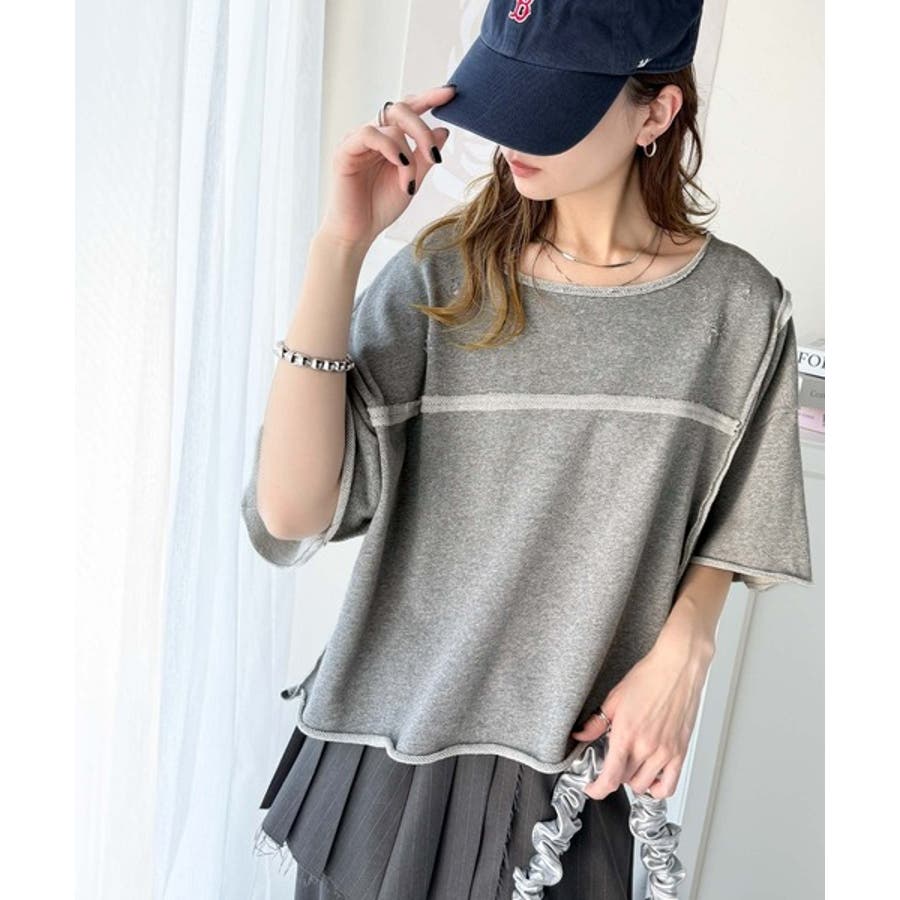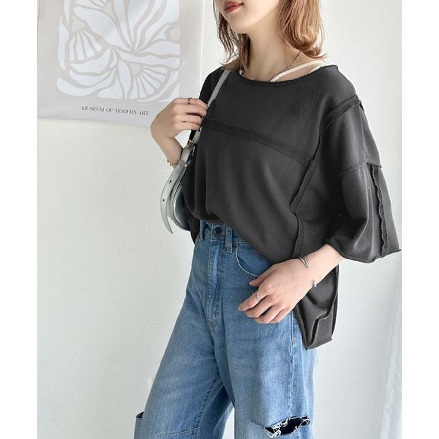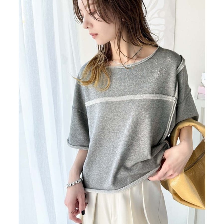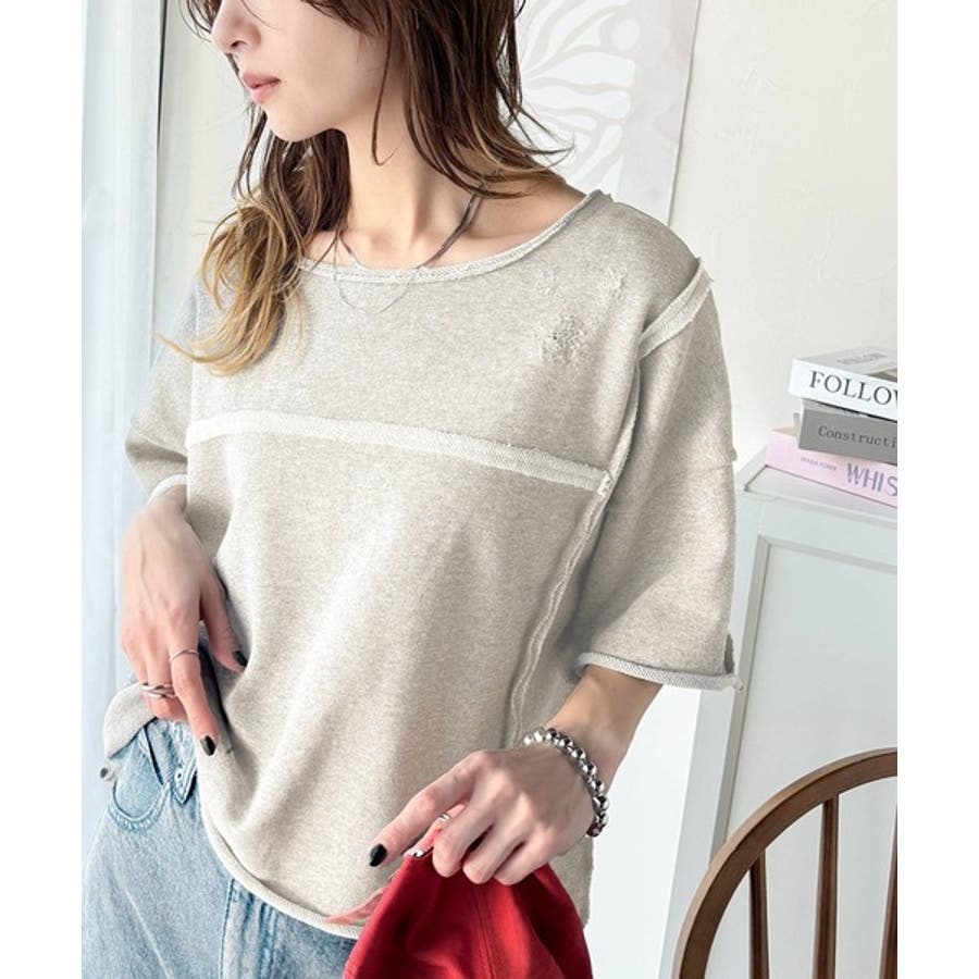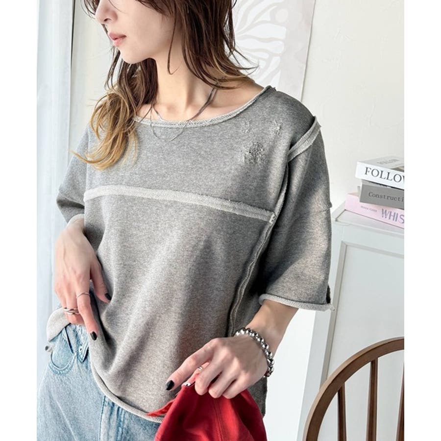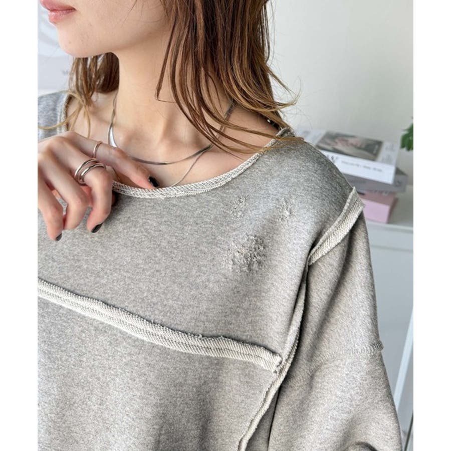 ■detailダメージ加工と切りっぱなしデザインが今っぽい裏毛プルオーバー。