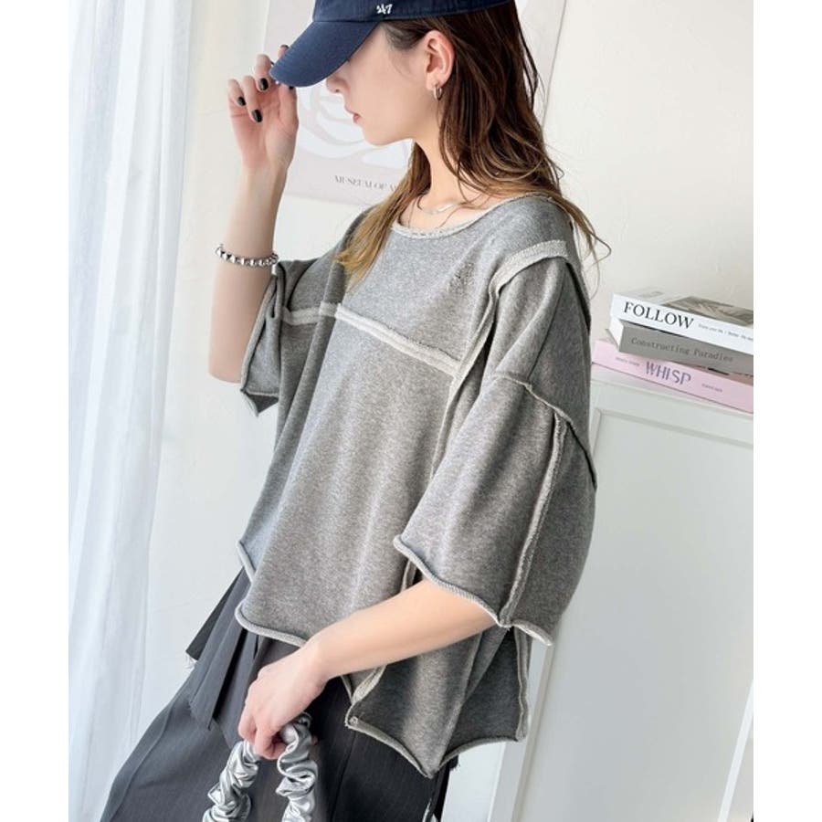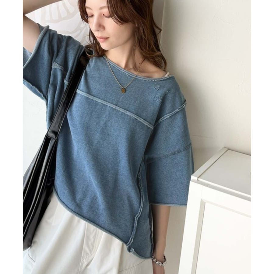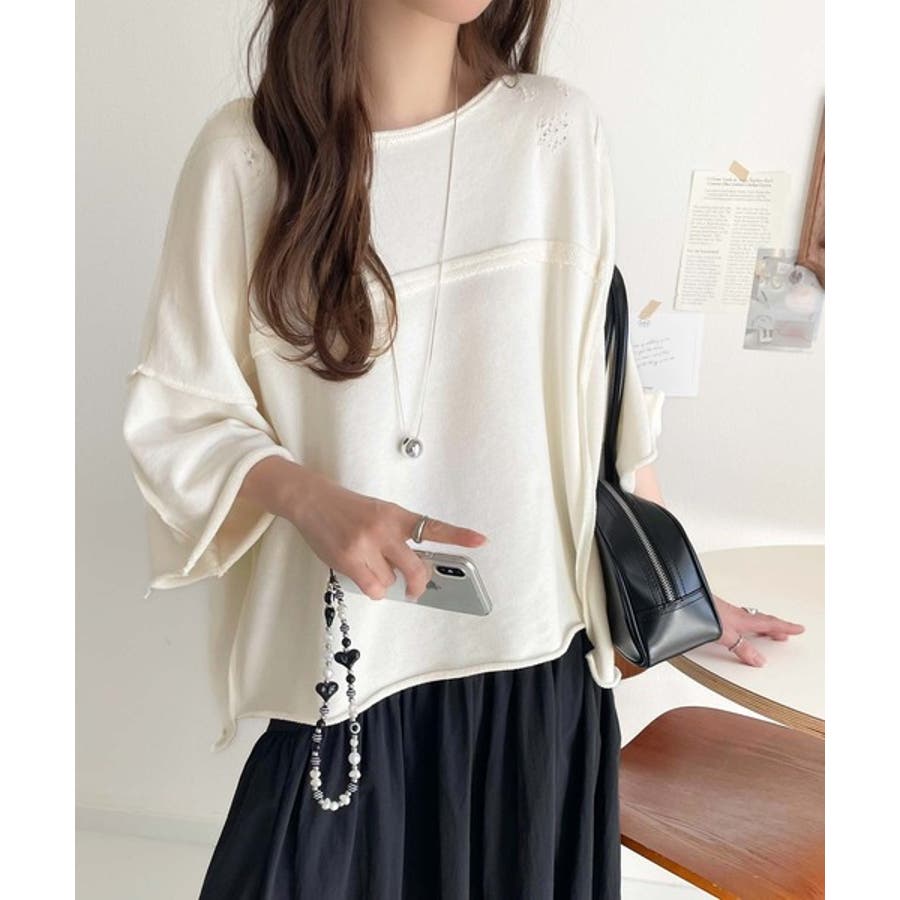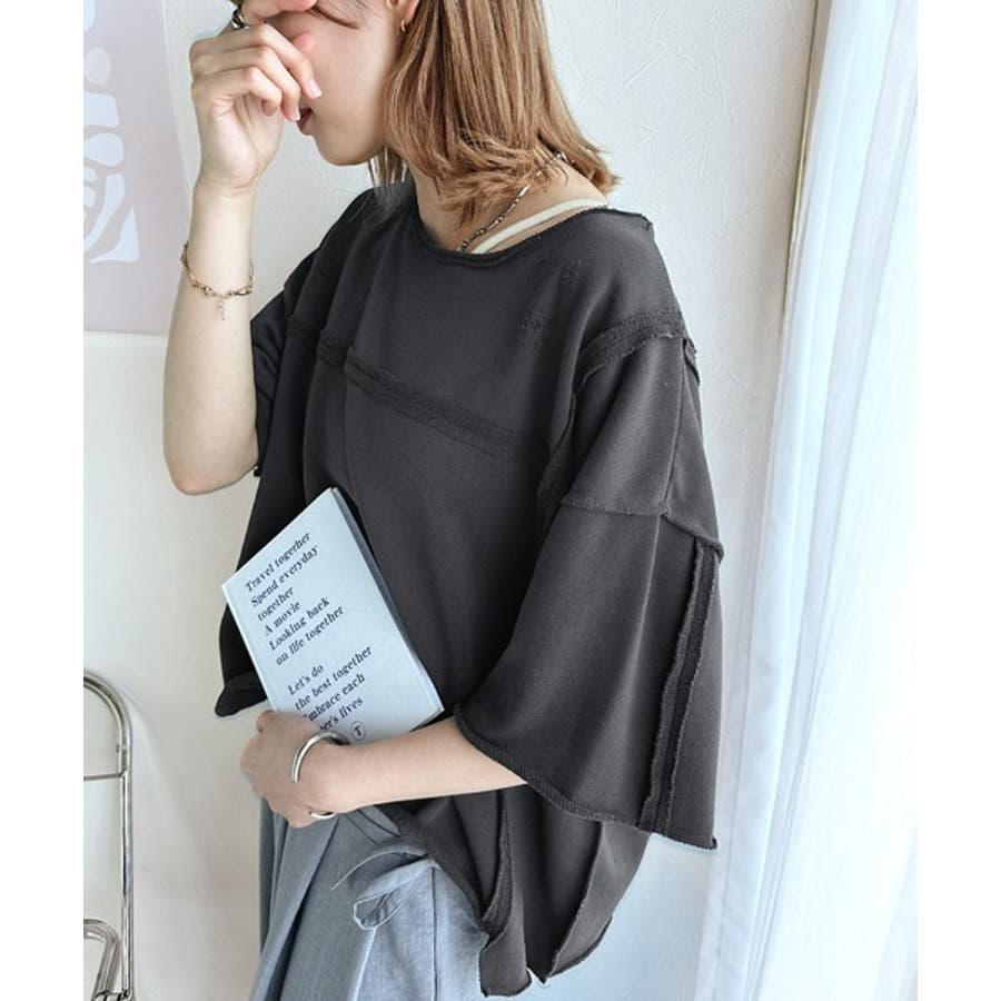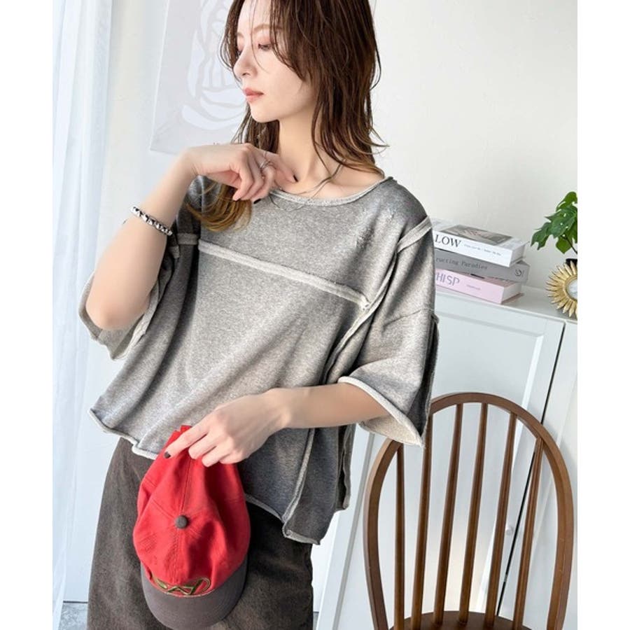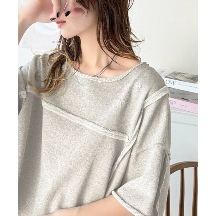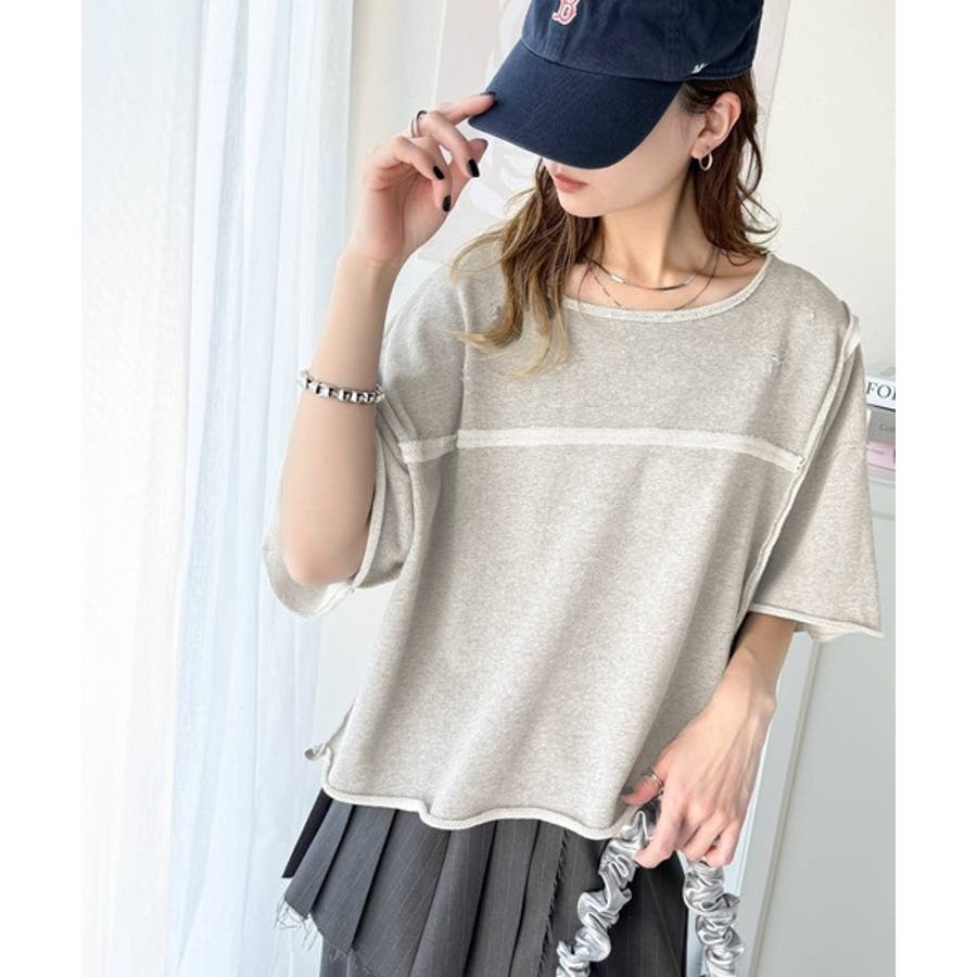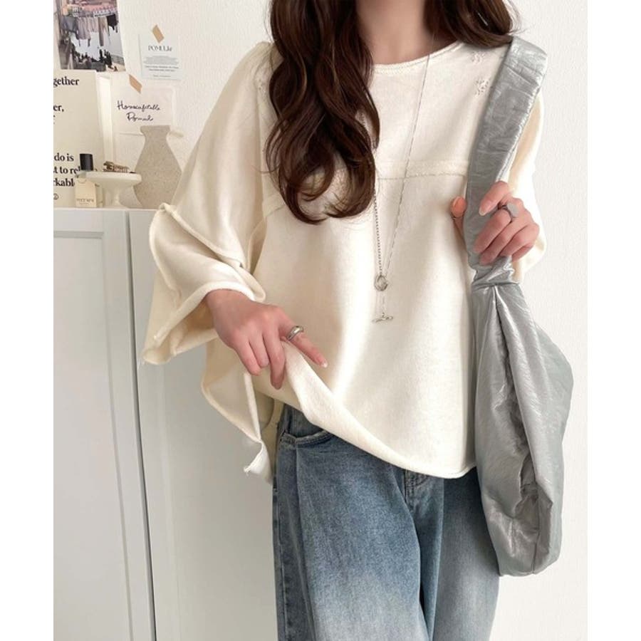 ■detailダメージ加工と切りっぱなしデザインが今っぽい裏毛プルオーバー。