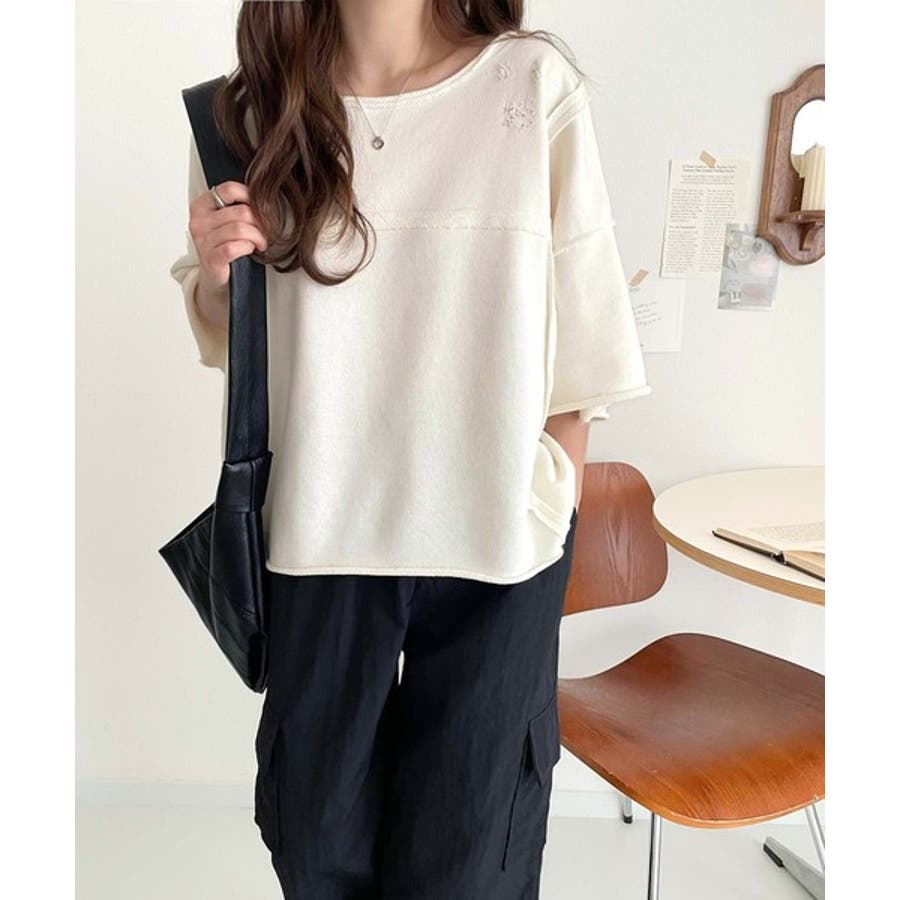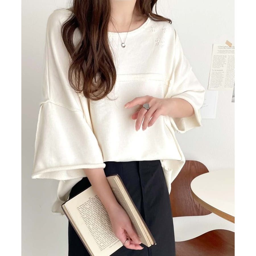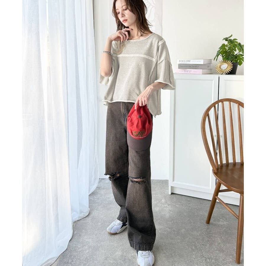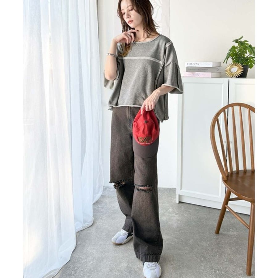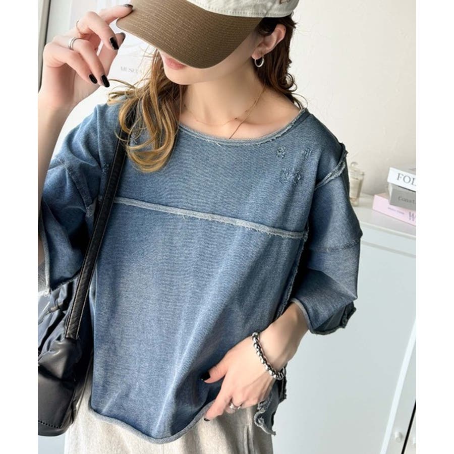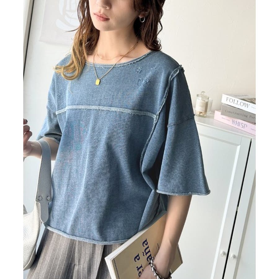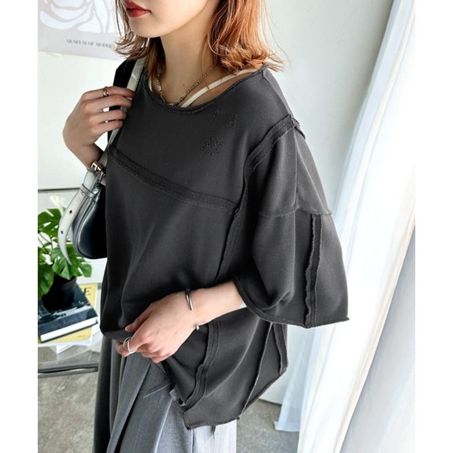 ■detailダメージ加工と切りっぱなしデザインが今っぽい裏毛プルオーバー。