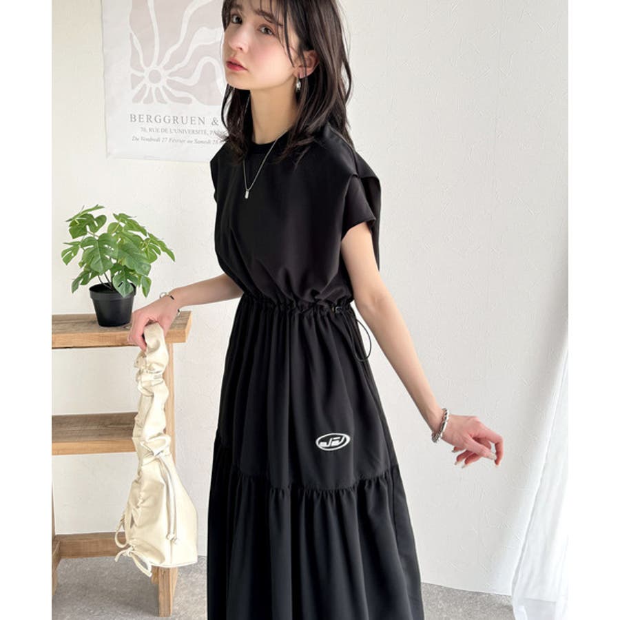 《JaVaジャバコラボ》リラクシーな抜け感♪ロゴ刺繍入りドロスト使いティアードロ…