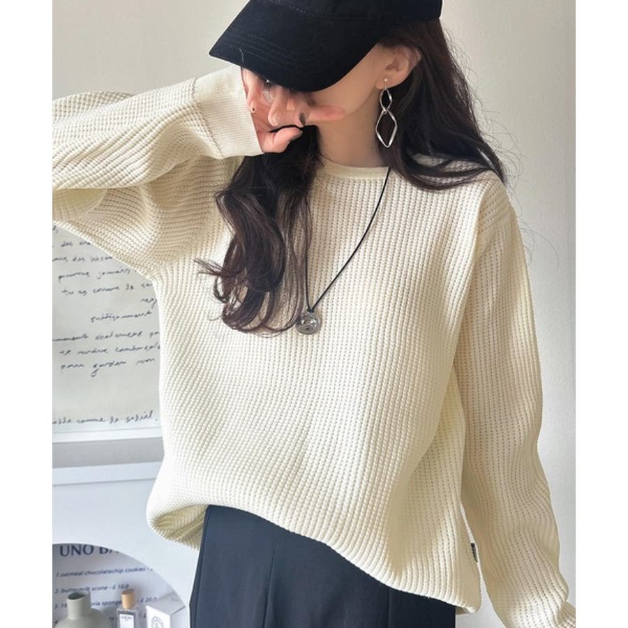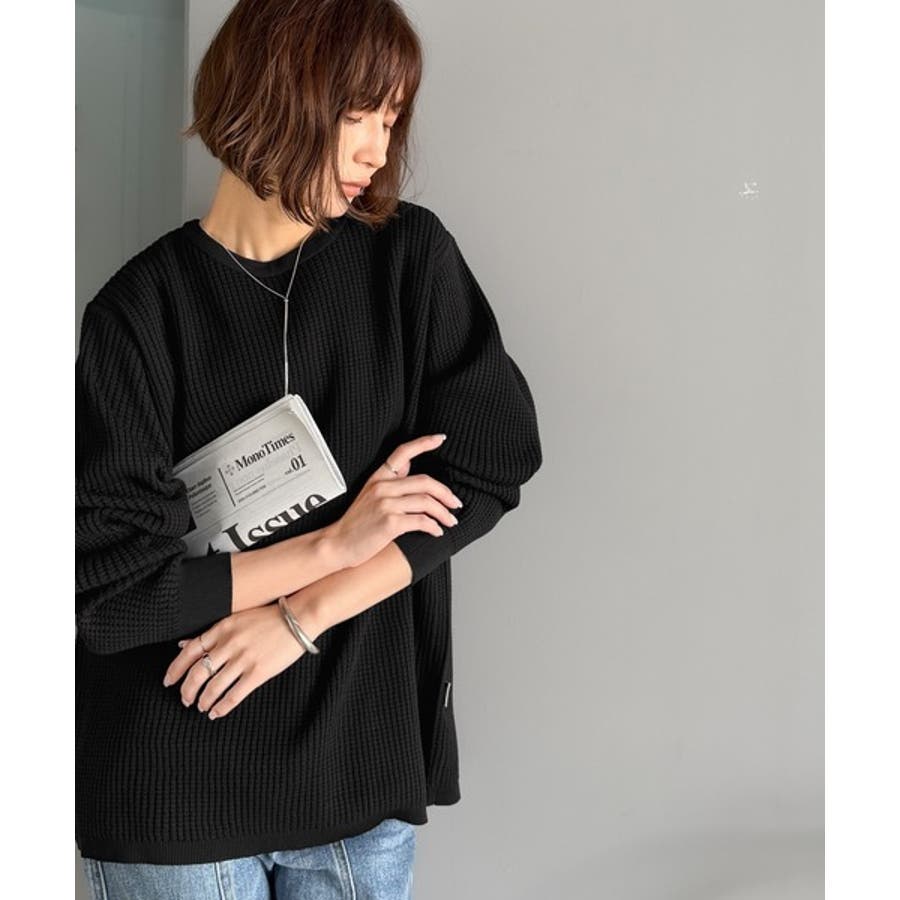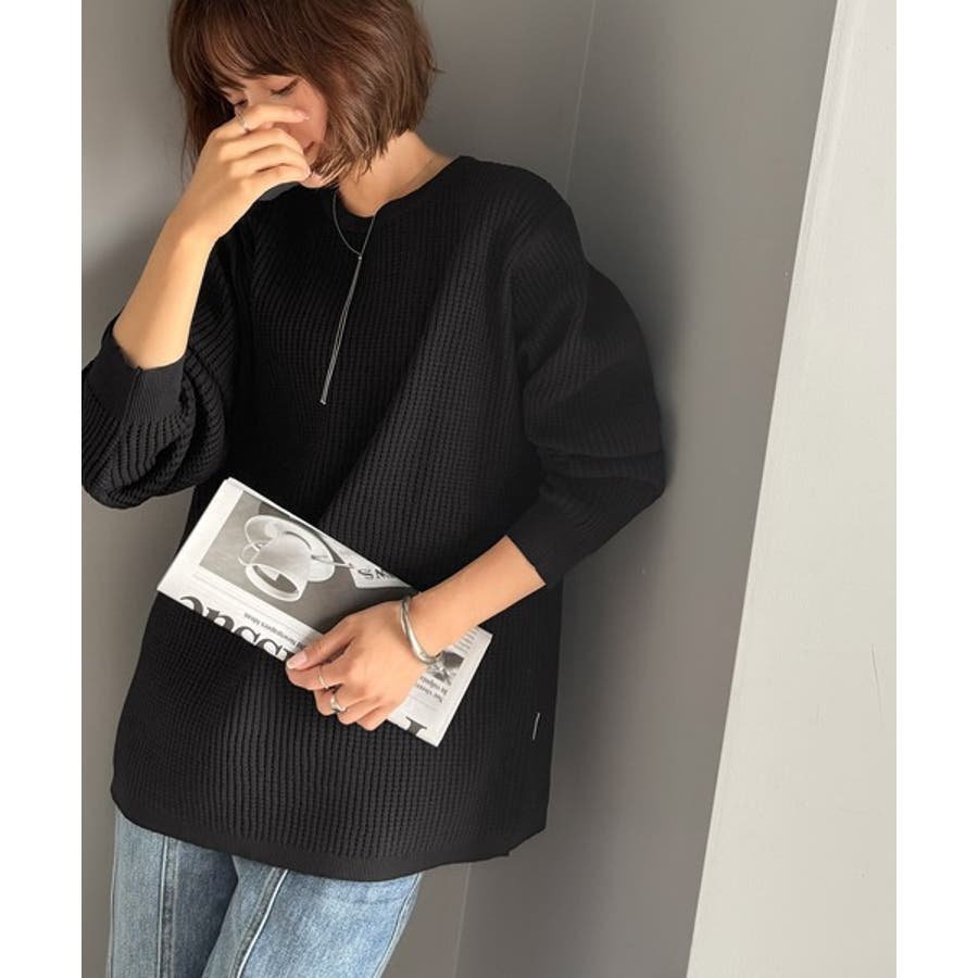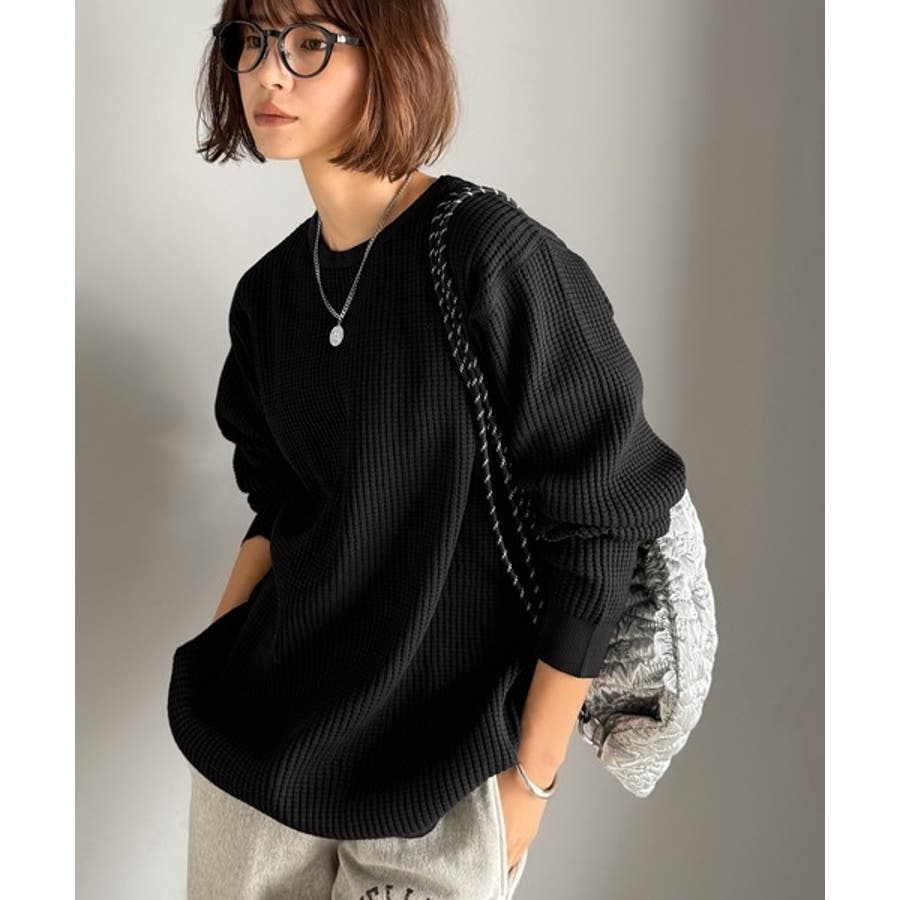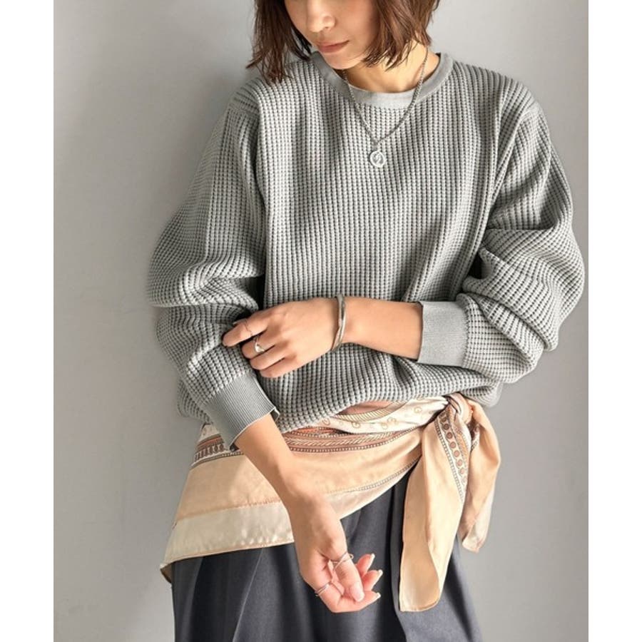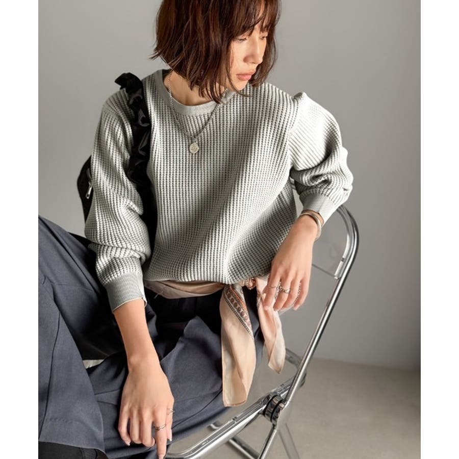 サーマルクルーネックニットは、程よい厚みと独特のワッフル編みが特徴。