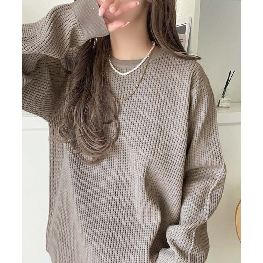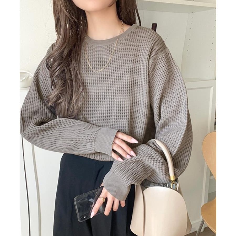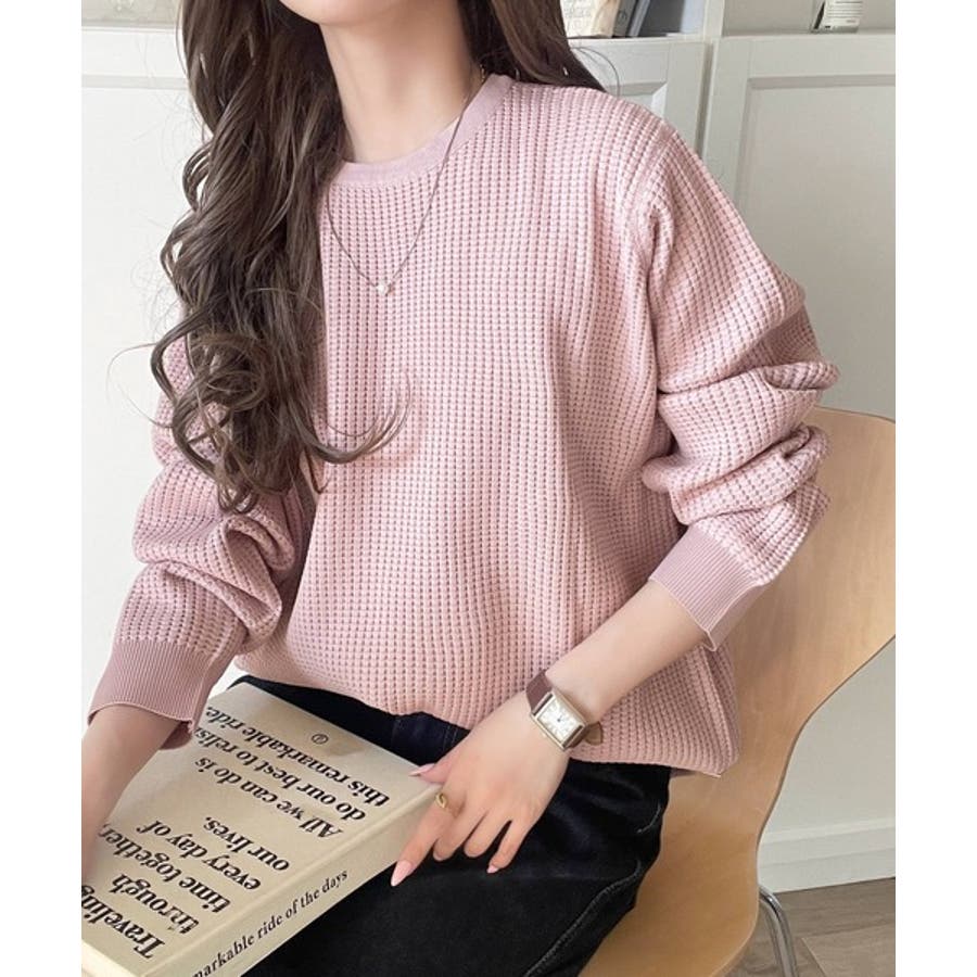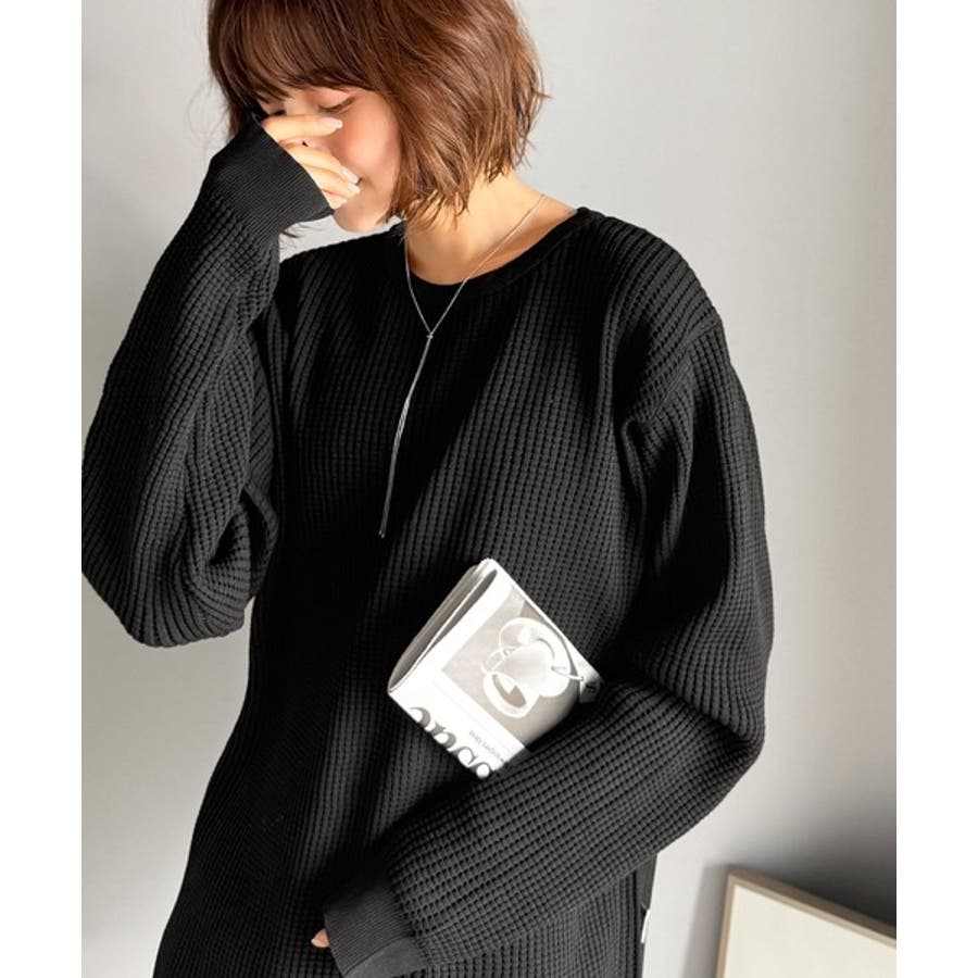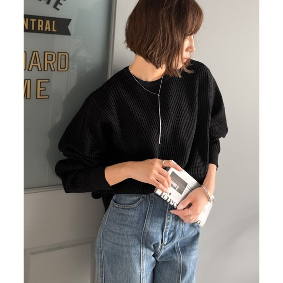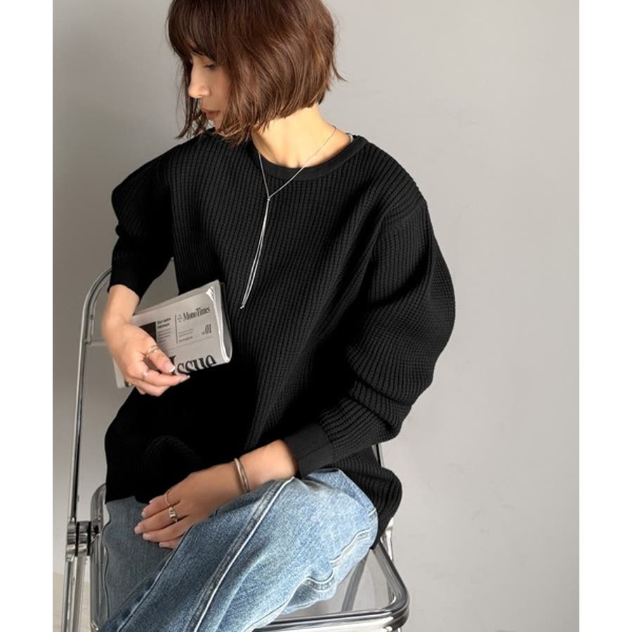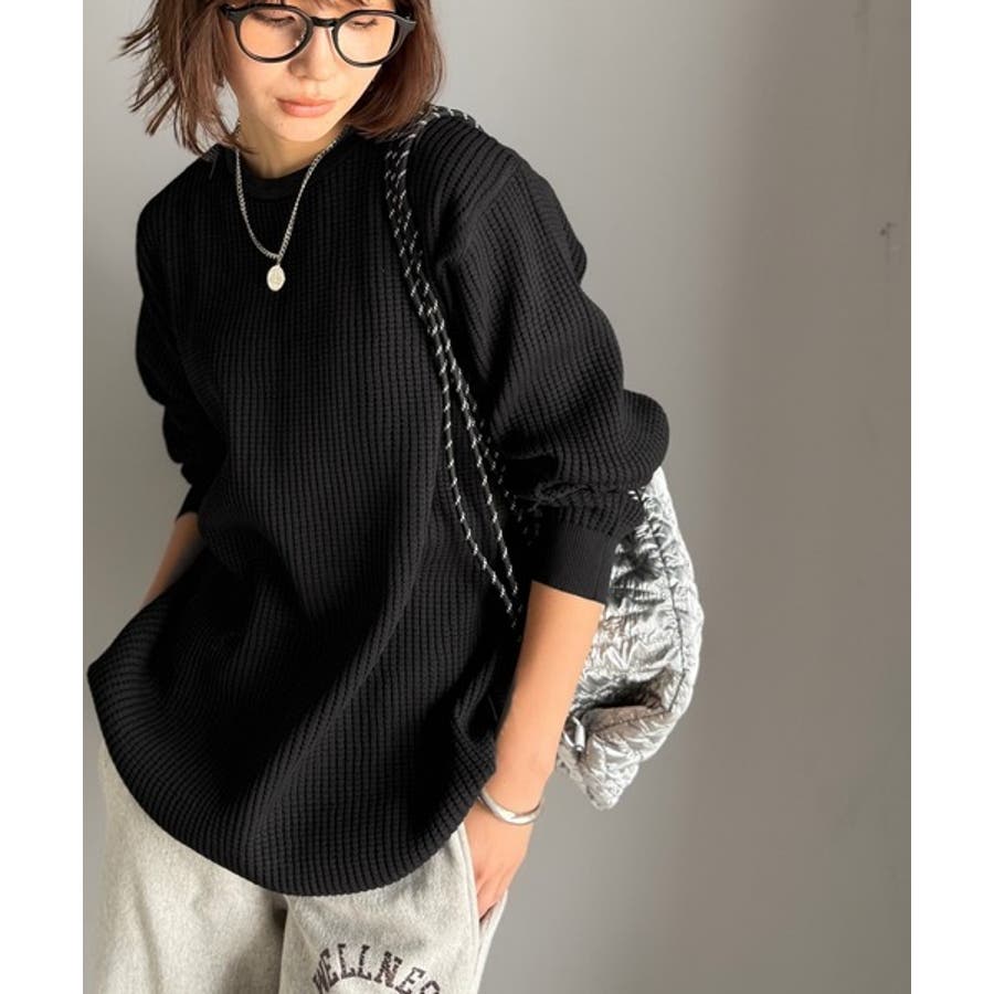 サーマルクルーネックニットは、程よい厚みと独特のワッフル編みが特徴。