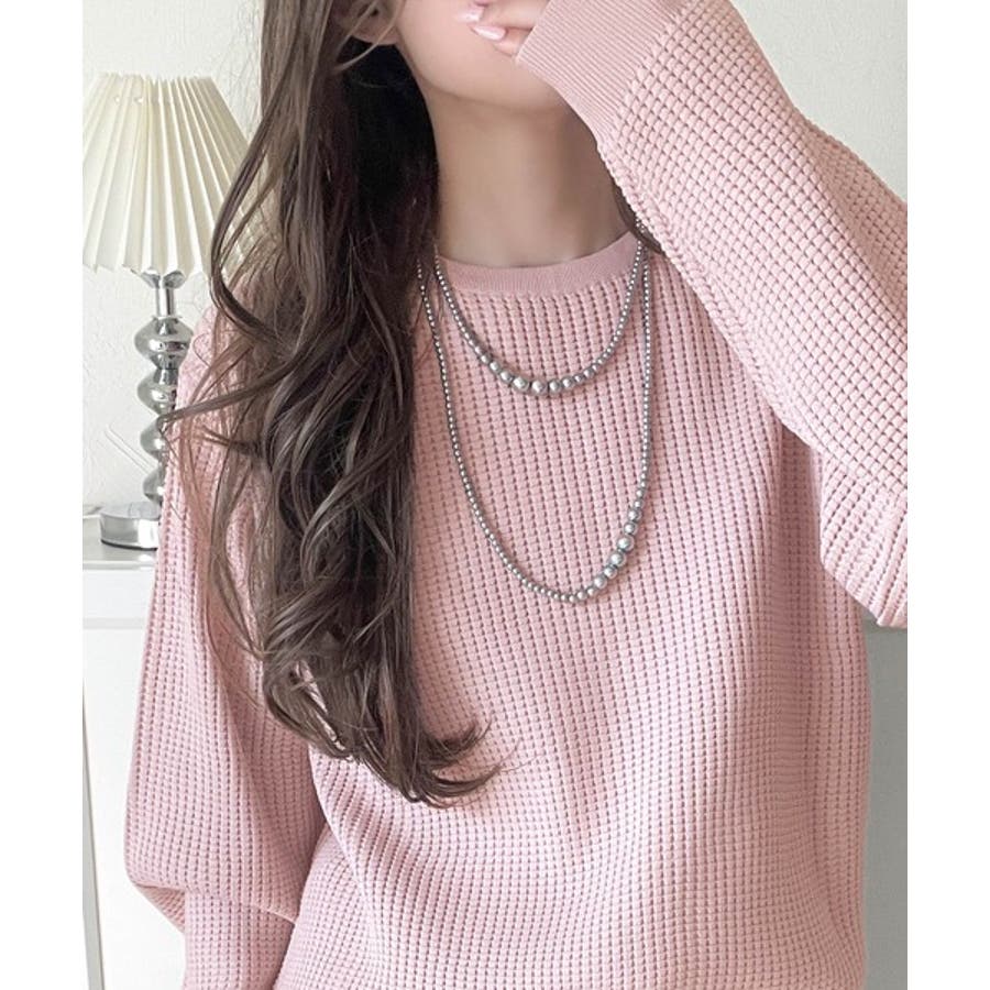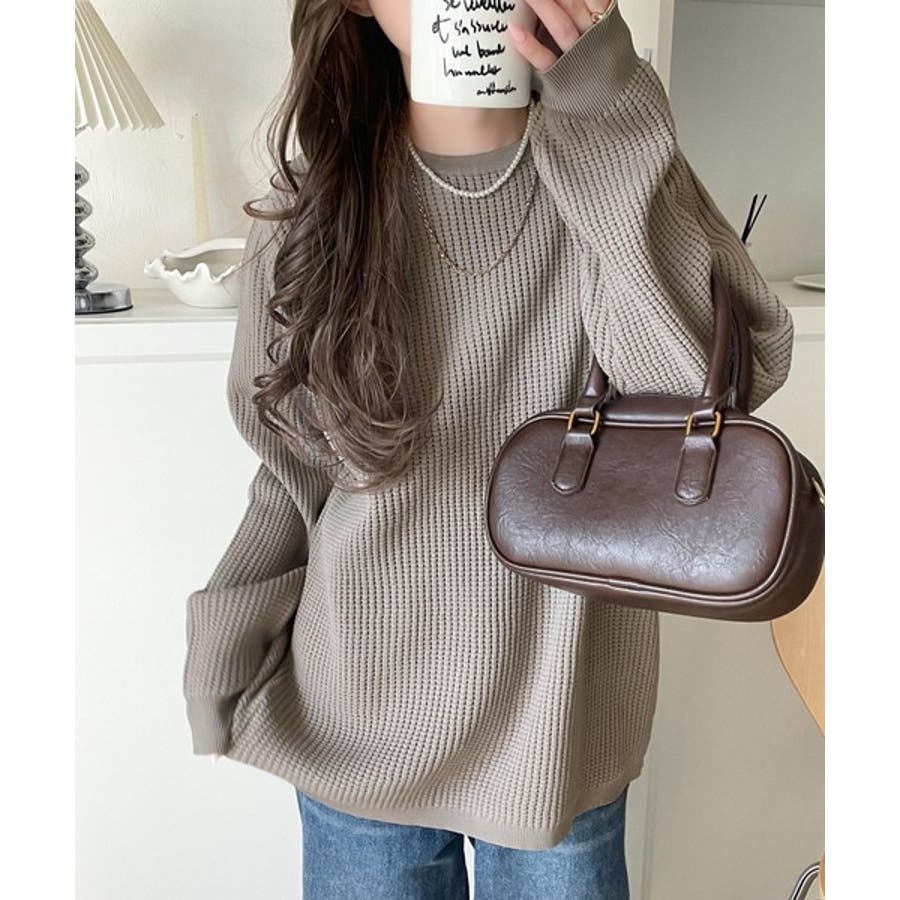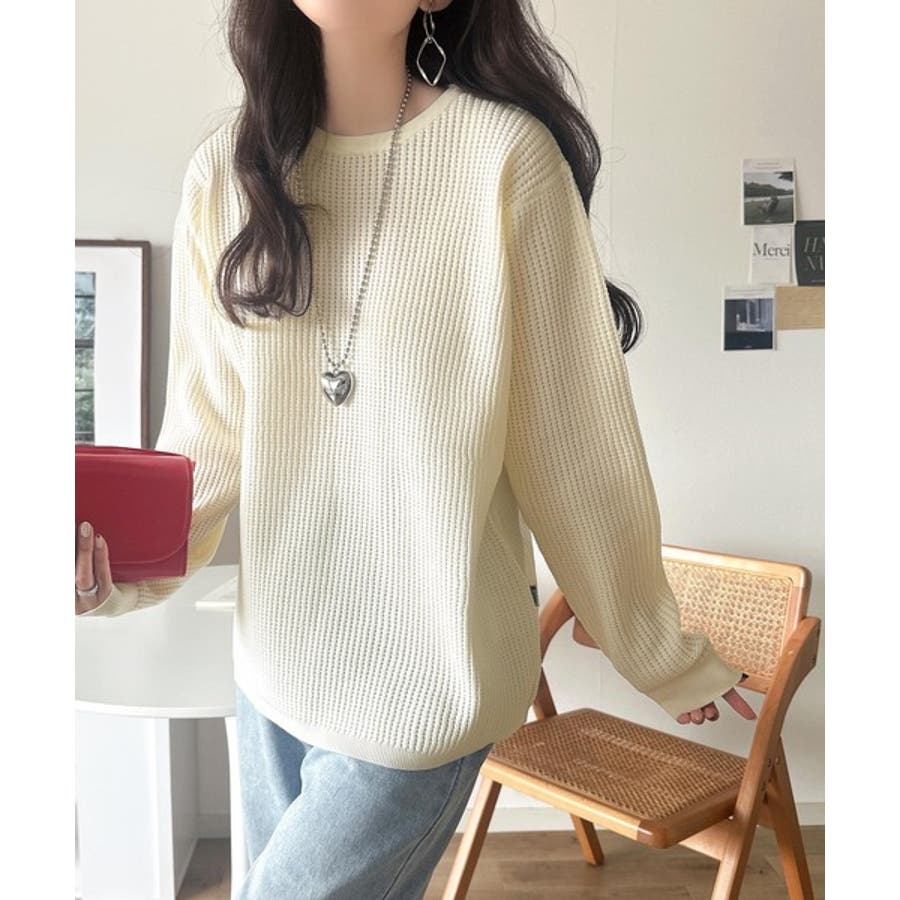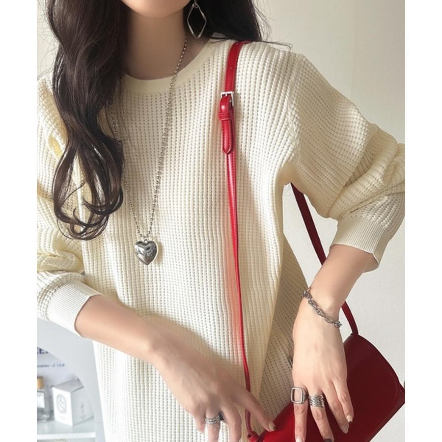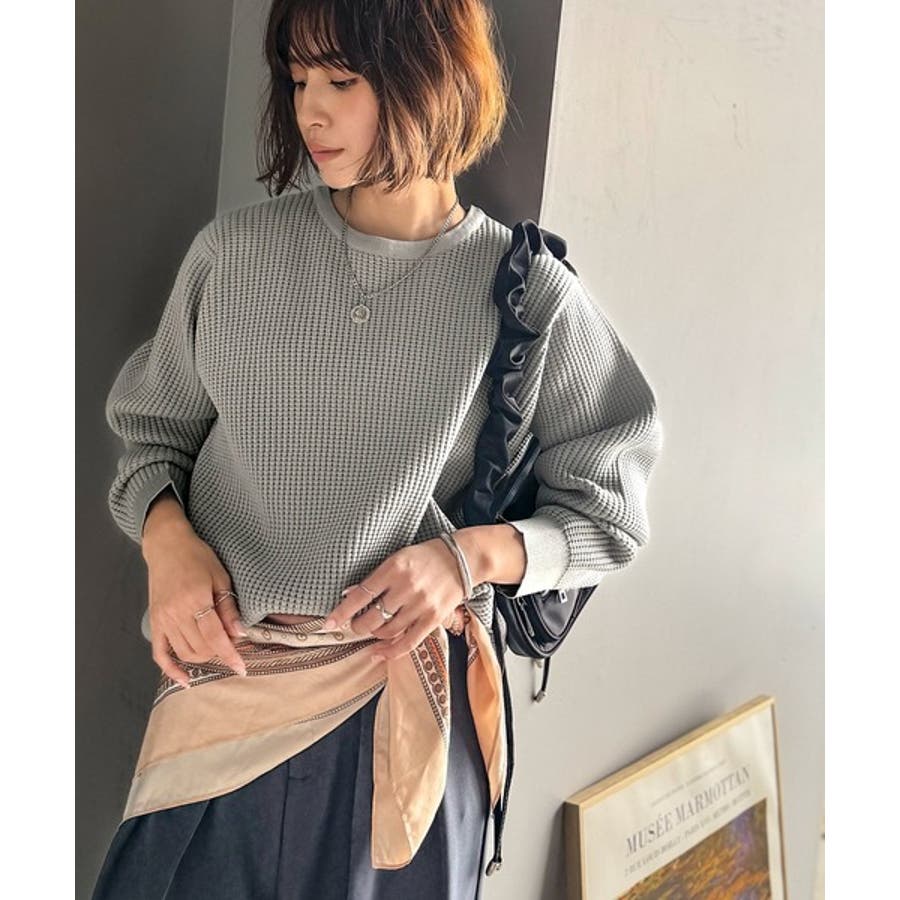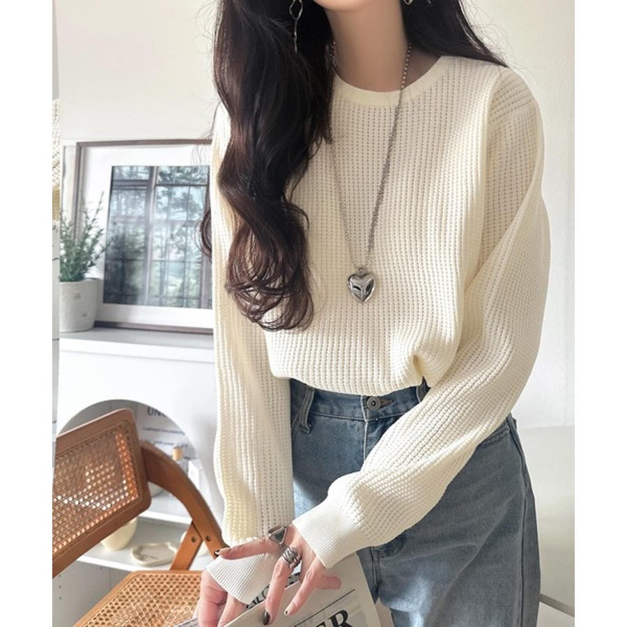 サーマルクルーネックニットは、程よい厚みと独特のワッフル編みが特徴。