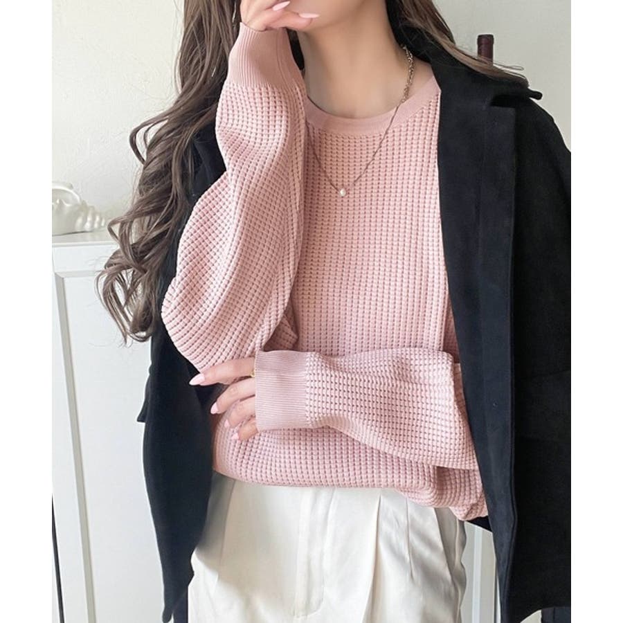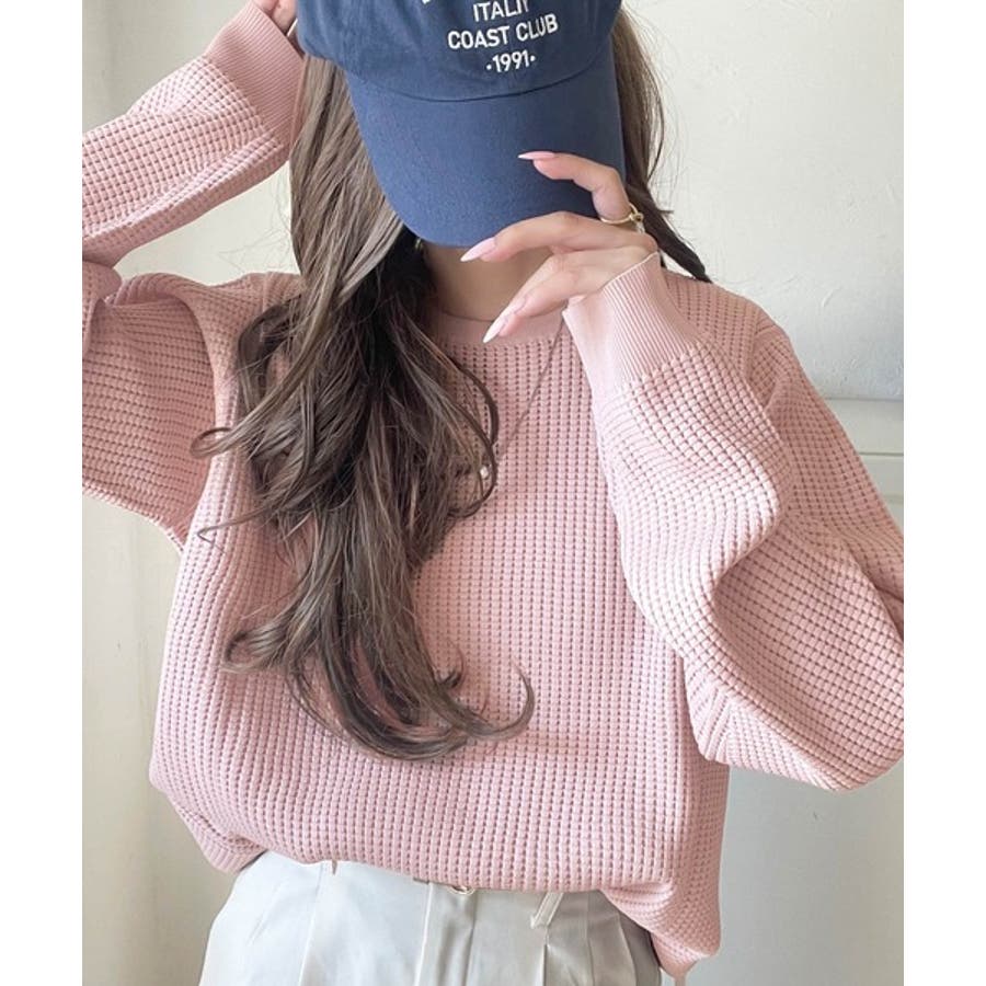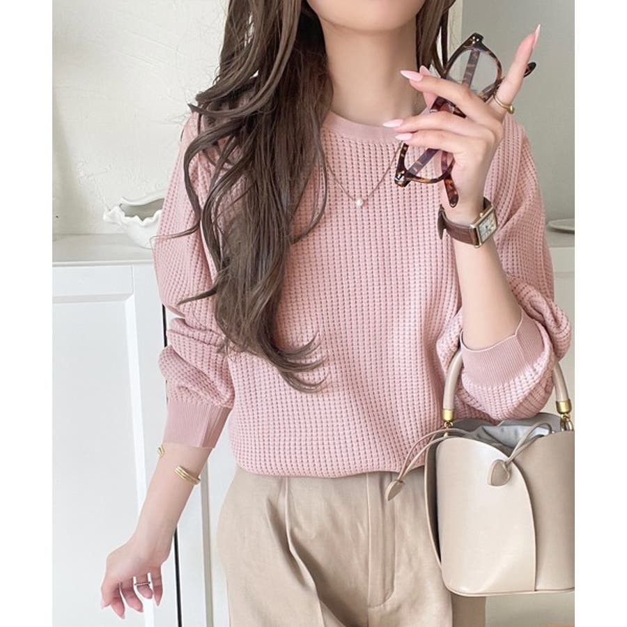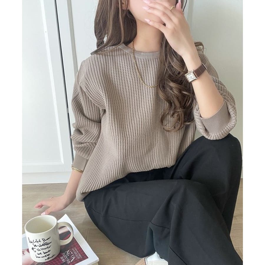 表情のあるワッフル編みが着こなしのアクセントに♪