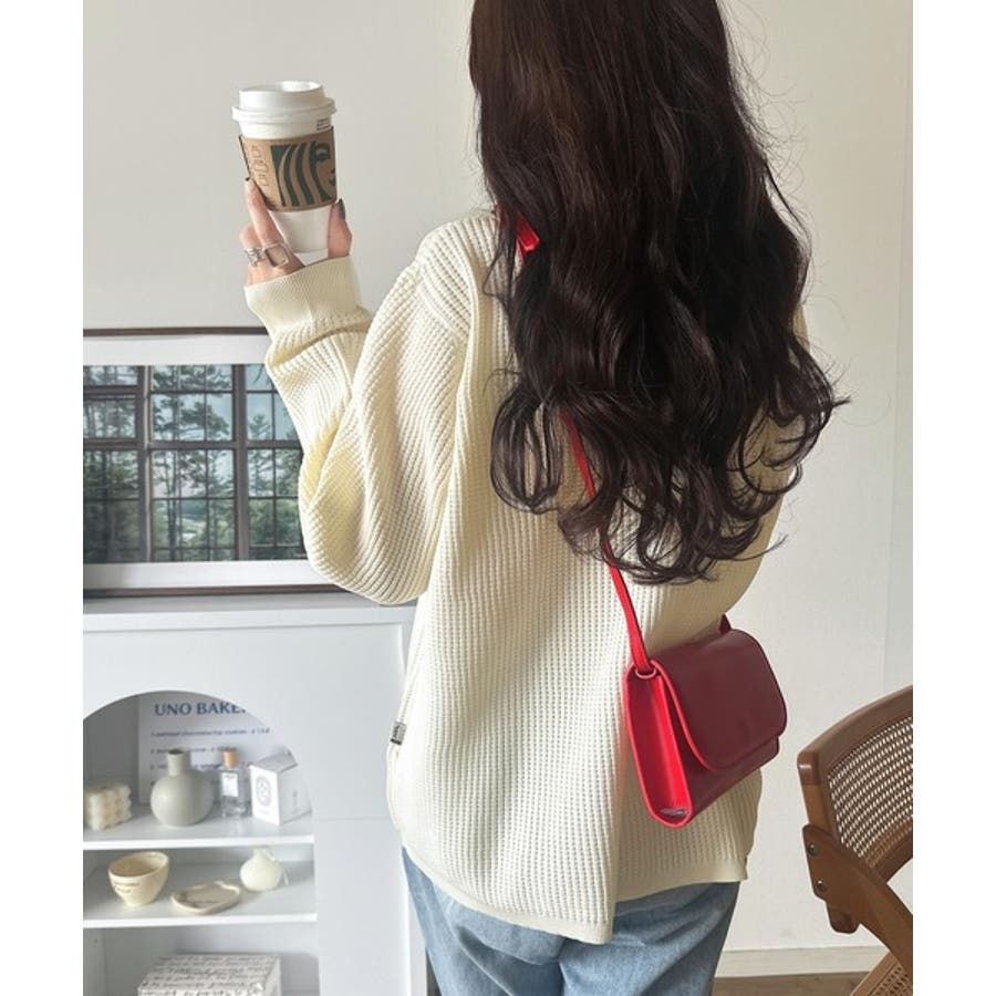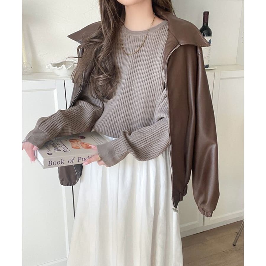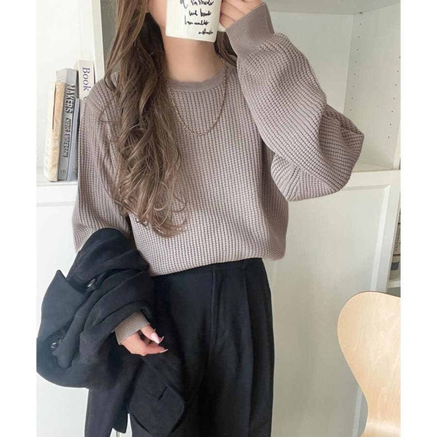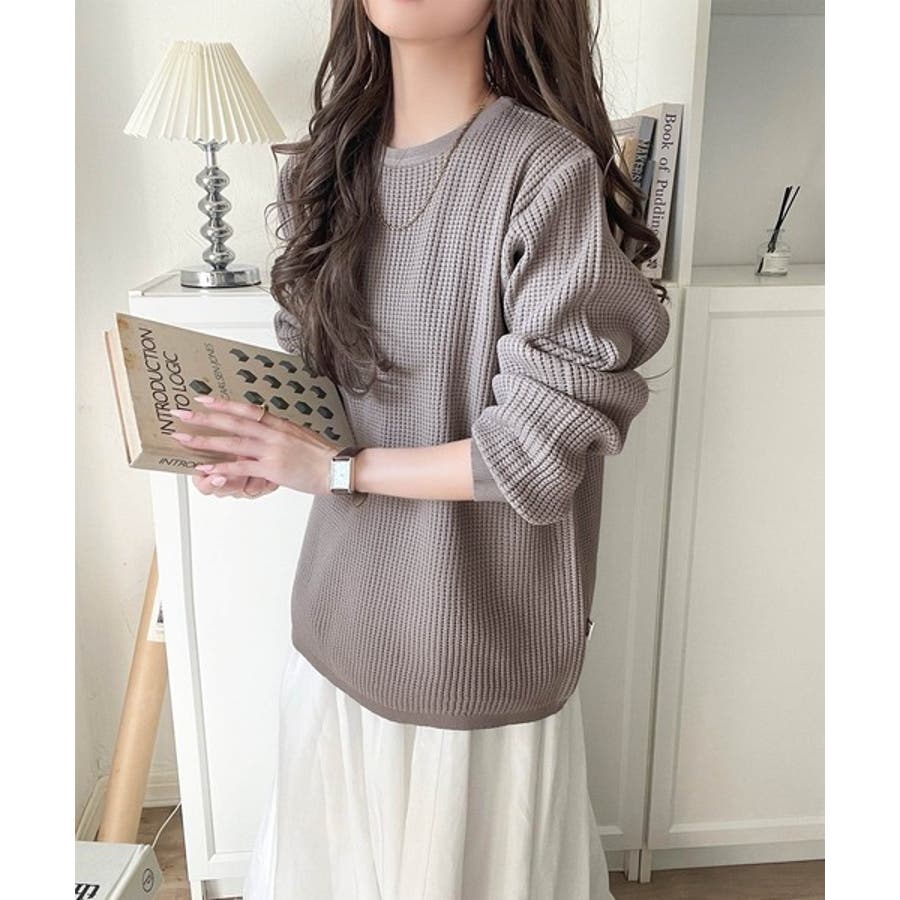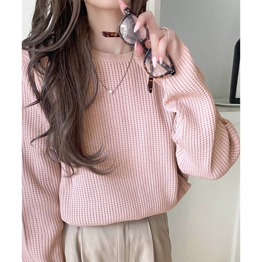 表情のあるワッフル編みが着こなしのアクセントに♪
