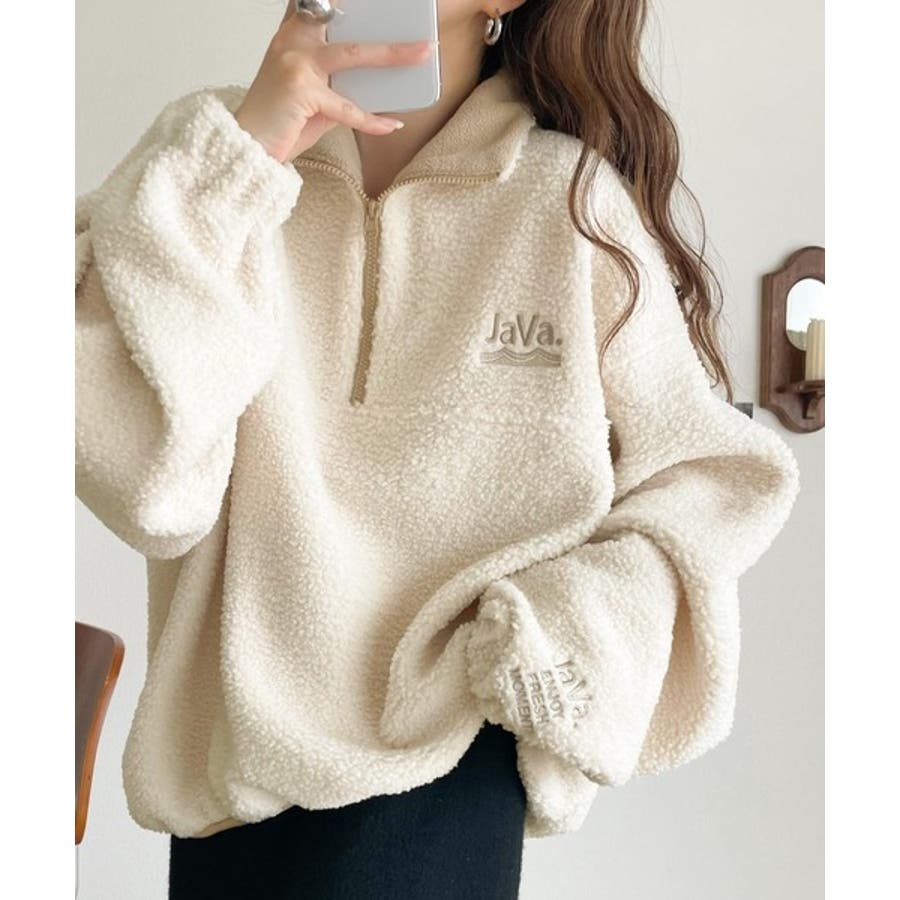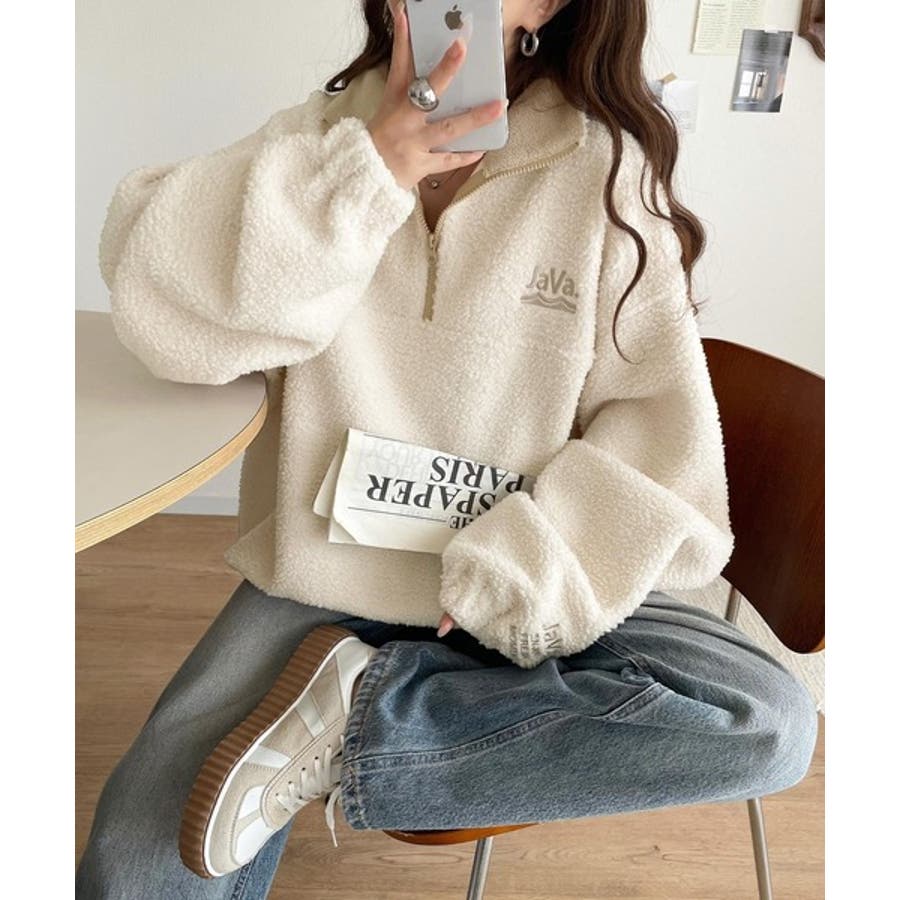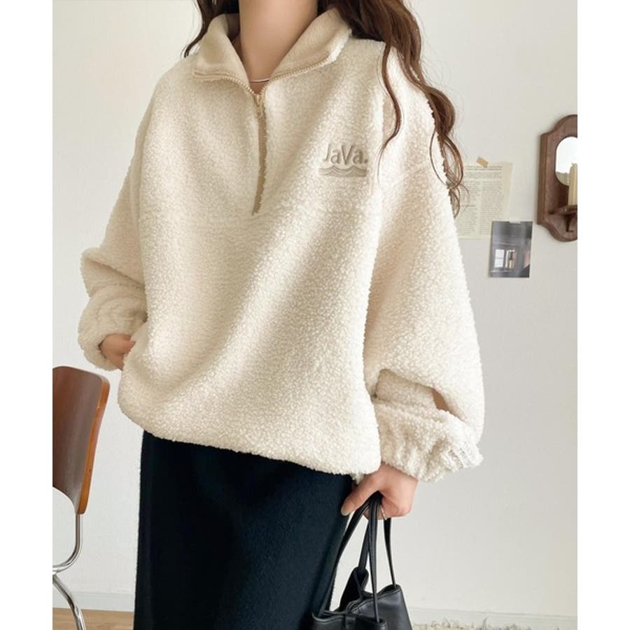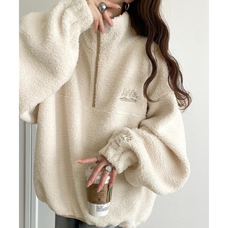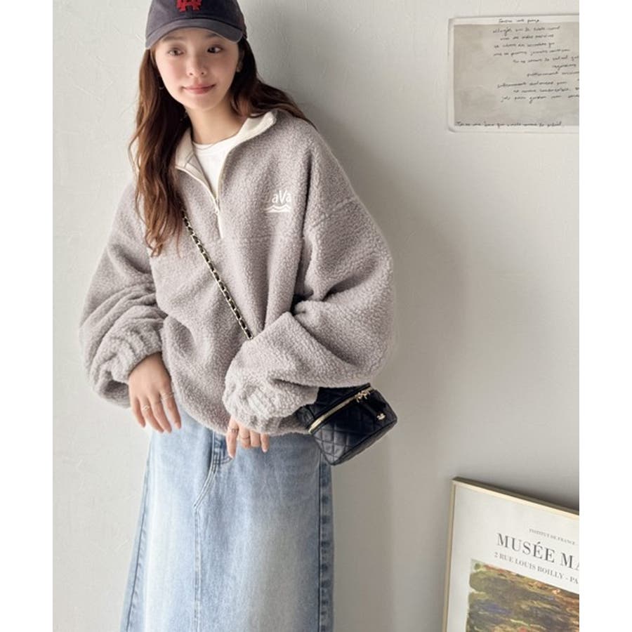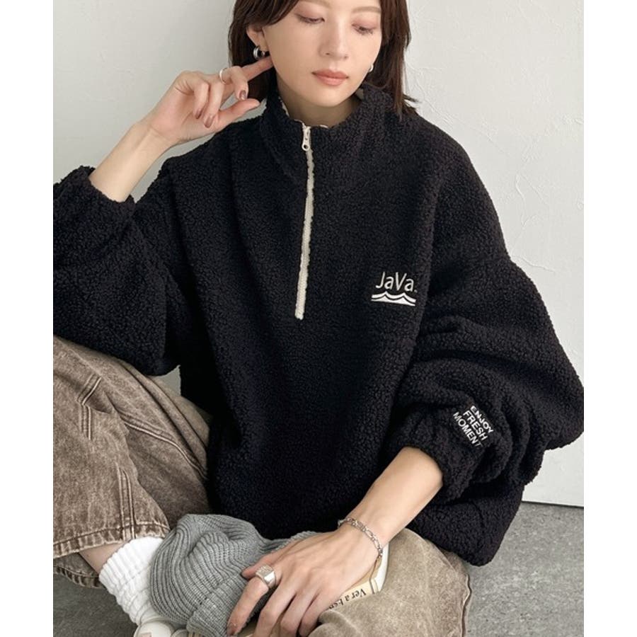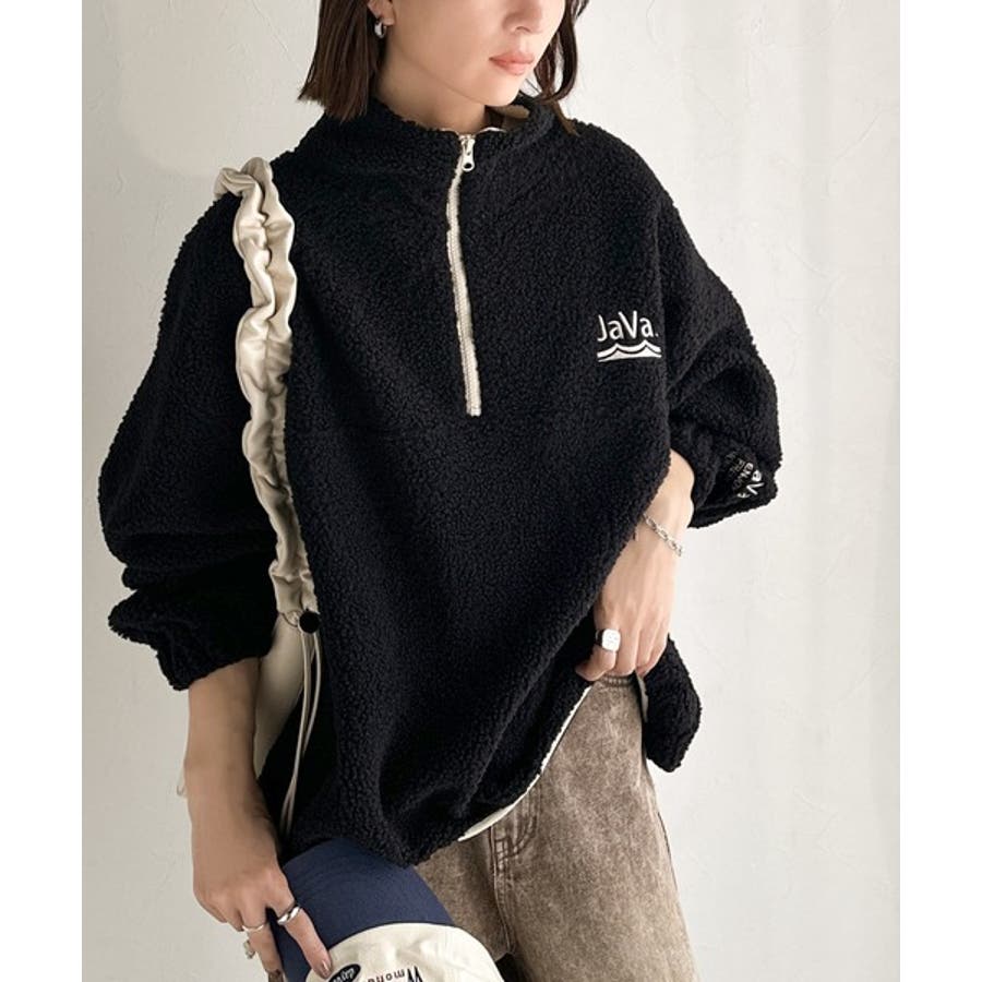 トレンドのハーフジッププルオーバーをボア素材で仕上げた一枚。