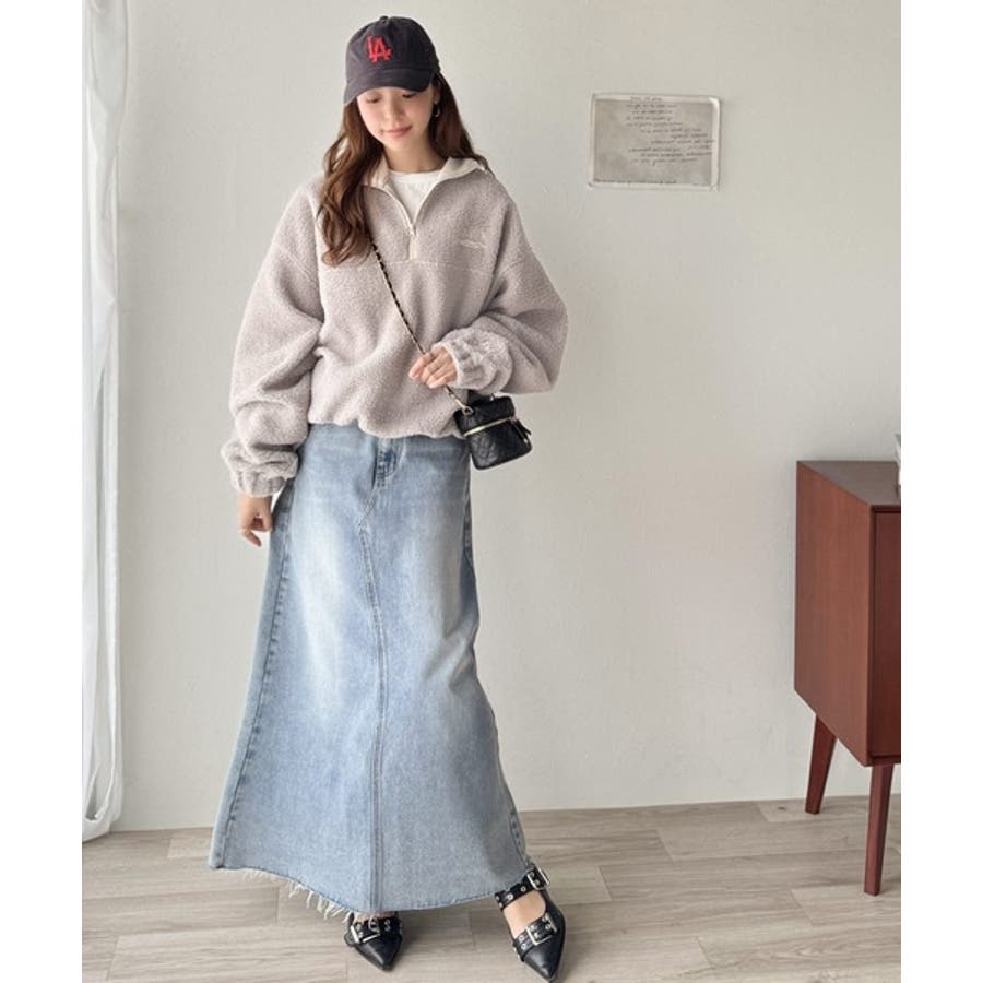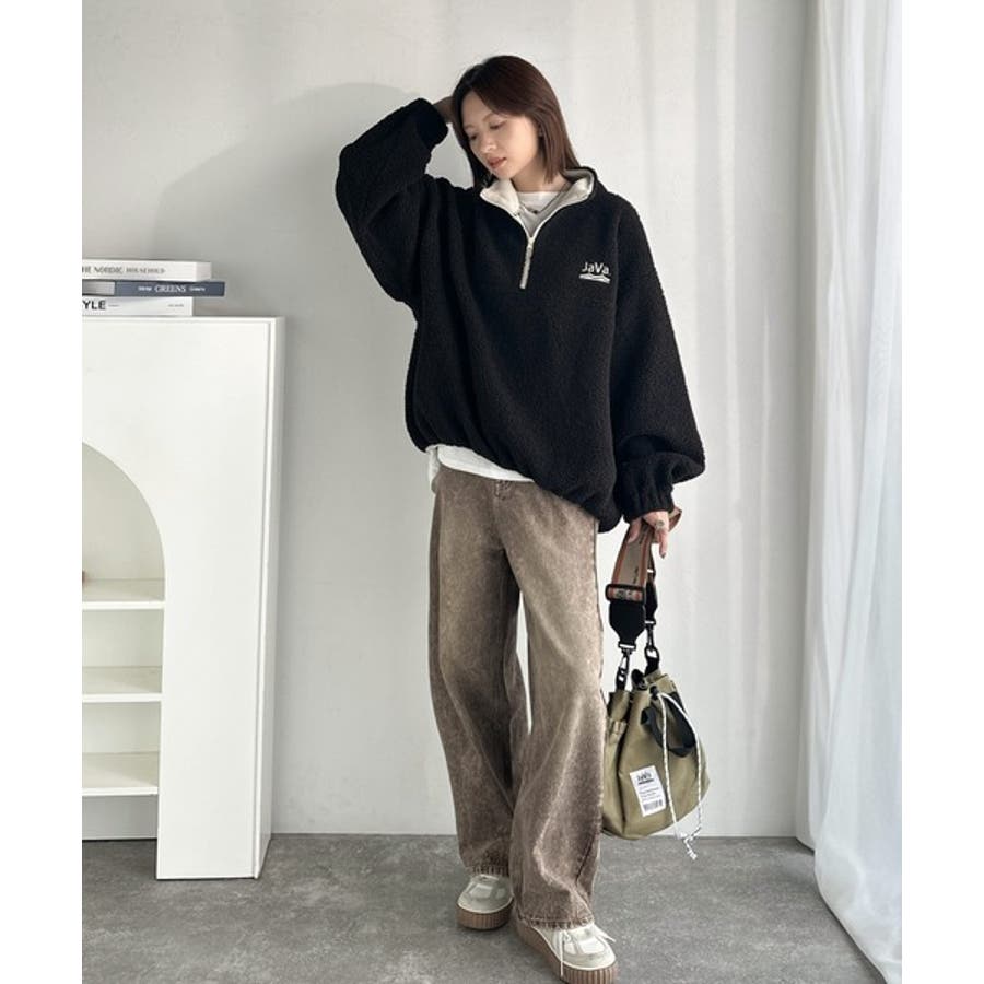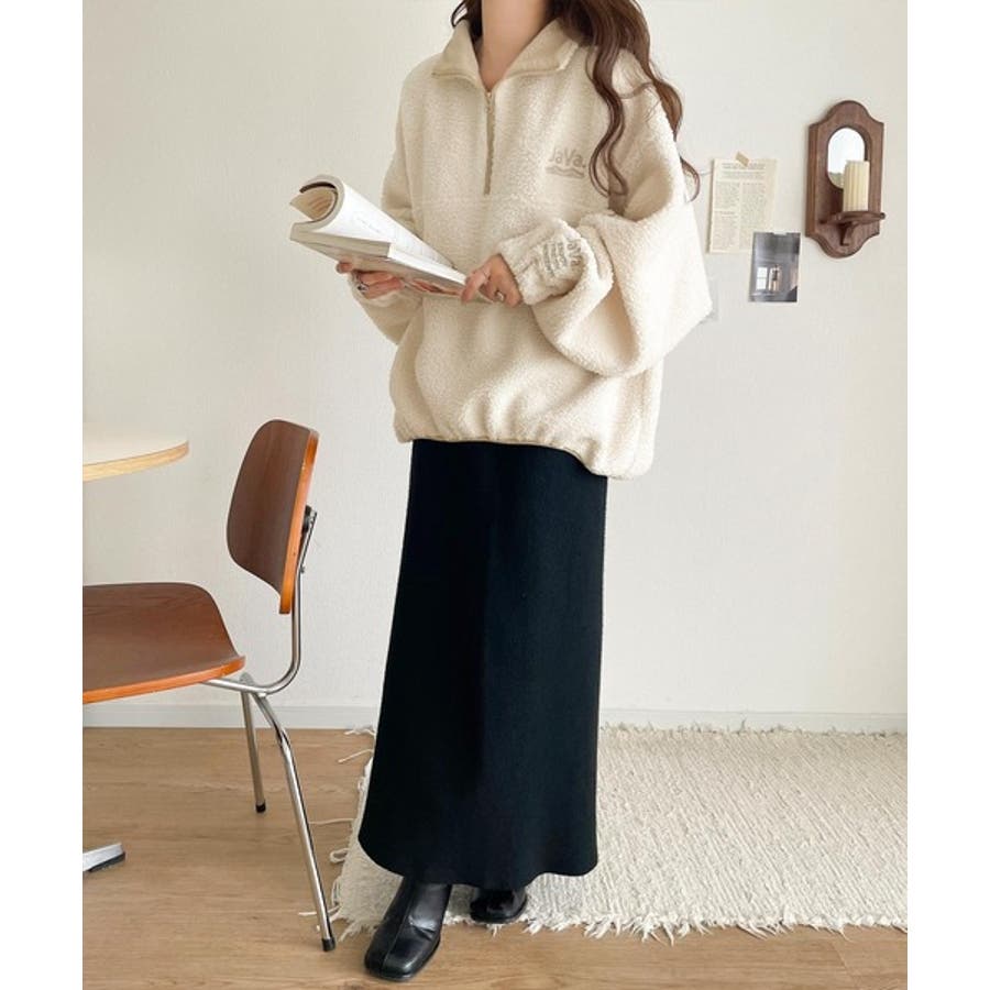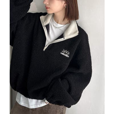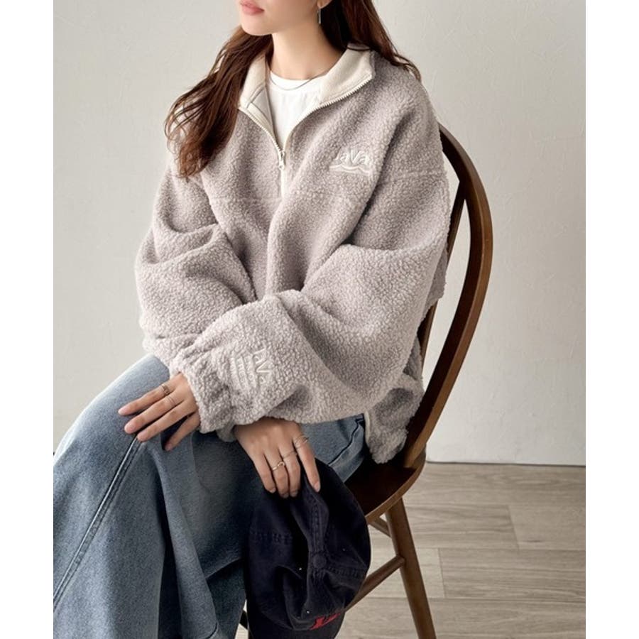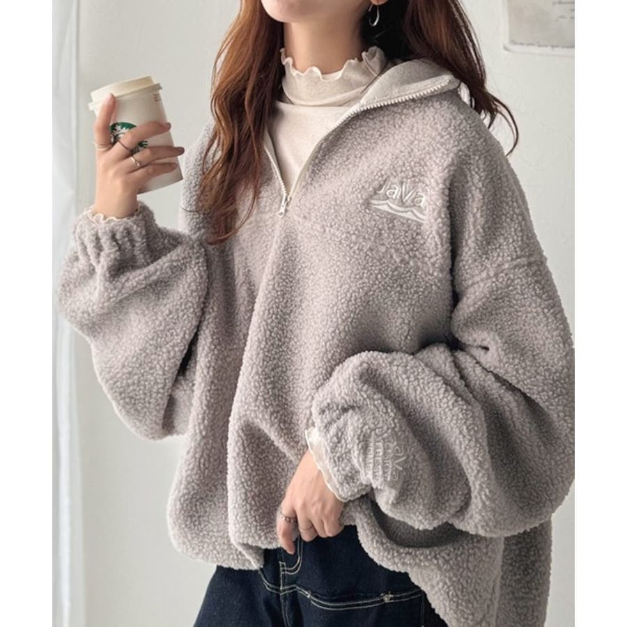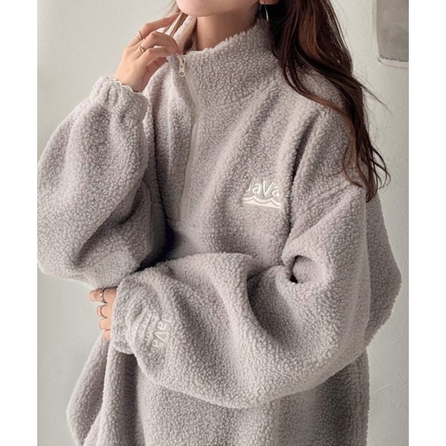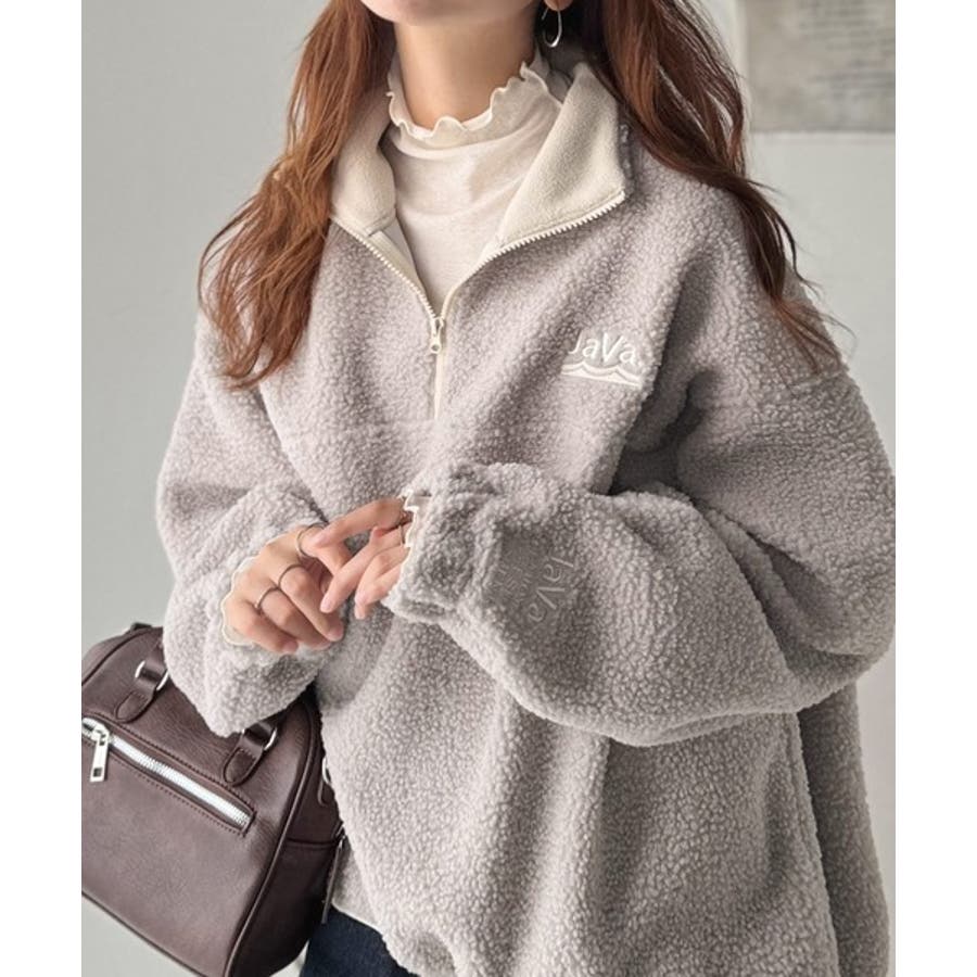 トレンドのハーフジッププルオーバーをボア素材で仕上げた一枚。