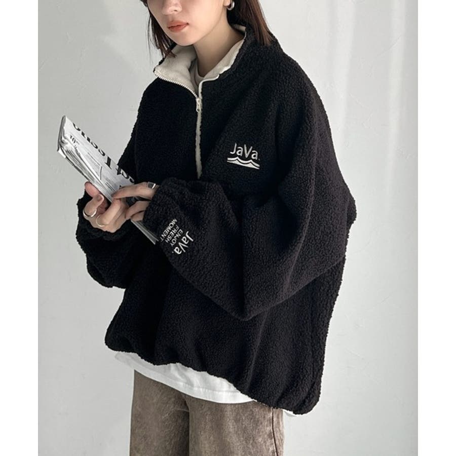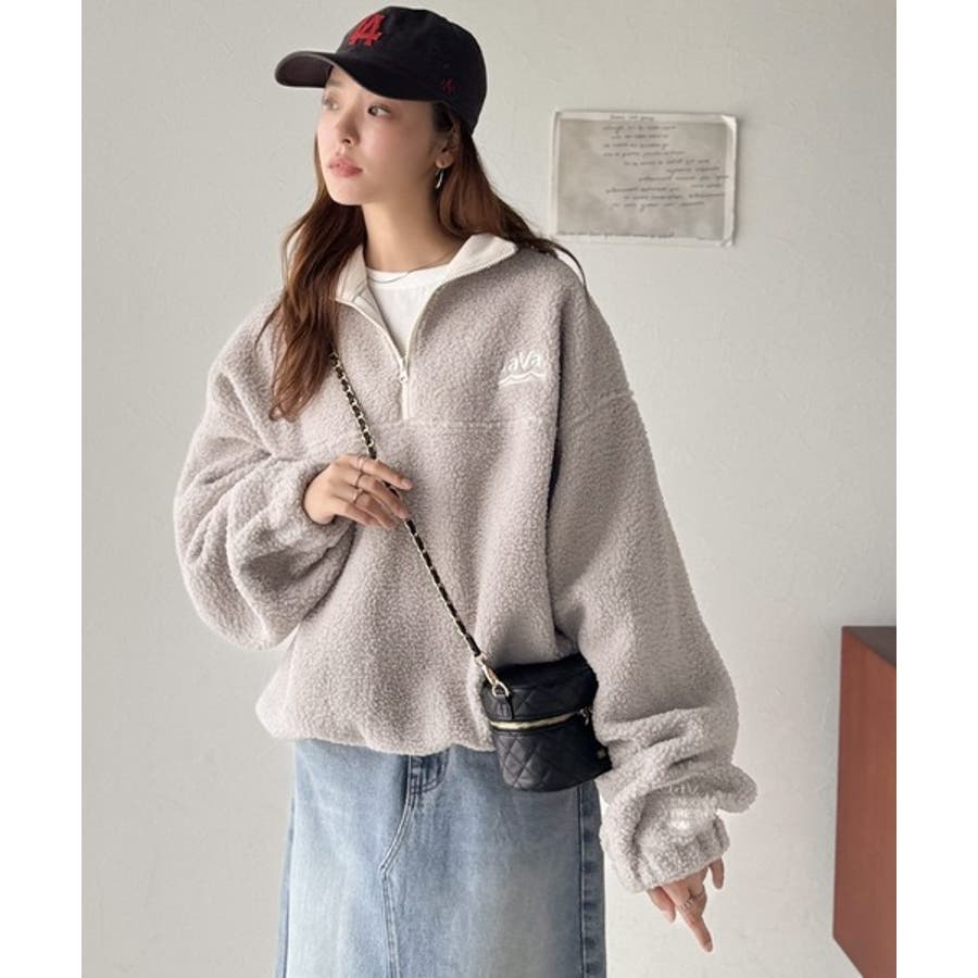 ボア素材×刺繍でおしゃれ上級者に格上げ♪アノラックハーフジッププルオーバー