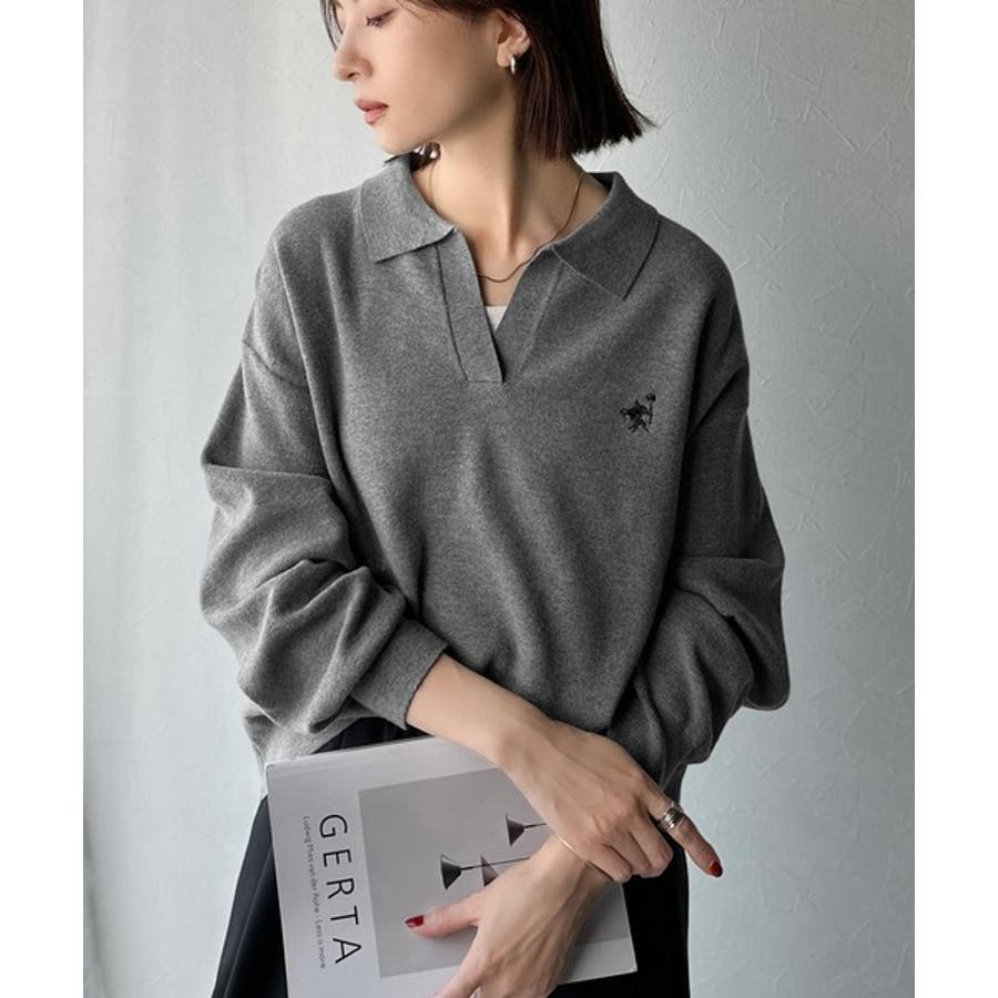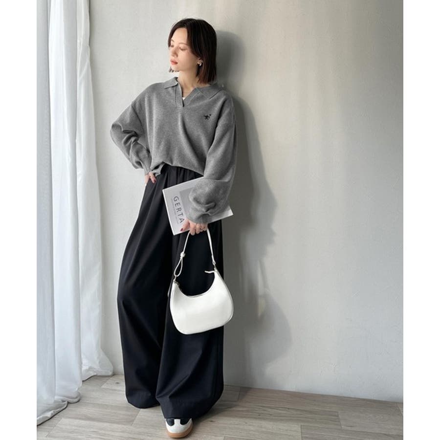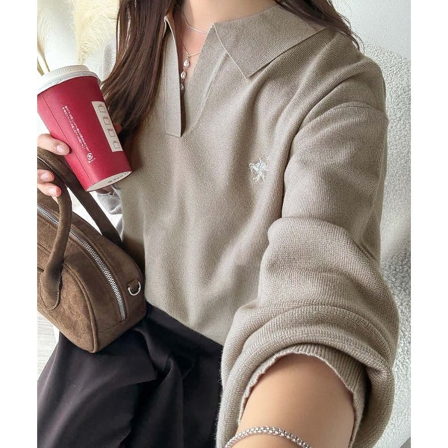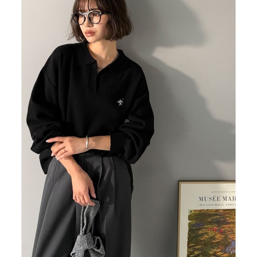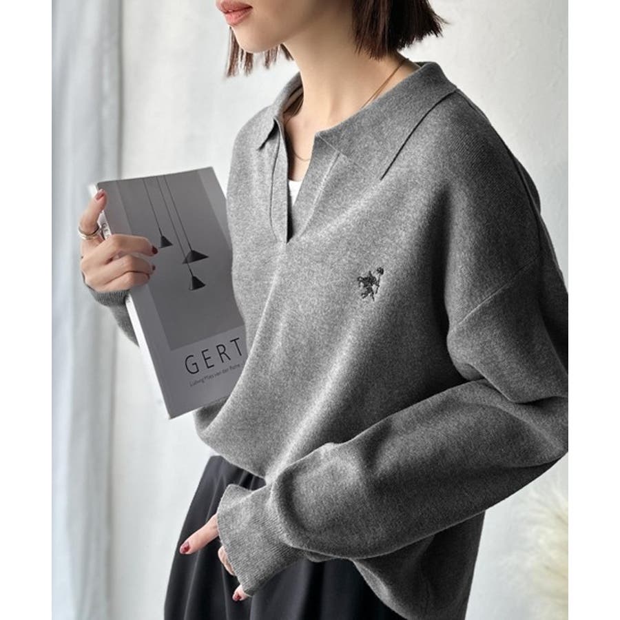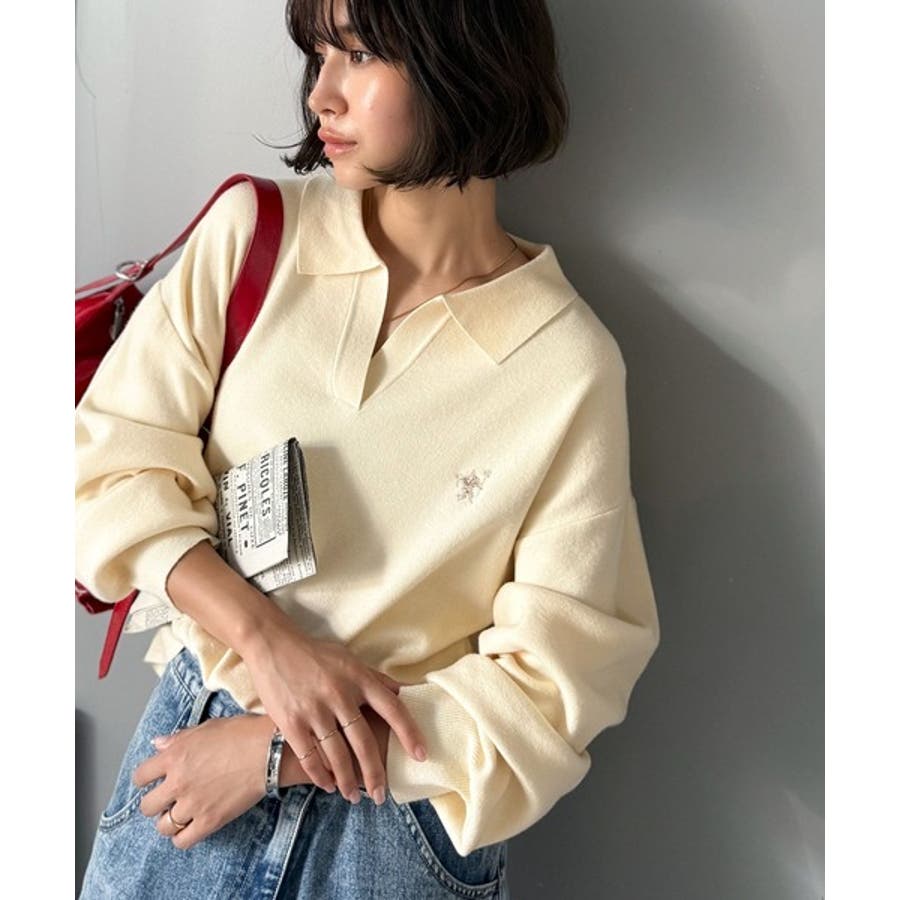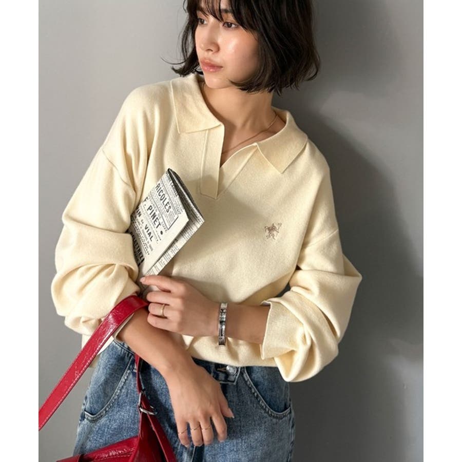 大人の抜け感をプラス◎胸刺繍ハーフミラノスキッパーニット