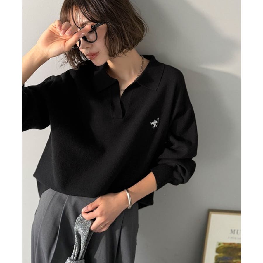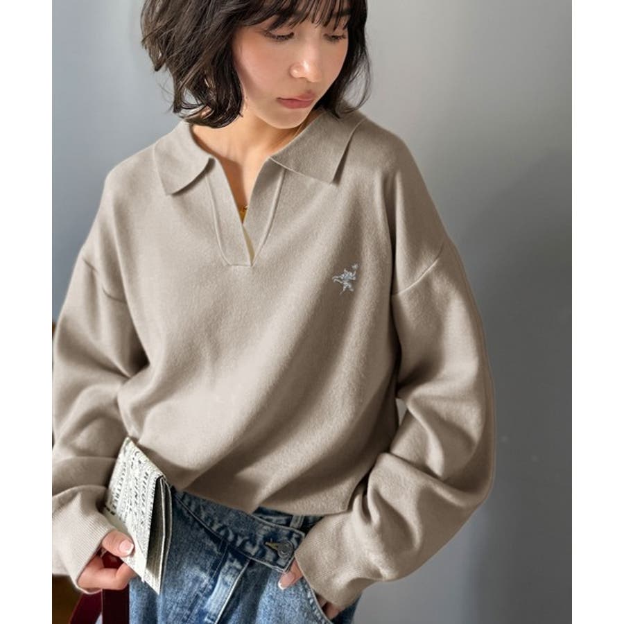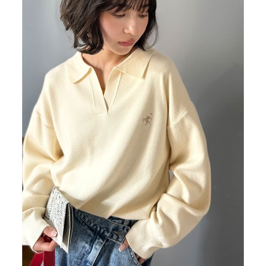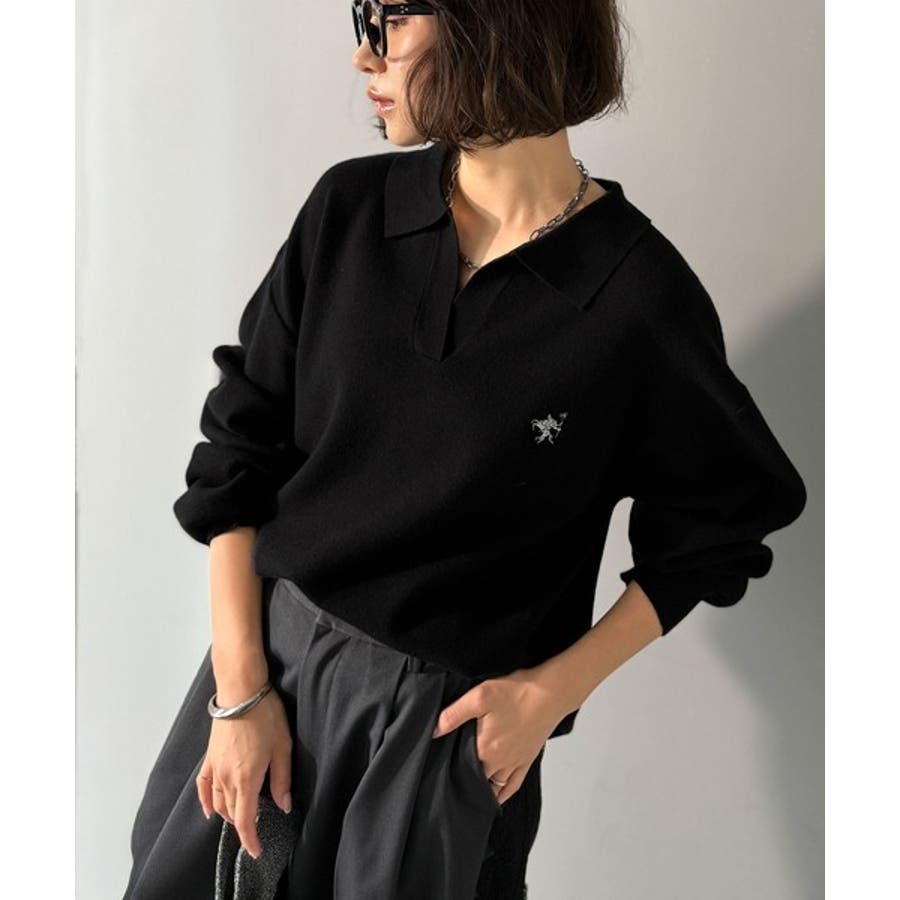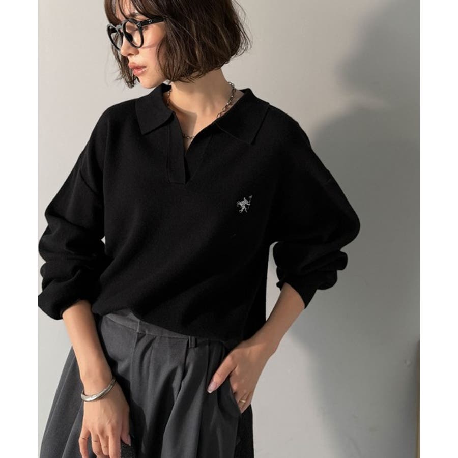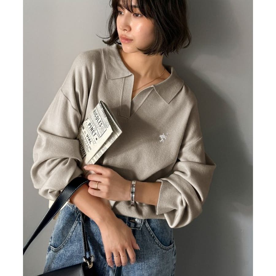大人の抜け感をプラス◎胸刺繍ハーフミラノスキッパーニット