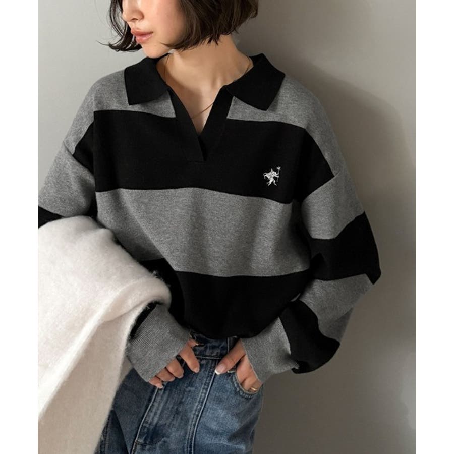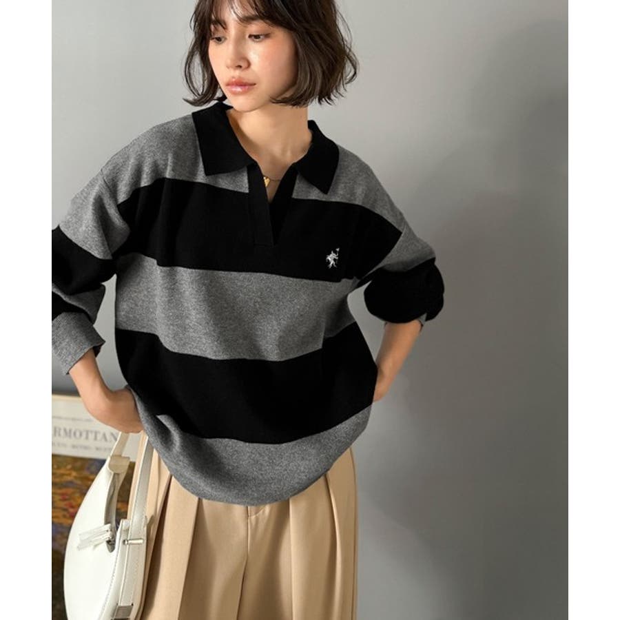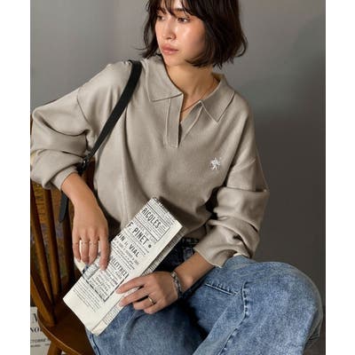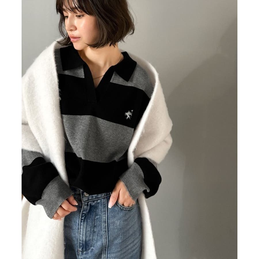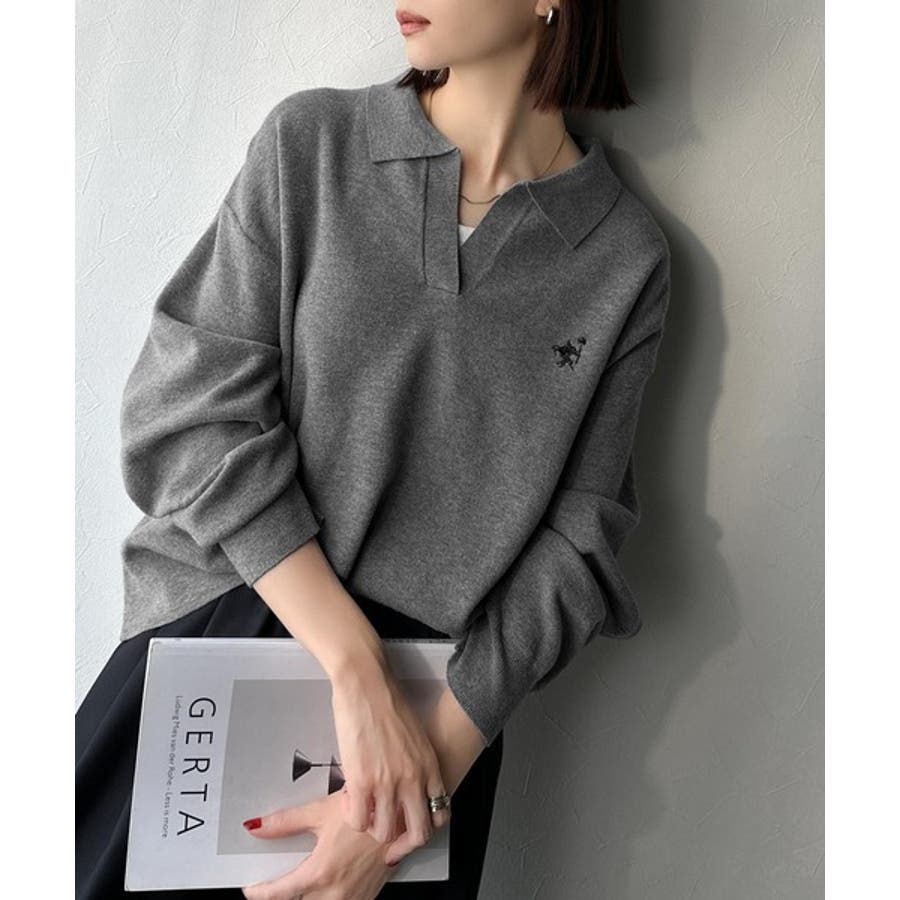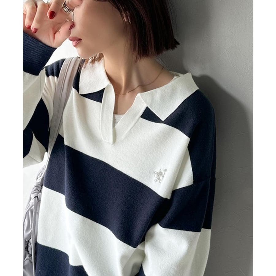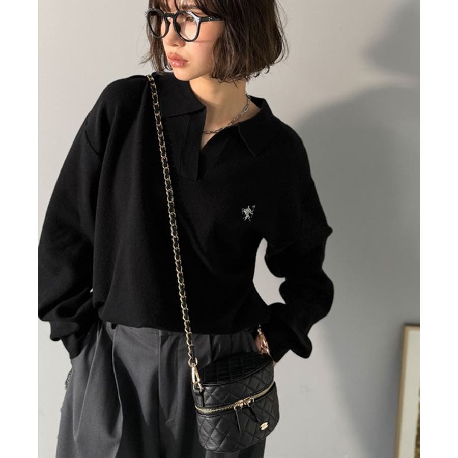 大人の抜け感をプラス◎胸刺繍ハーフミラノスキッパーニット