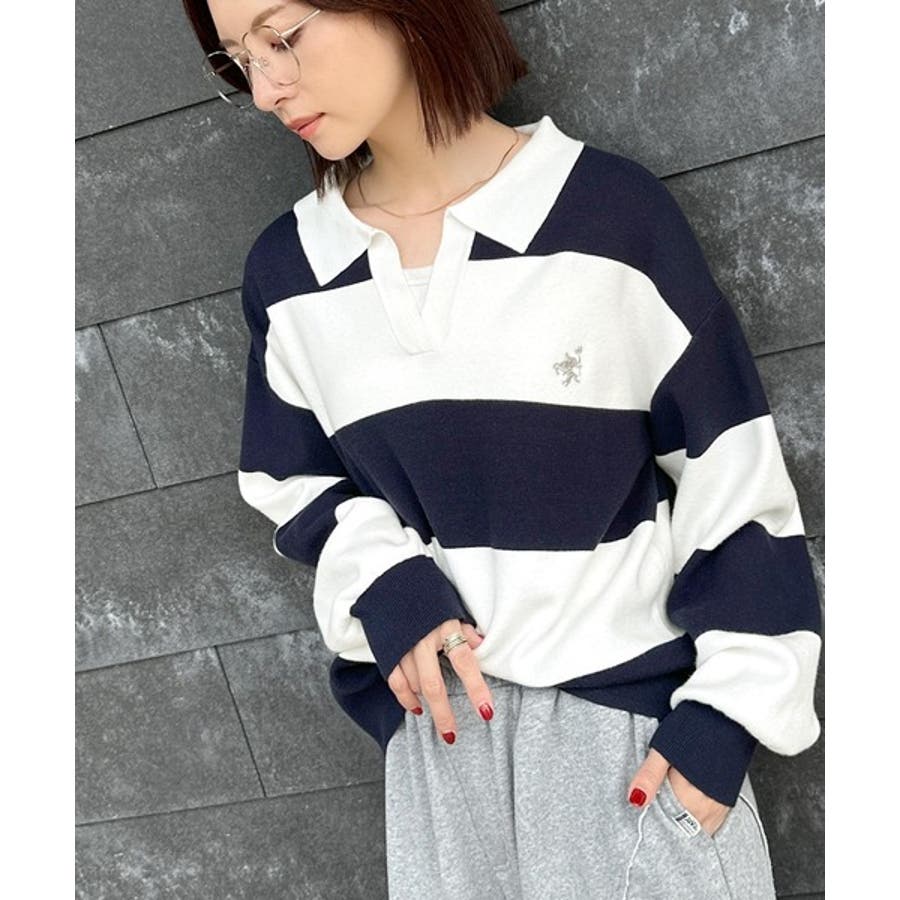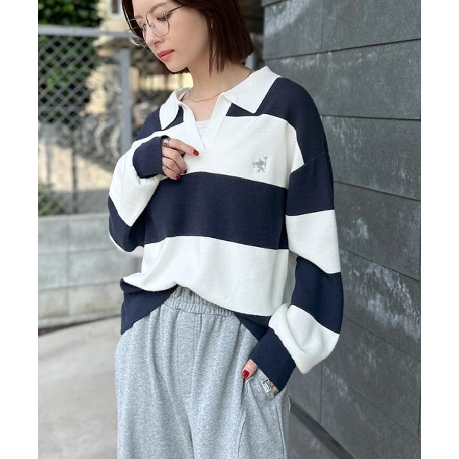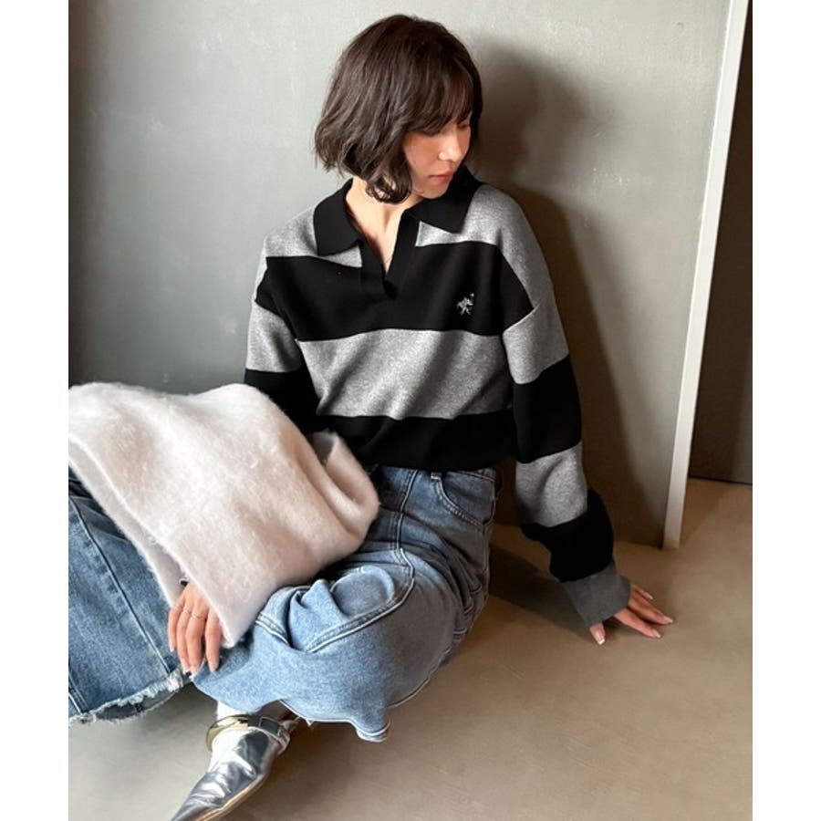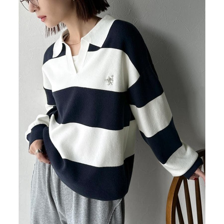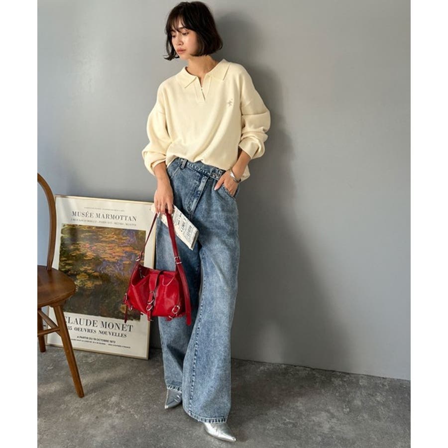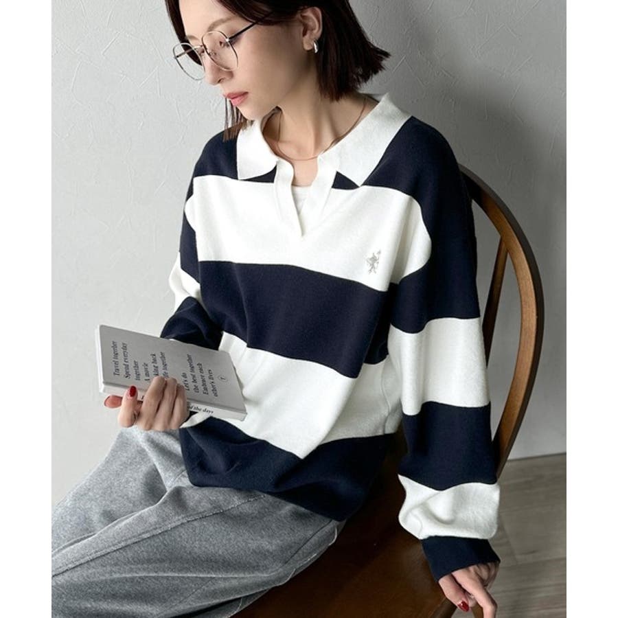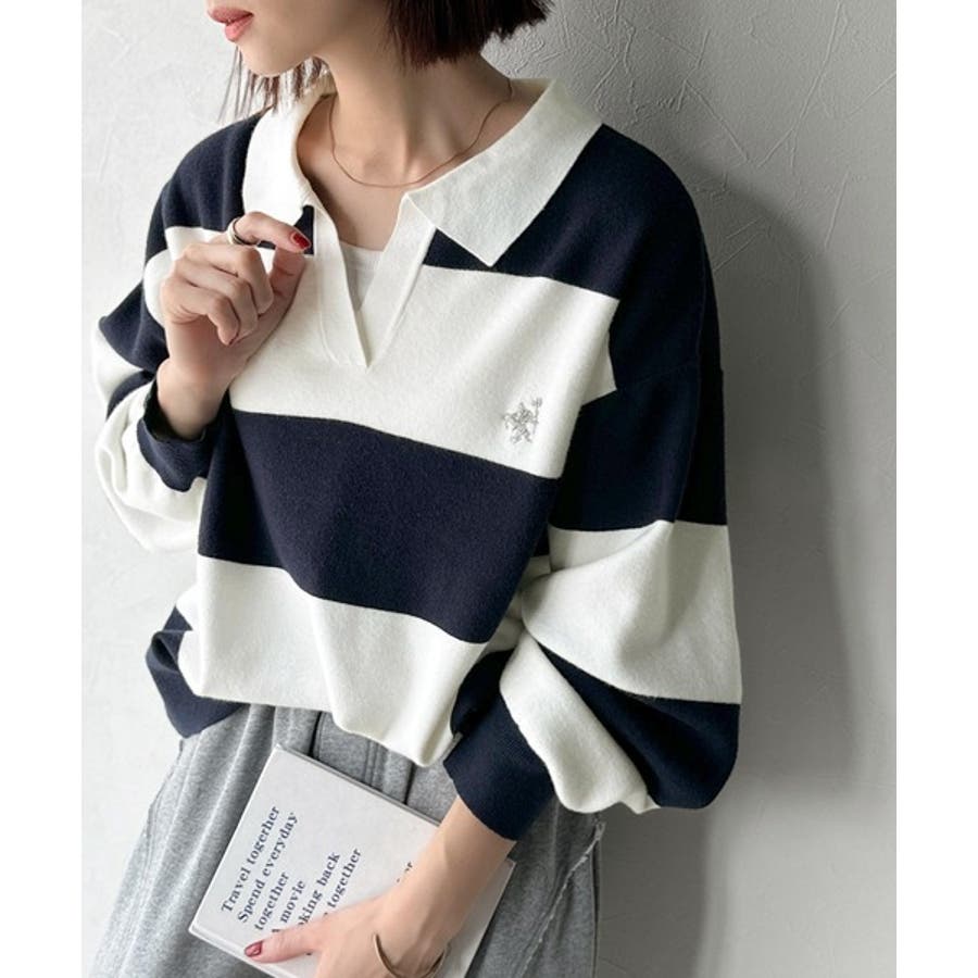 大人の抜け感をプラス◎胸刺繍ハーフミラノスキッパーニット