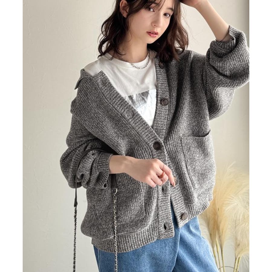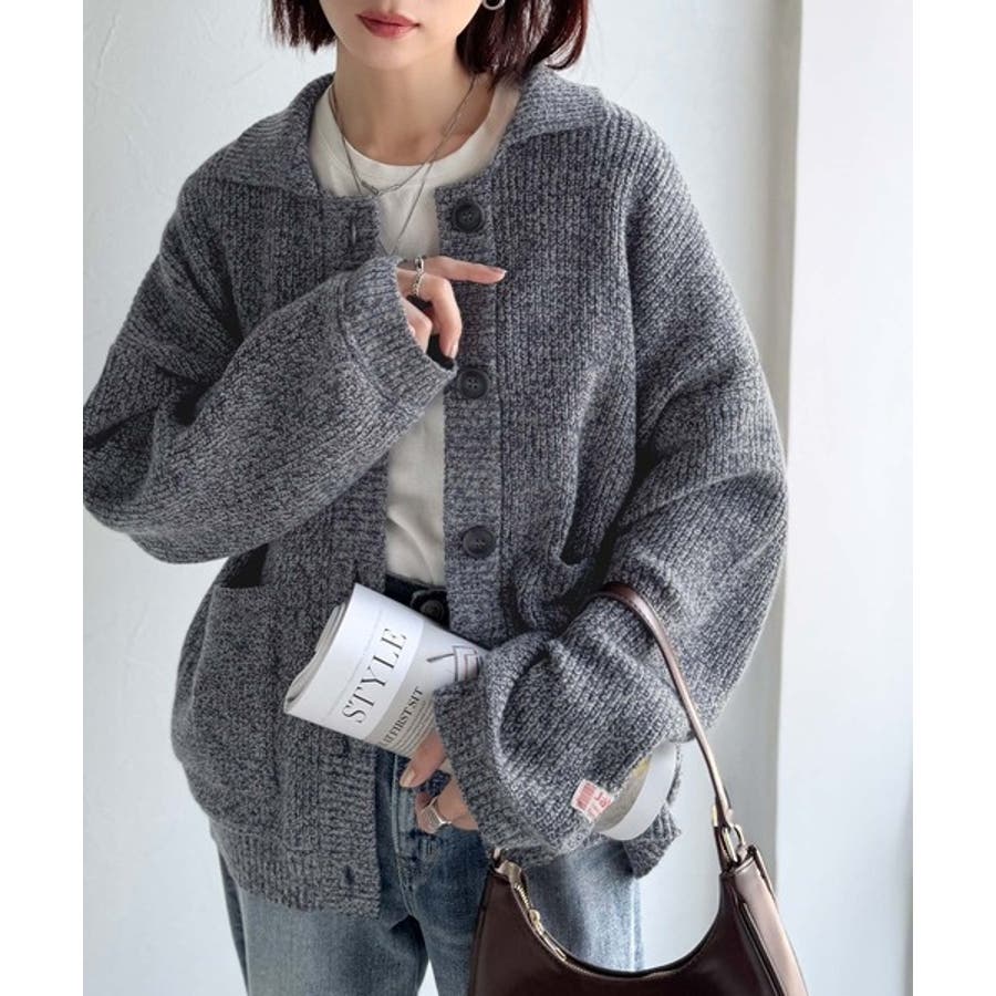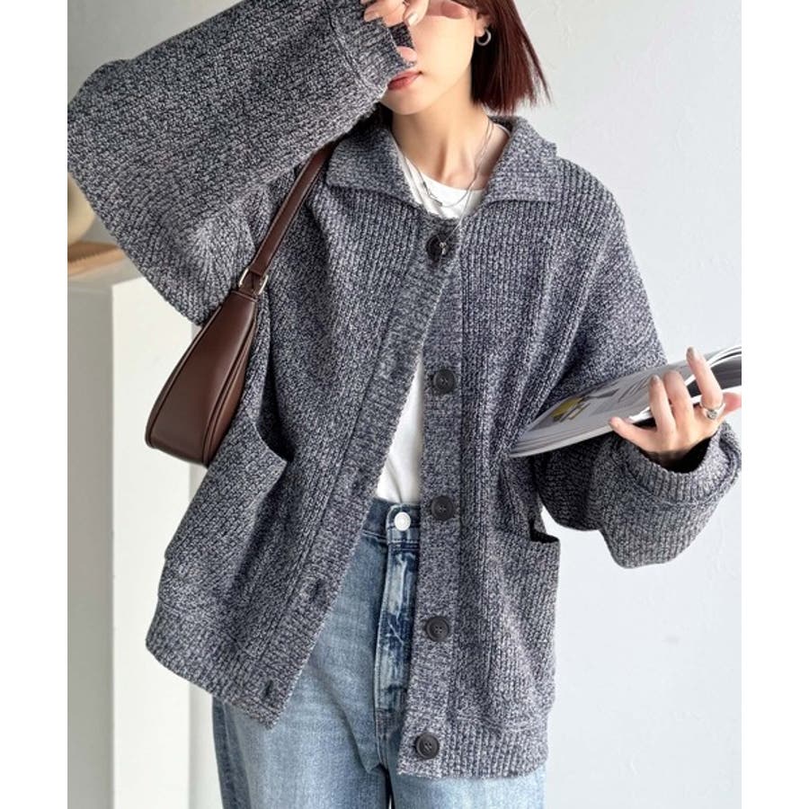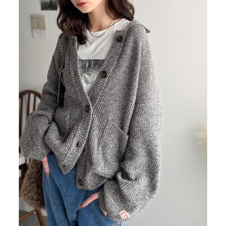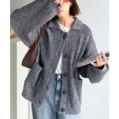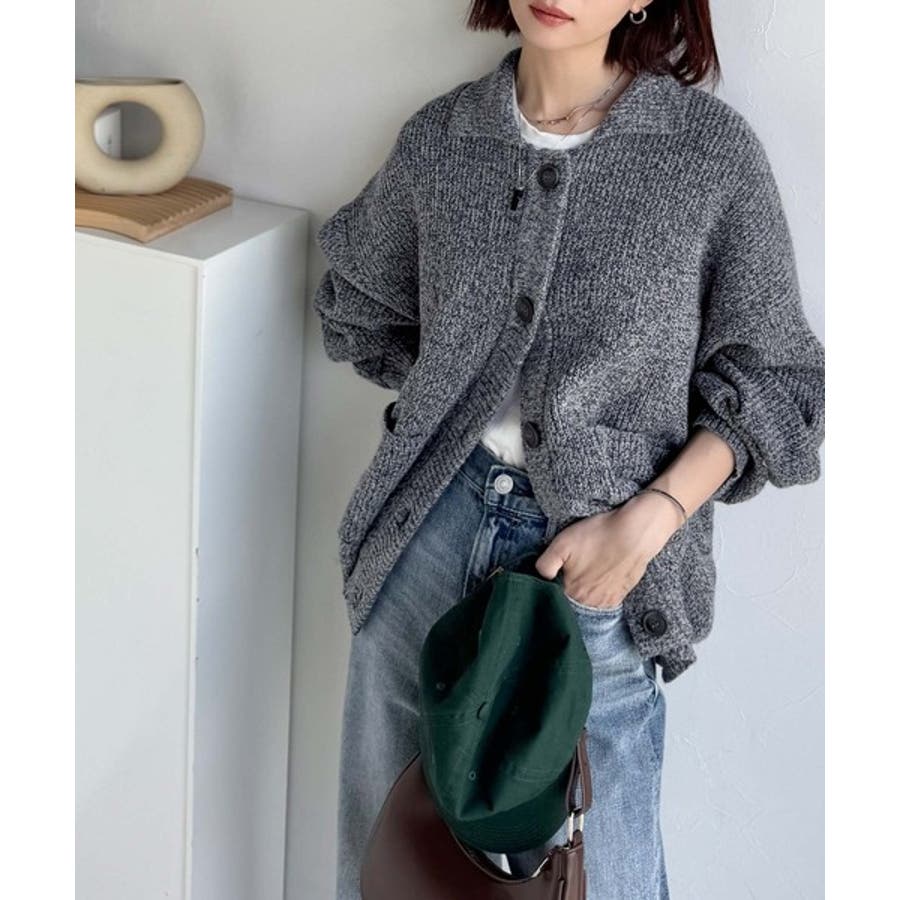 メンズライクなこなれ感を演出。メランジ襟付きカーディガン